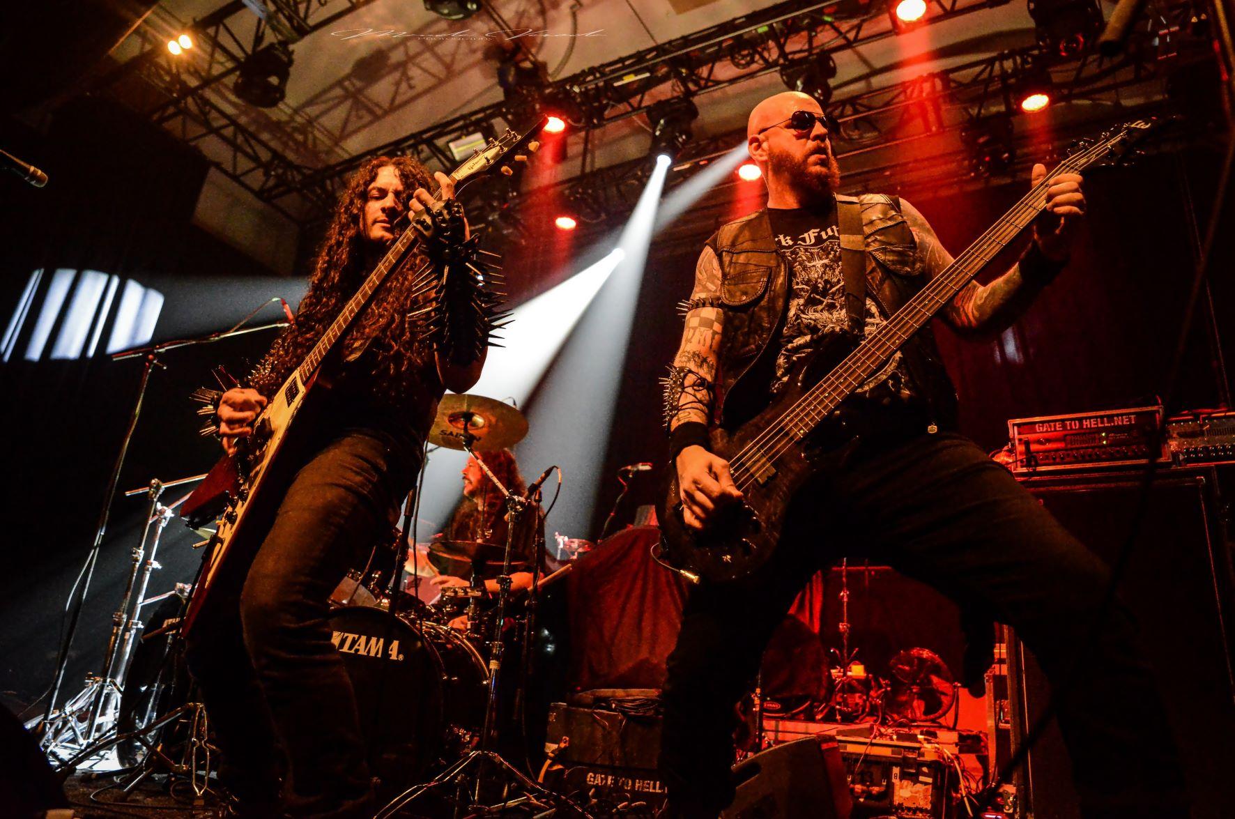 Les Américains de STORMRULER sont originaires de Saint-Louis dans le Missouri. Le groupe a vu le jour en 2019 et est officiellement formé de deux membres, Jesse Shobel à la batterie et Jason Asberry au chant et à la guitare, le reste du line-up d’étant composé que de membres live. Le combo évolue dans un black metal mélodique à consonnance DISSECTION, NAGLFAR. L’horaire de passage fera que STORMRULER jouera devant un petit comité qui accrochera de suite à en juger par les mouvements de têtes. Et effectivement, ce que le groupe propose est vraiment appréciable, alternant sur des riffs typiques du black metal avec des blasts violents à des passages plus mélodieux et des solos de guitares. Tous les éléments sont là, rien n’est atypique mais les structures des compos sont bien à eux, c’est ce qui fait la différence. STORMRULER ne possède que deux albums pour l’instant et c’est celui de 2022, Sacred Rites & Black Magick, qui sera mis en avant avec quatre titres sur les cinq et gros coup de cœur personnel sur le morceau qui finira le set, Internal Fulmination of the Grand Deceivers, un titre qui caractérise le plus le groupe, encore une belle découverte.