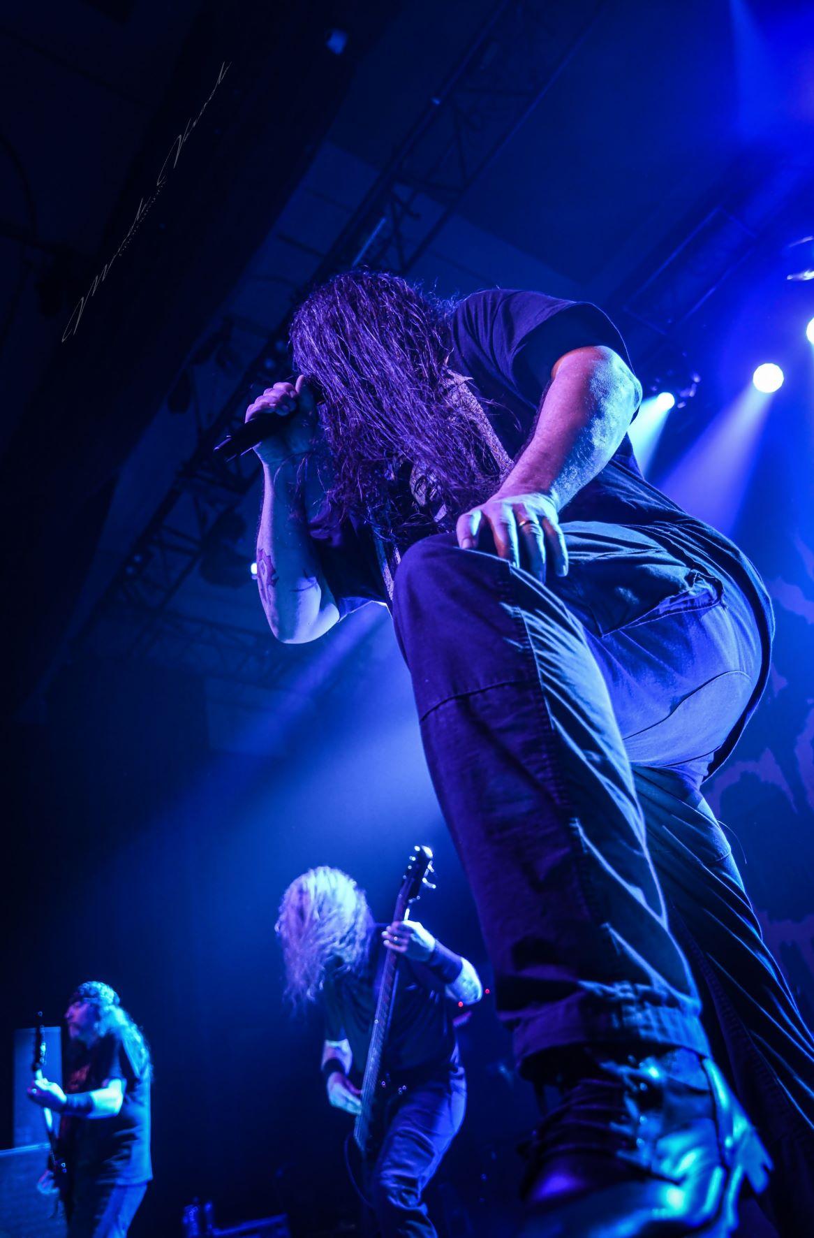 Huit ans, entendez-vous, huit ans que l’on attend de revoir les tauliers du death metal, CANNIBAL CORPSE revenir à Paris et je garde personnellement un très bon souvenir du concert de juillet 2015 au Petit Bain. L’immense logo est placé, le changement de plateau se termine, place à George Ficher et son orchestre. On commence tranquillement avec Scourge Of Iron, et quand je dis tranquillement c’est ironique car c’est déjà un gros déferlement de riffs puissants et un premier headbangs rotatif de George Fisher dont lui seul connaît le secret. Et même huit ans après, je suis toujours impressionné par sa technique alors que d’autres se serait luxé les cervicales depuis longtemps. Comme toujours, CANNIBAL CORPSE envoi son death metal incisif qui ne prend pas de ride avec les années et enchaine ses titres les plus féroces tel que Inhuman Harvest, Code of the Slashers, Kill of Become ou encore I Cum Blood, sans oublier Evisceration Plague qui engendrera une grande ferveur de la part de l’assistance qui sera également amusé par les blagues de George entre deux titres.