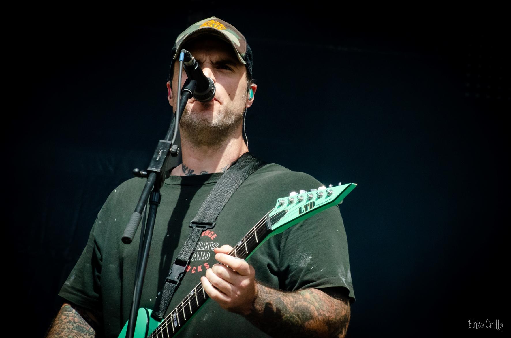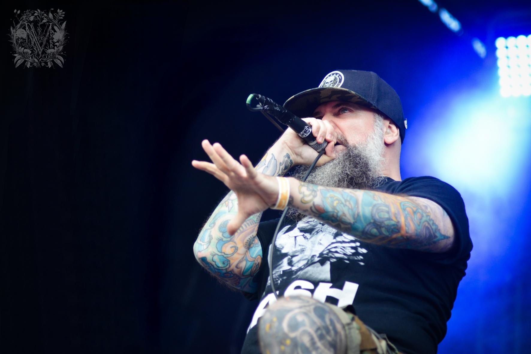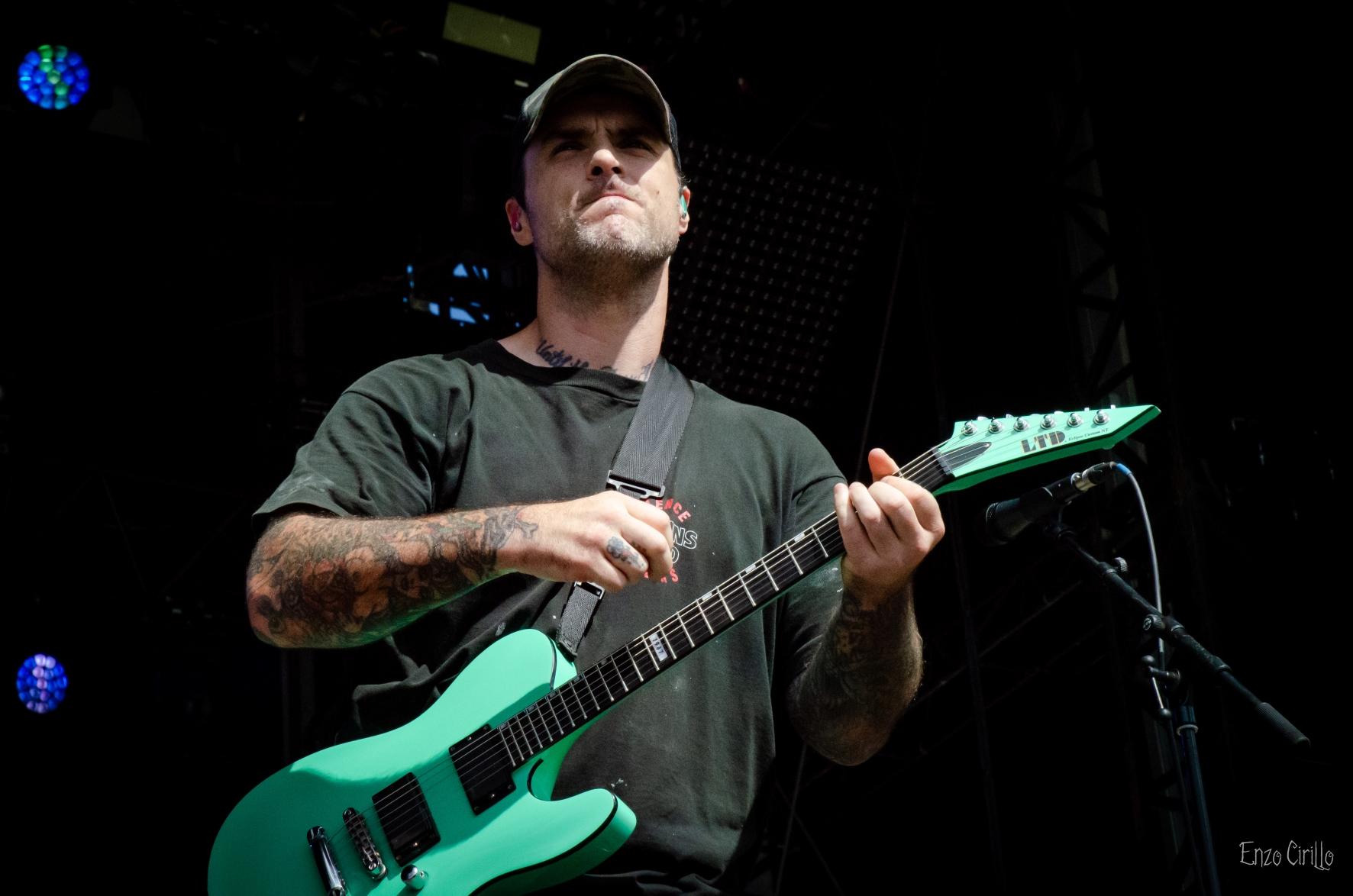 Place maintenant à du gros Punk Hardcore/Metalcore Américain avec STICK TO YOUR GUNS et je vous parlais de deux bagarrodromes au début du report mais le pit de ce groupe n’est pas mal dans son genre non plus. Dès le premier morceau, c’est un déchainement, d’autant plus que le combo nous laissera aucun répit et enchaînera ses titres, pas le temps de lambiner. Le chanteur Jesse Barnett harangue le pit tout envoyant ses vocalises enragées. C’est un véritable défouloir, que ce soit devant ou sur la scène car les Californiens mettent beaucoup d’énergie dans leur set, malgré ce soleil de plomb qui tape. Et entre les riffs violents on retrouve des refrains catchy et accrocheurs dont certains seront repris en chœur par l’assistance, on peut donc dire que les fans sont bien présents pour les soutenir. STICK TO YOUR GUNS n’a désormais plus rien à prouver et après avoir ouvert pour plusieurs gros noms du milieu Hardcore et Metalcore, le groupe peut rassembler et remplir des salles.