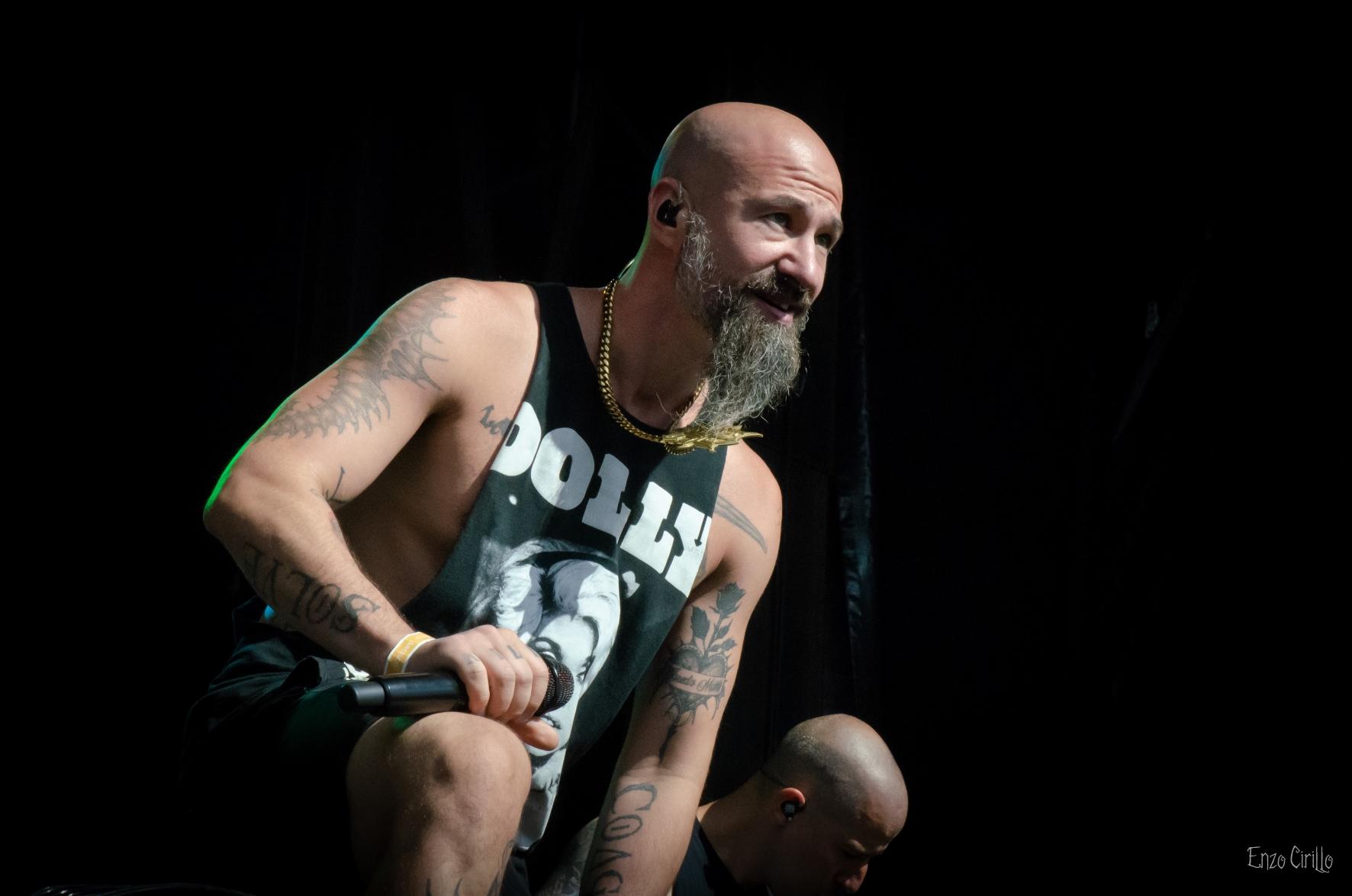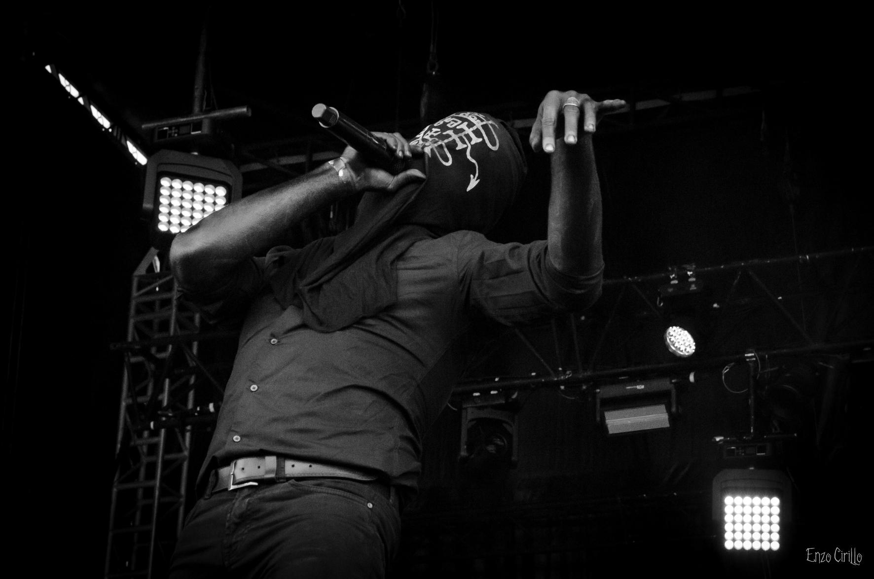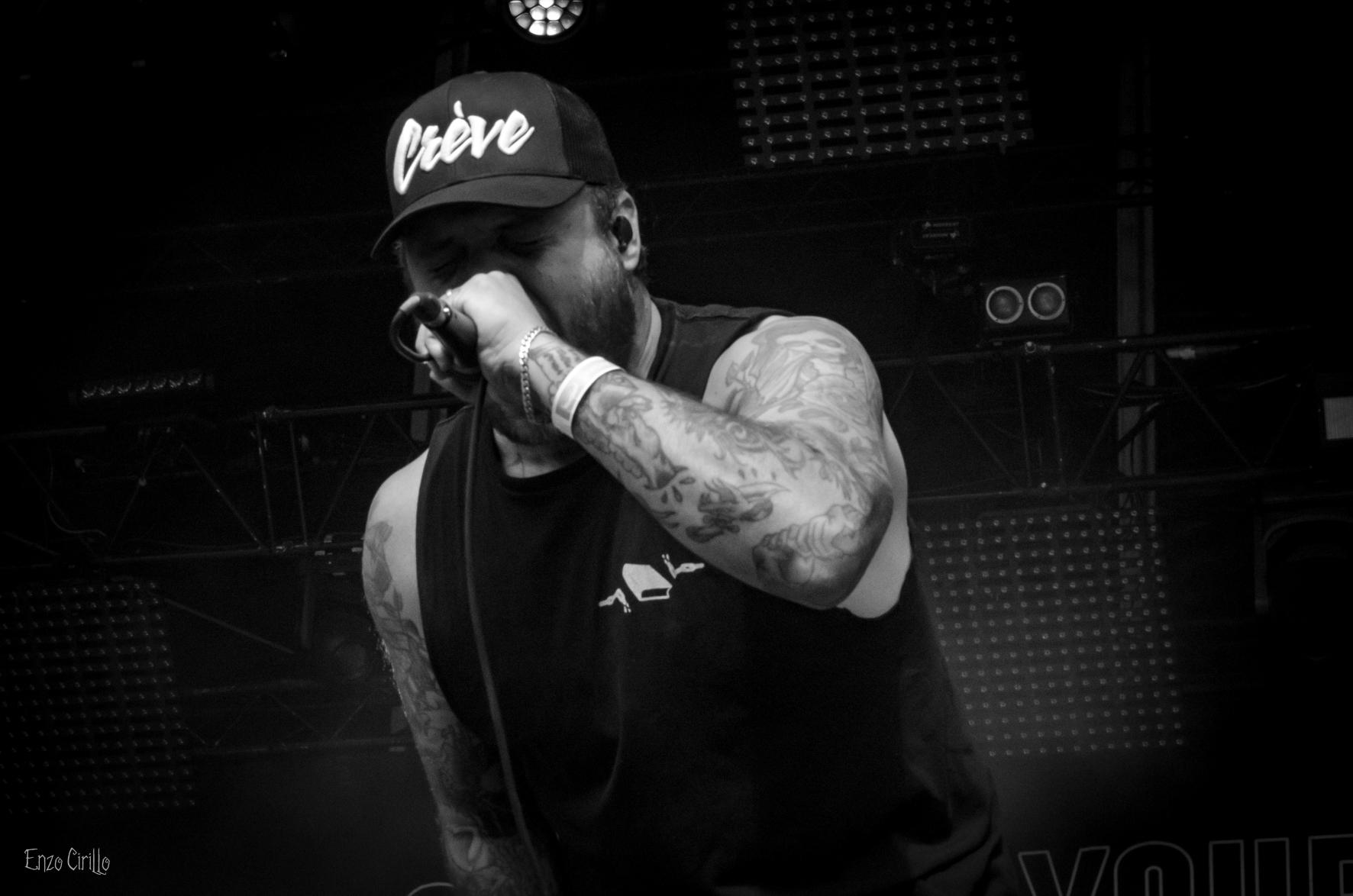 Place maintenant à du gros Punk Hardcore/Metalcore Américain avec STICK TO YOUR GUNS et je vous parlais de deux bagarrodromes au début du report mais le pit de ce groupe n’est pas mal dans son genre non plus. Dès le premier morceau, c’est un déchainement, d’autant plus que le combo nous laissera aucun répit et enchaînera ses titres, pas le temps de lambiner. Le chanteur Jesse Barnett harangue le pit tout envoyant ses vocalises enragées. C’est un véritable défouloir, que ce soit devant ou sur la scène car les Californiens mettent beaucoup d’énergie dans leur set, malgré ce soleil de plomb qui tape. Et entre les riffs violents on retrouve des refrains catchy et accrocheurs dont certains seront repris en chœur par l’assistance, on peut donc dire que les fans sont bien présents pour les soutenir. STICK TO YOUR GUNS n’a désormais plus rien à prouver et après avoir ouvert pour plusieurs gros noms du milieu Hardcore et Metalcore, le groupe peut rassembler et remplir des salles.
