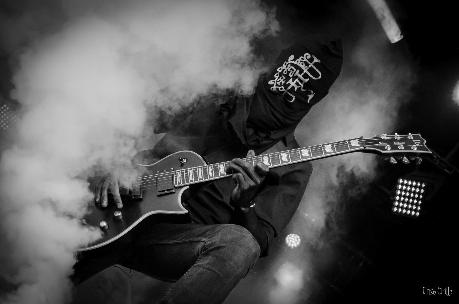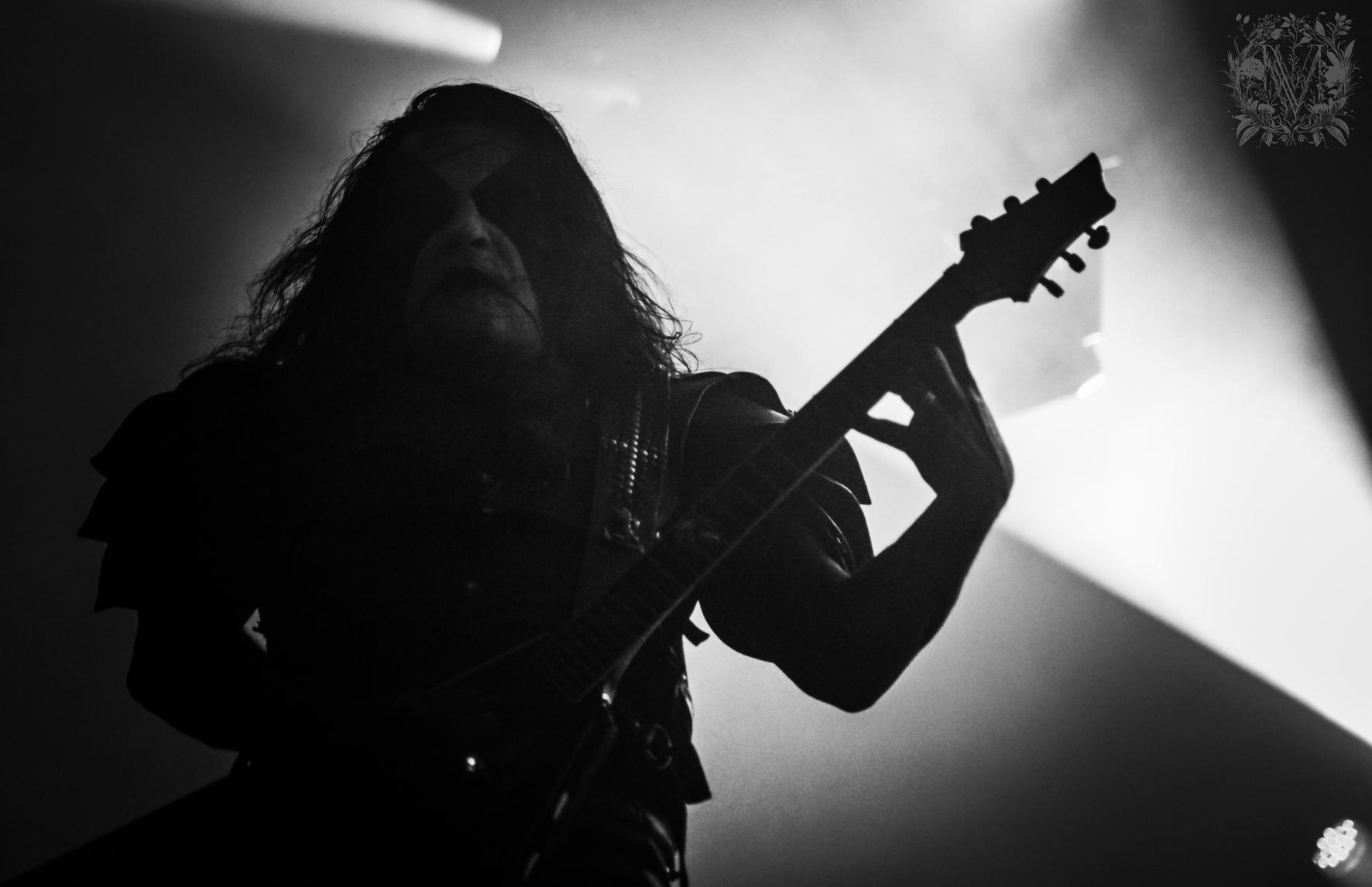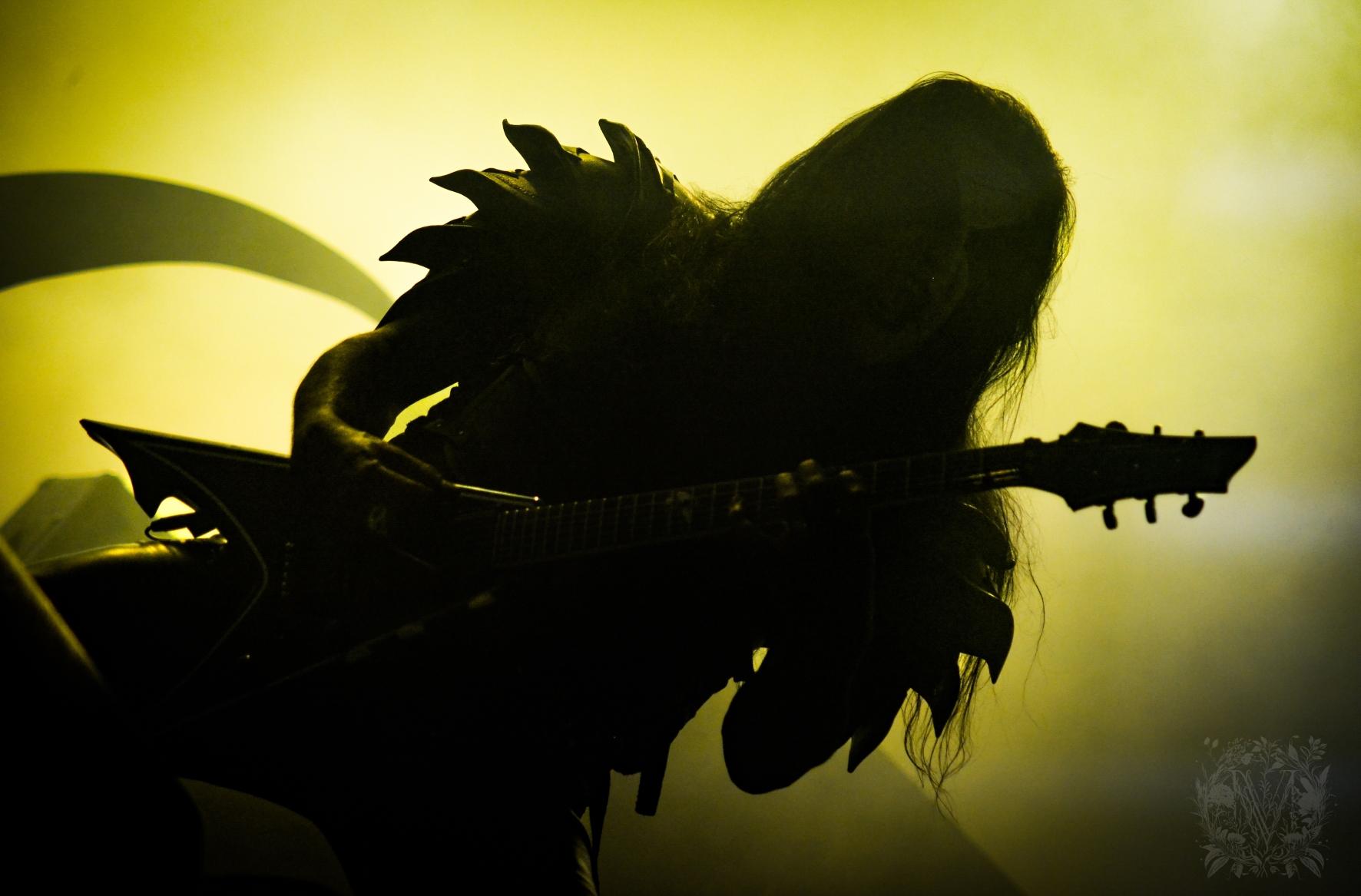 ABBATH ! On a dit doucement avec la fumée ! Fumer tue et là en l’occurrence ça flingue le boulot des photographes car le concert n’a même pas encore commencé et c’est déjà le brouillard sur la scène. Et c’est bien dommage car le décorum du musicien et son groupe offrait un bon cadre, d’autant que l’arrivée des mecs se fait sur To War!, un morceau bien rythmé. Ce qu’on aime avec Abbath, c’est qu’il est plus drôle qu’effrayant surtout quand on voit ses postures parfois grotesques mais qu’est-ce c’est hilarant ! Mais décidément, cet excès de CO2 ira jusqu’à le faire presque disparaitre pendant quelques secondes et à plusieurs reprises. Cela étant dit, le côté "j’apparais dans la fumée comme une créature de la nuit" fait son petit effet.