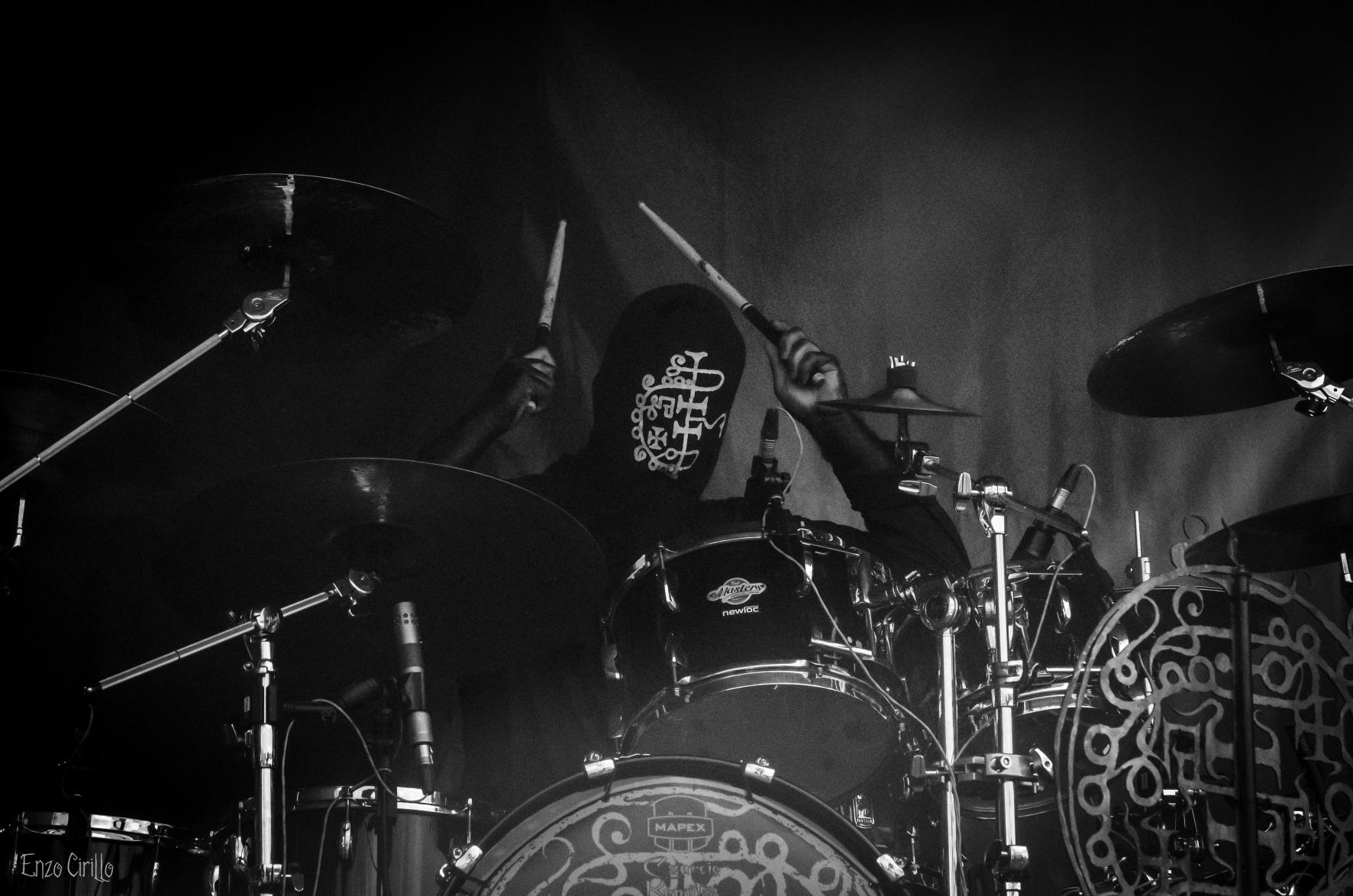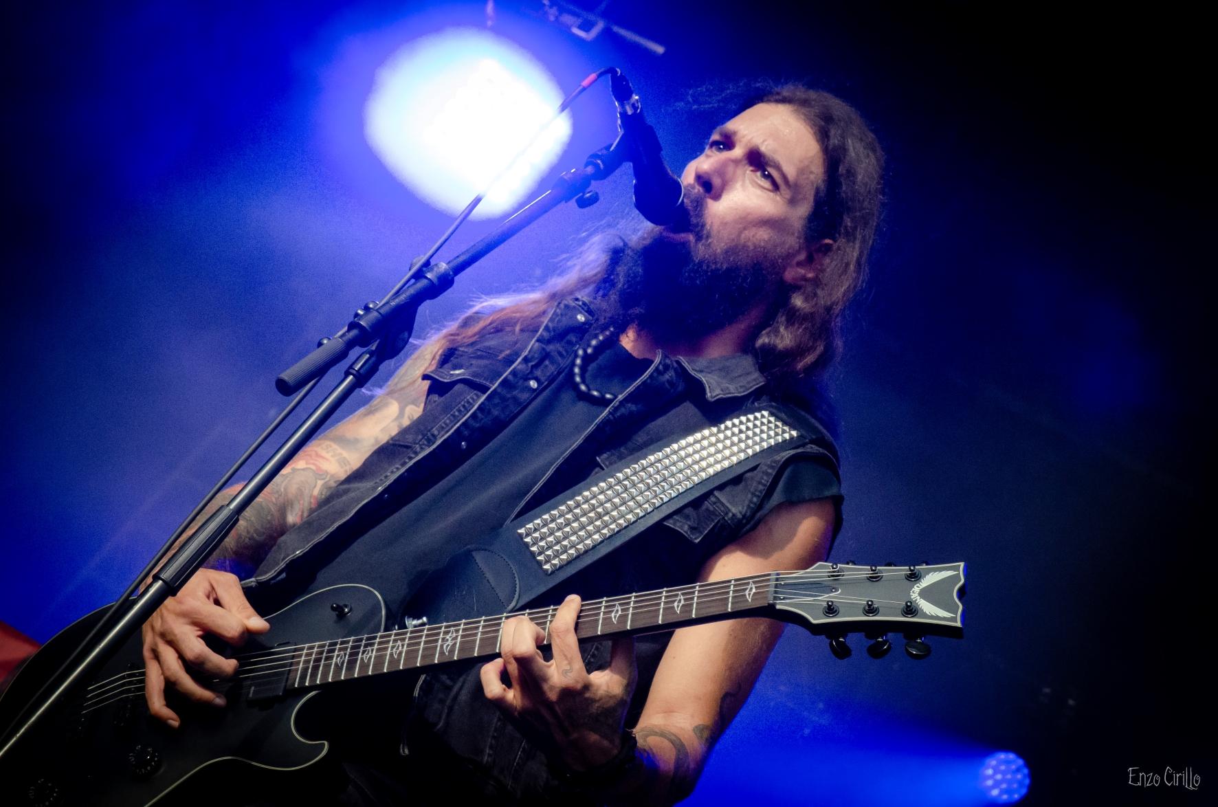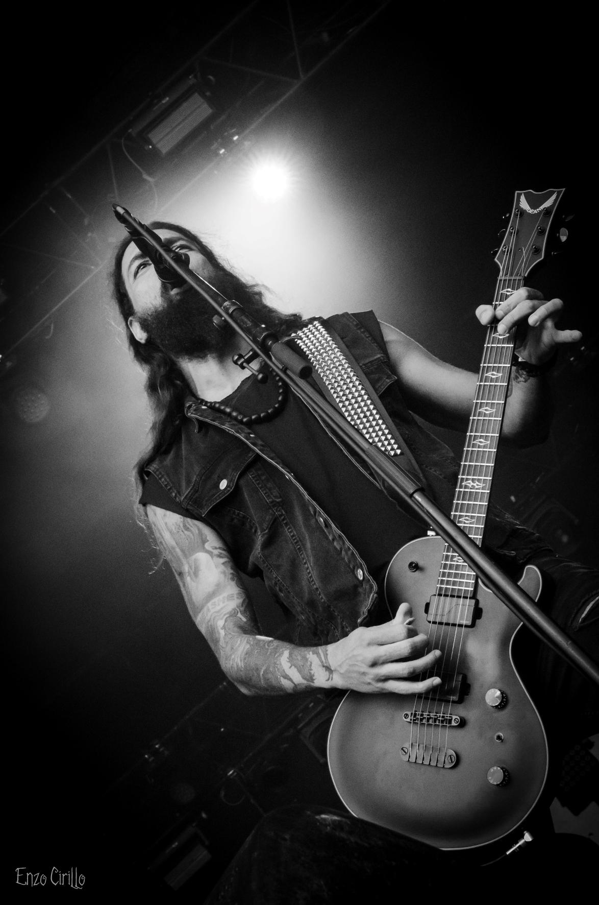 ABBATH ! On a dit doucement avec la fumée ! Fumer tue et là en l’occurrence ça flingue le boulot des photographes car le concert n’a même pas encore commencé et c’est déjà le brouillard sur la scène. Et c’est bien dommage car le décorum du musicien et son groupe offrait un bon cadre, d’autant que l’arrivée des mecs se fait sur To War!, un morceau bien rythmé. Ce qu’on aime avec Abbath, c’est qu’il est plus drôle qu’effrayant surtout quand on voit ses postures parfois grotesques mais qu’est-ce c’est hilarant ! Mais décidément, cet excès de CO2 ira jusqu’à le faire presque disparaitre pendant quelques secondes et à plusieurs reprises. Cela étant dit, le côté "j’apparais dans la fumée comme une créature de la nuit" fait son petit effet.