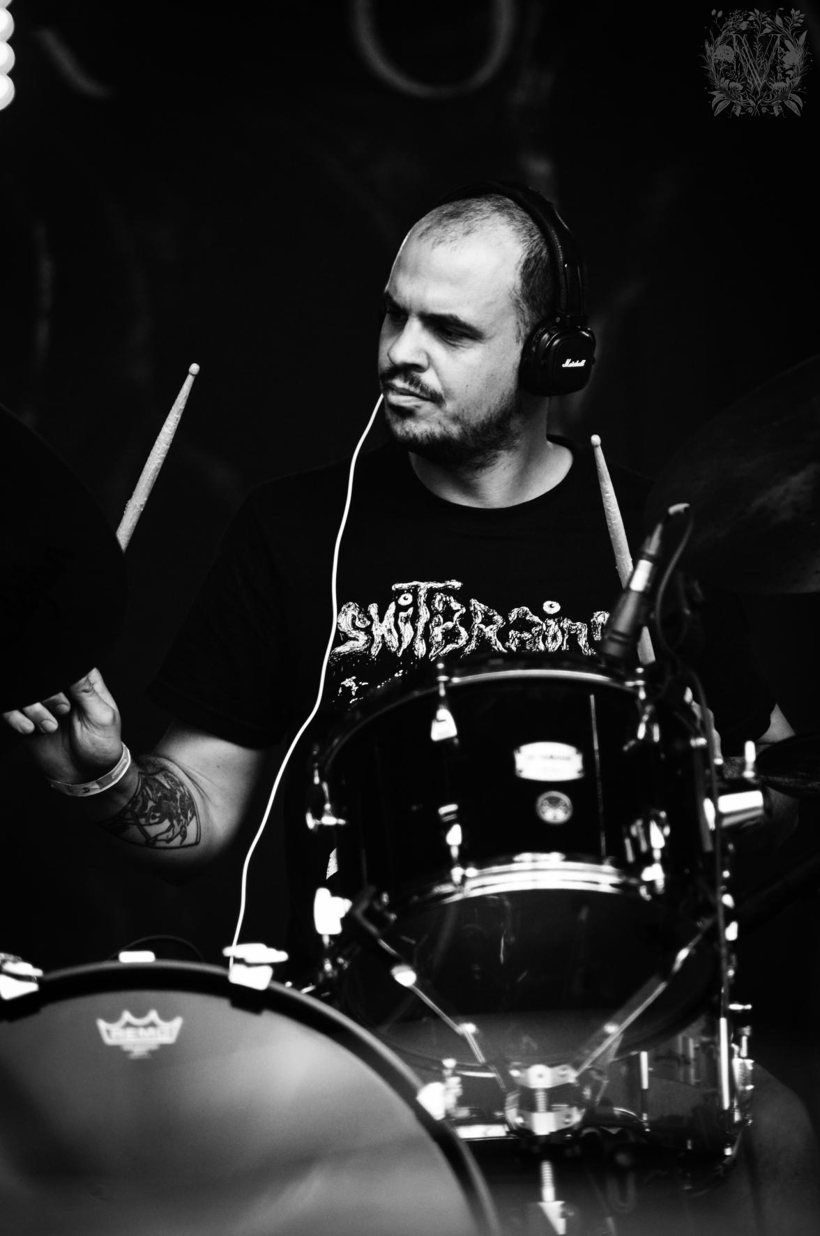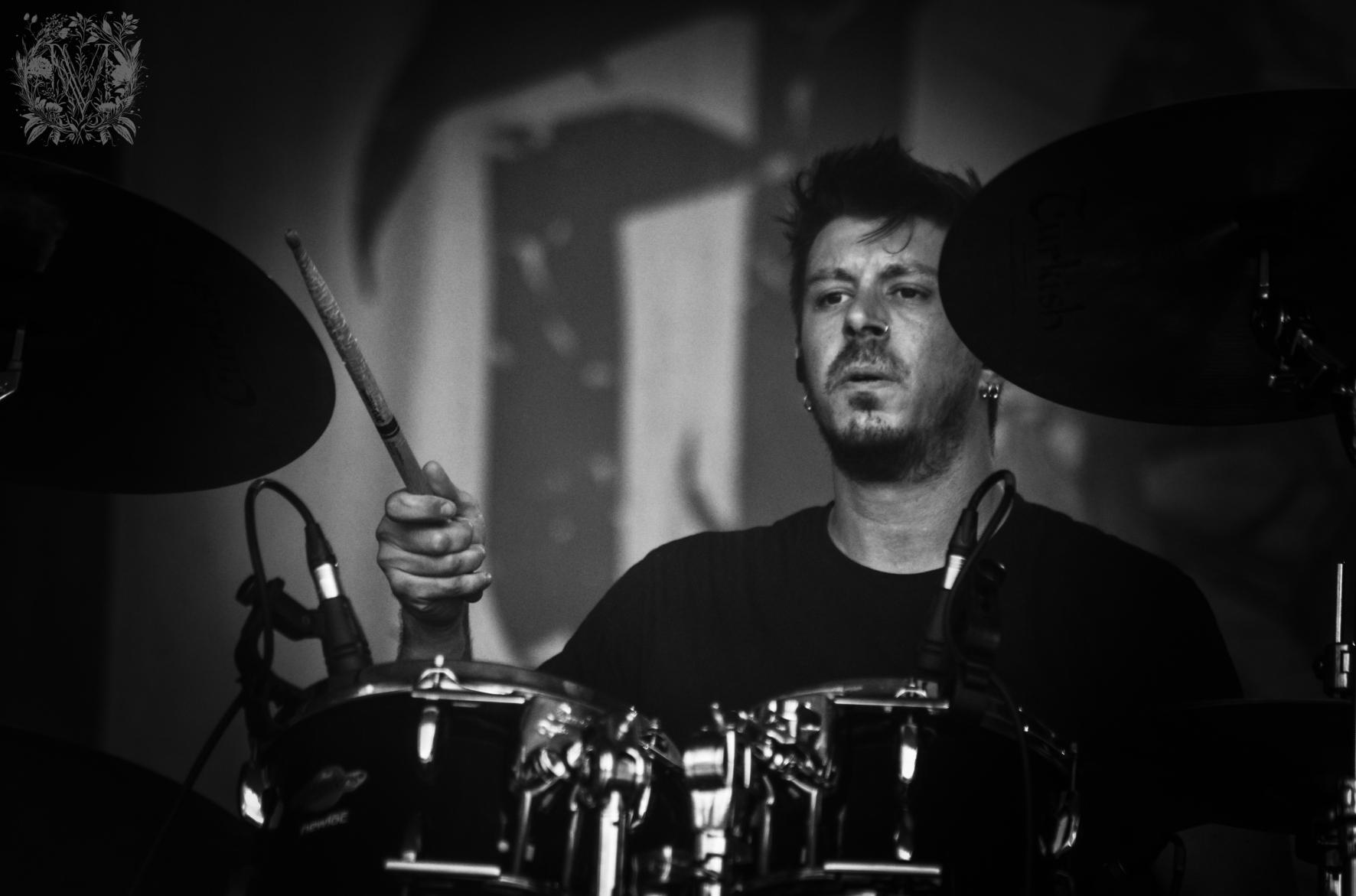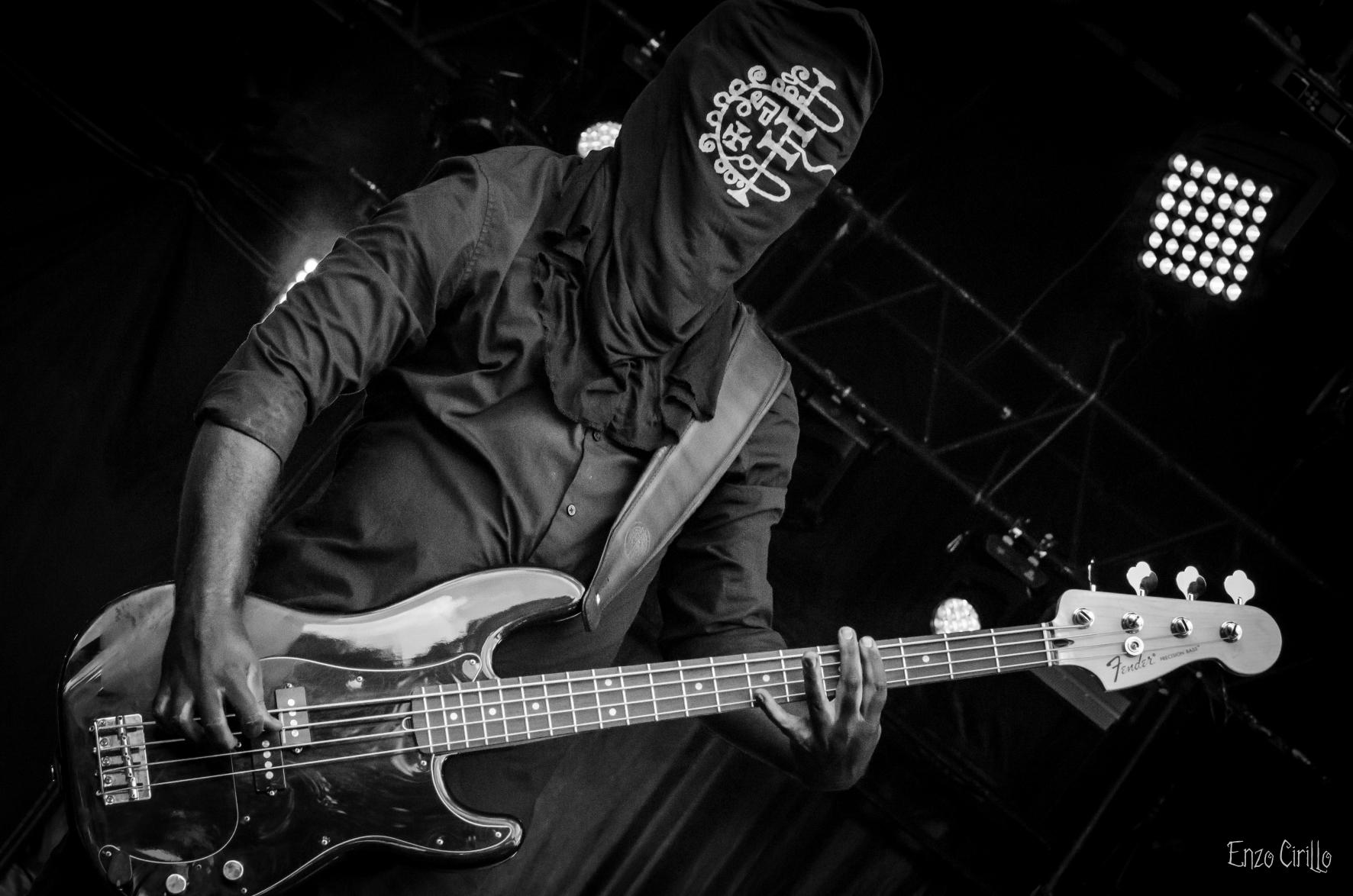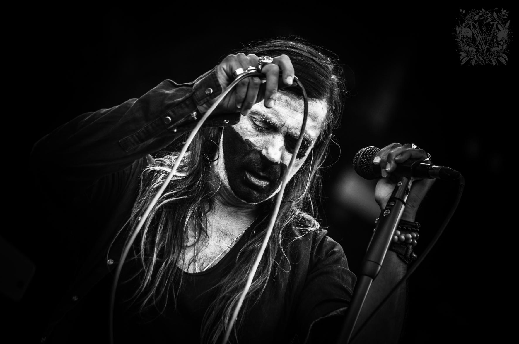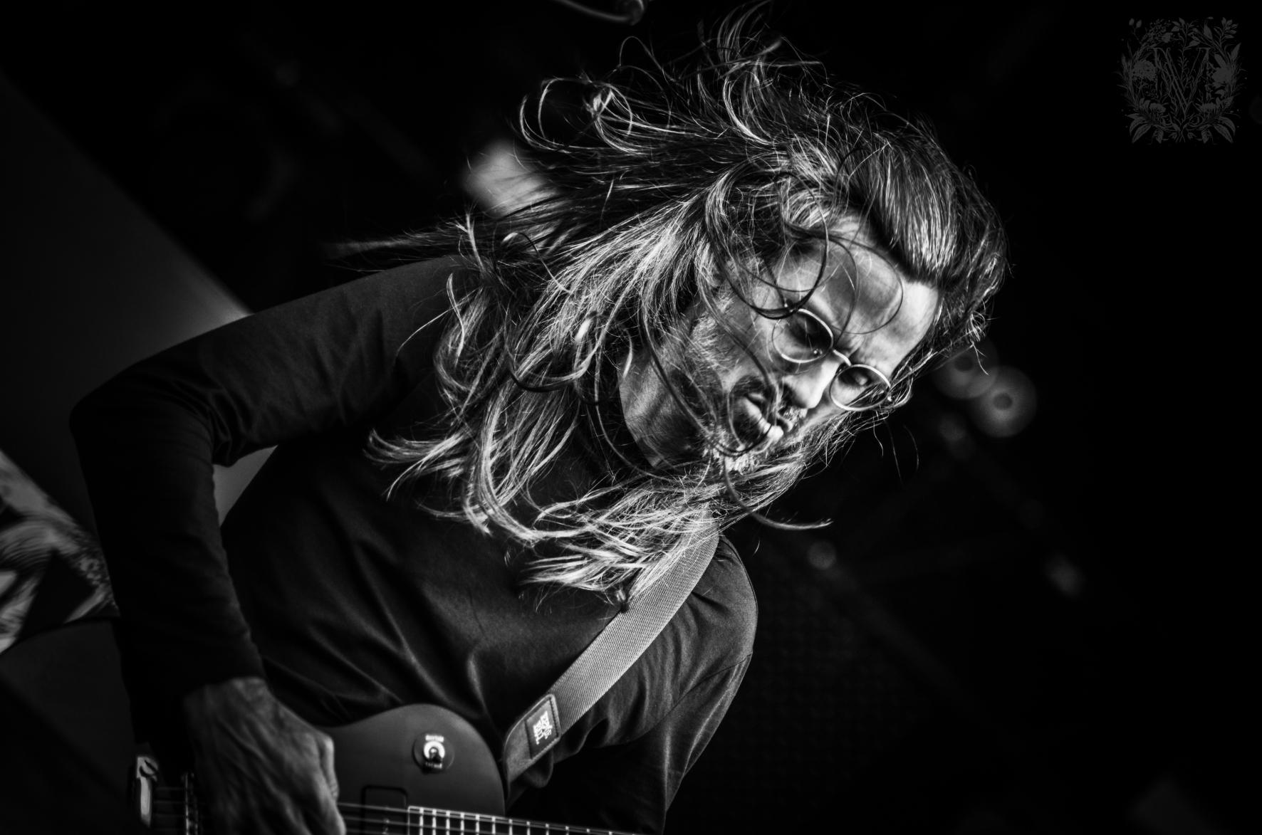 En ouverture de ce dimanche, on retrouve DELIVERANCE, un des projets d’Etienne Sarthou, ex-batteur d’AqMe, batteur chez KARRAS et FREITOT. Ici il sera au poste de guitariste. Et oui, en plus d’être ingé-son et réalisateur musical, il a plusieurs casquettes. Contrairement à KARRAS qui évolue dans un Grindcore/Death Metal old-school, avec DELIVERANCE, il exploite d’autres influences pour proposer du Post-Black Metal et quelques éléments de Sludge. Le chanteur avec son maquillage évocateur gérera également un clavier qui enverra les orchestrations avec un très bon rendu dans l’embellissement des morceaux. Le chant criard du frontman ajoute aux ambiances malsaines du Black Metal mêlé à la lourdeur du Sludge. La rythmique est précise et les orchestrations nous transportent. Un fan de ces styles de Metal ne peut pas passer à côté de cette formation et on y découvre un Etienne à la guitare qui en joue aussi bien qu’il joue de la batterie.