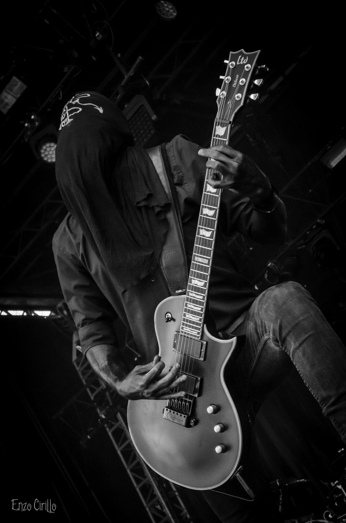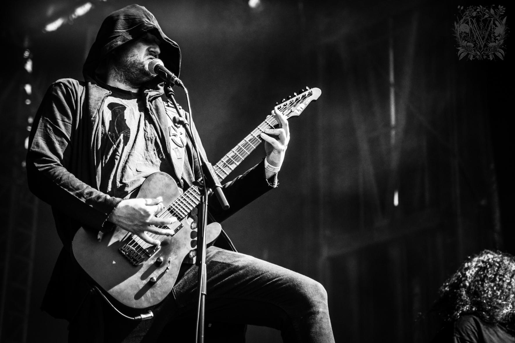 Je sais, on vous bassine avec GAEREA mais que voulez-vous, le groupe est partout depuis l’année dernière. Mais ce groupe Portugais fait toujours preuve d’efficacité en live alors qu’ils sont masqués comme des bourreaux. Les gesticulations du chanteur ne changent pas, il en fait peut-être même un peu trop. Mais au moins la setlist se varie un peu plus. Alors qu’en 2022, le combo ouvrait avec Conspiranioa, cette fois c’est sur Mantle que les Portugais débutent leur show. Et je pourrais également dire chaud parce que le soleil tape bien et les membres doivent avoir bien chaud sous leurs masques. Encore une fois le cadre ne colle pas avec la musique jouée car leur style se veut très obscure et teinté de désolation. Et le jeu de scène est toujours aussi rodé. Le burinage des instruments laisse parfois place à des relents de sonorités Post-Black, notamment sur Deluge. Pour changer un peu, le frontman changera de masque entre deux morceaux, ce qui prouve que le groupe cherche à faire évoluer leur set même si ce n'est qu'un détail. Bref, on ne se lasse pas d’un concert de GAEREA et il est certain qu’on continuera d’en entendre parler.