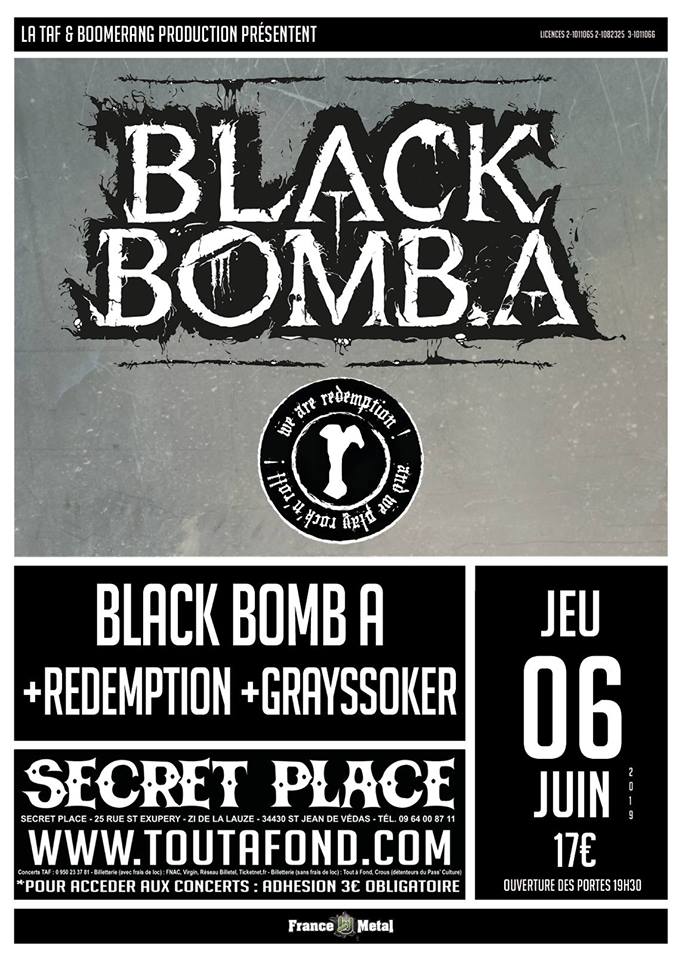 Black Bomb A + Redemption + Grayssoker - Secret Place, Montpellier*