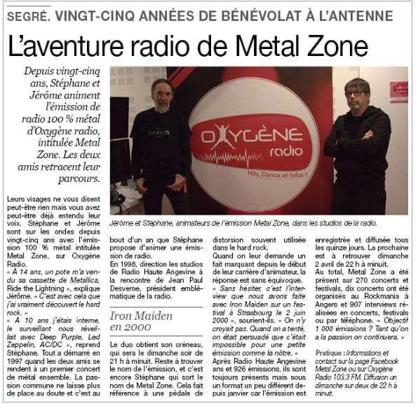 Compte tenu de leurs différents goûts musicaux et leur ouverture d’esprit, ils diffusaient tous les styles de METAL (du FM au grindcore). L’émission a été enregistrée sur des K7 audio (3 par émission) jusqu’en 05/1999 puis sous format MP3. Leur pote Shub qu'ils ont connu grâce à l’émission a intégré l’équipe en 1999 en tant que co-animateur et technicien informatique. C’est lui qui a créé le 1er site internet de METAL ZONE, site ayant évolué au fil du temps et de l’actualité chez différents hébergeurs. Au tout début, le conducteur était assez sommaire avec un disque de la semaine et une démo de la semaine, puis a évolué en intégrant différentes rubriques (DVD Zone, interview, in memoriam, série française, l’original/la reprise...). Epoque Oxygène Radio (2012 à ce jour).