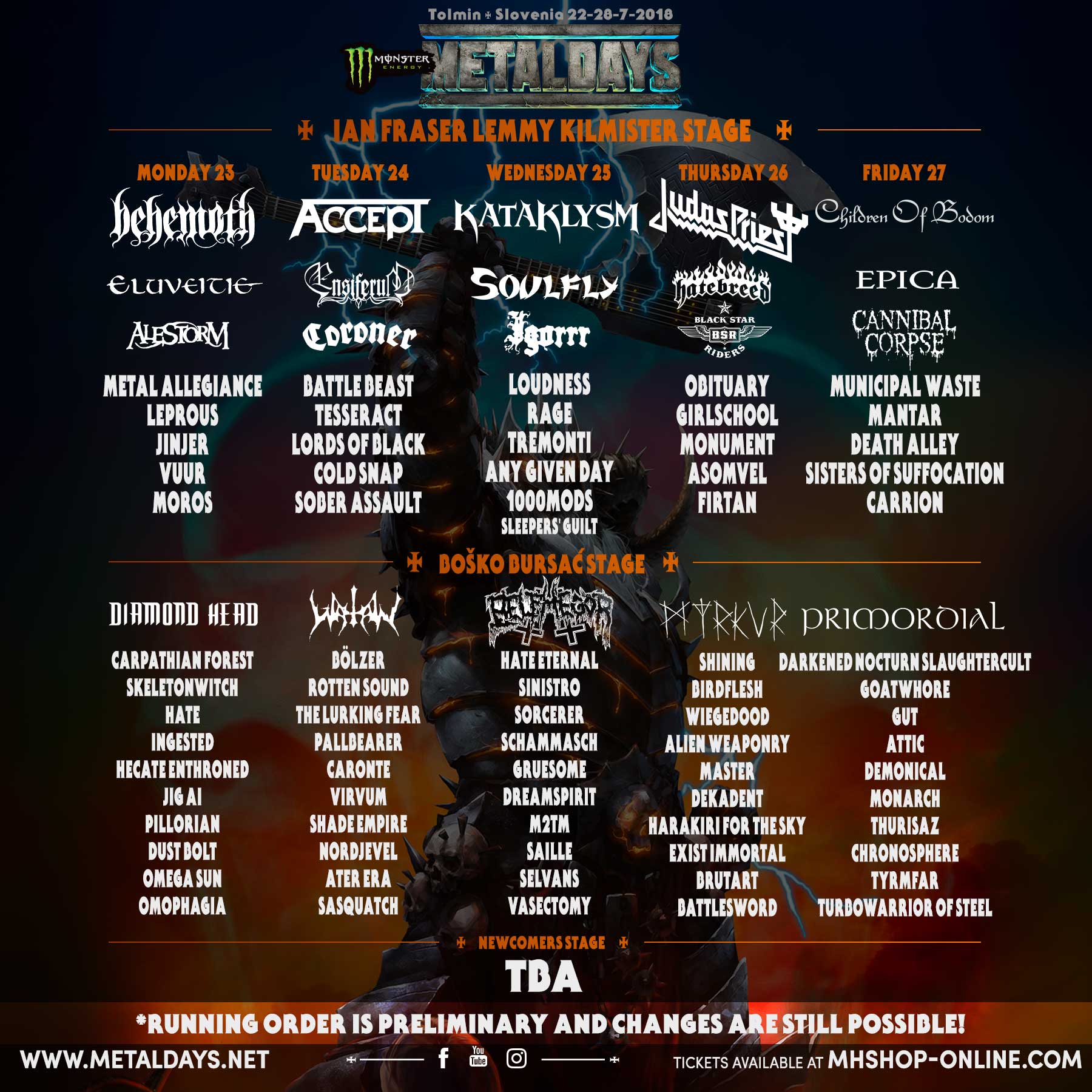 Boban Milunovic : Non, ce n’est pas un choix, c’est une nécessité. On n’a pas la place d’accueillir des productions énormes comme celles d’Iron Maiden ou de Rammstein par exemple, ou de Metallica. Rien de tout ça n’arrivera jamais au Metaldays. La raison n’est pas même pas l’argent, c’est simplement que l’espace qu’offre le festival est limité et ne peut pas accueillir de structures plus grosses que celles qu’il accueille à l’heure actuelle. On ne peut pas y mettre une plus grande scène, comme il en faudrait une pour un groupe comme Iron Maiden. On a des câbles électriques qui passent au-dessus de la scène, ce qui nous empêche de la remplacer pour en mettre une plus grosse. Et la zone derrière la scène, que les gens ne voient pas quand ils la regardent, la zone backstage si on peut dire, est plutôt petite comparée à celle d’autres festivals. Iron Maiden est un groupe qui a probablement besoin d’emmener une vingtaine de camions avec lui, et on n’a juste pas la place pour ça. C’est la vraie raison.