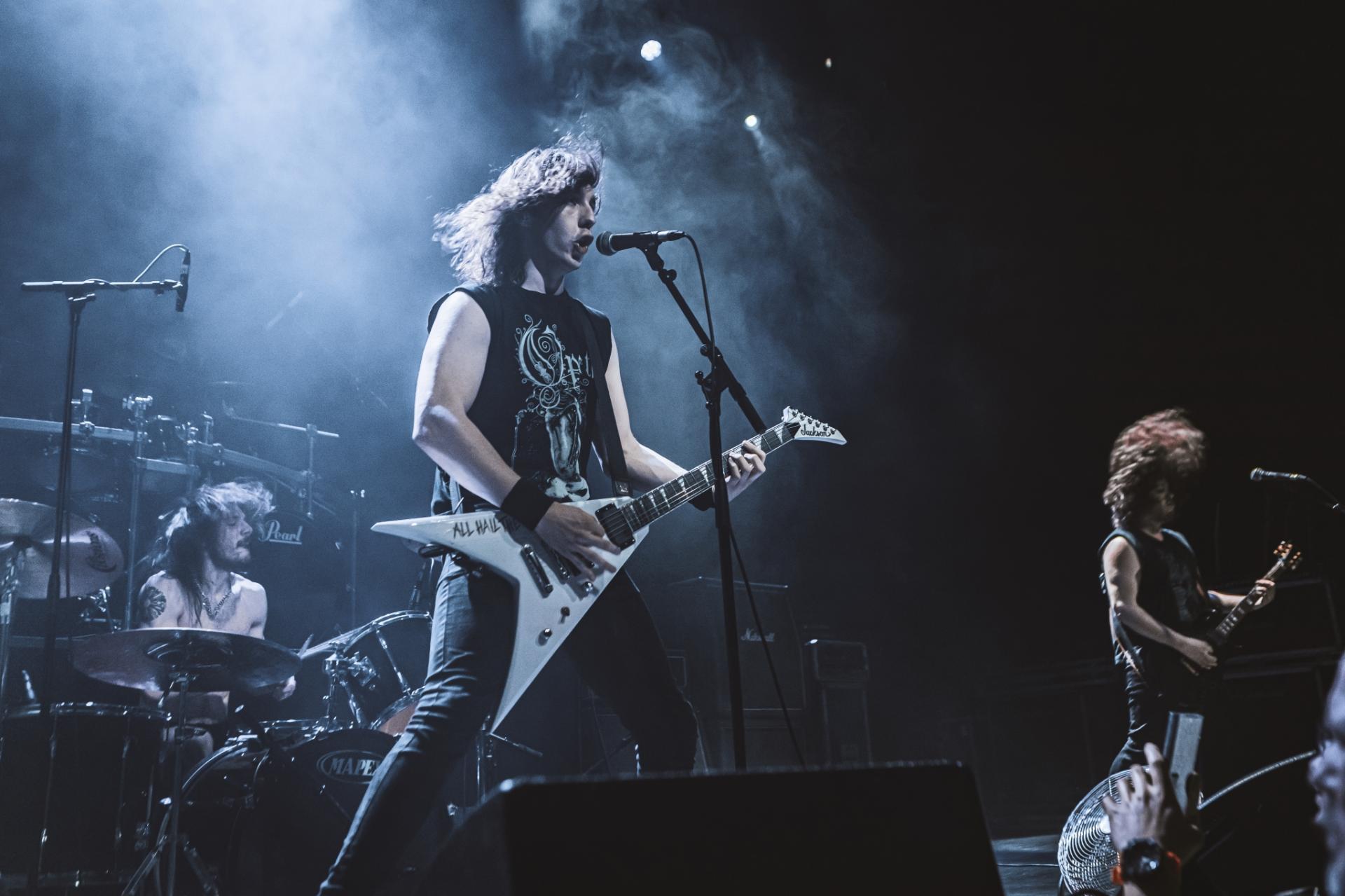 C’est HELLRIPPER qui ouvre le bal ! À la base, HELLRIPPER est un projet solo de James McBain de black/speed/thrash metal. Tout au long de la soirée, nous pouvons voir un James débordant d’énergie avec un petit air de James Hetfield plus jeune. Le "Scotland’s king of the arcane mosh" nous a livré une excellente prestation.