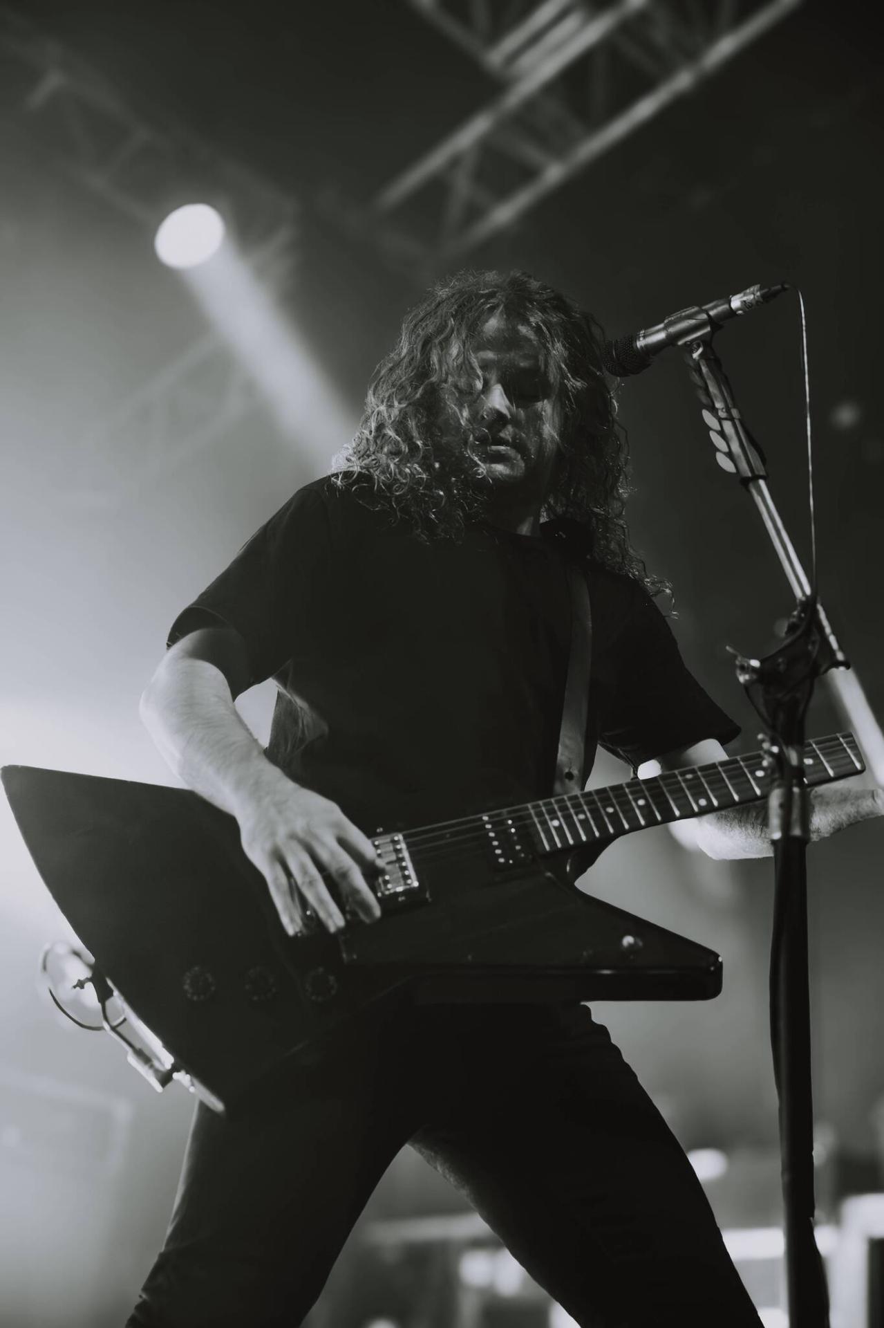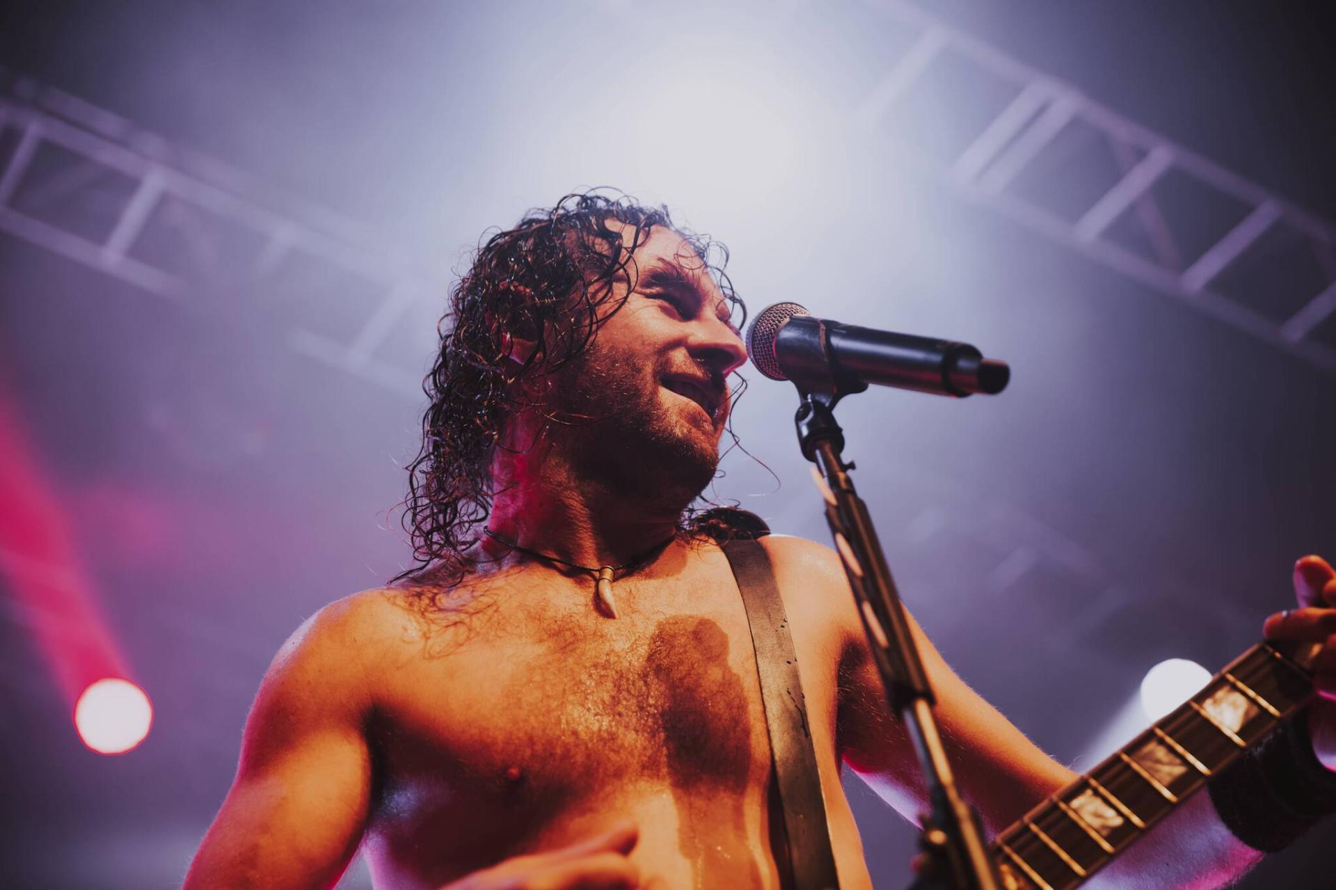 Les Australiens ont enchaîné les titres avec une intensité folle. Au quatrième morceau, le drapeau est tombé, et le chanteur a entamé un tapage de pied à la Angus Young, hommage évident à AC/DC. Le set a continué de monter en intensité et, avec cette énergie folle qui ne l’a pas quitté de la soirée, Joel O'Keeffe s’est ensuite fait porter dans toute la fosse, guitare en main, pour un solo endiablé, pour finir par éclabousser la fosse avec une canette de bière dont le public se souviendra !
