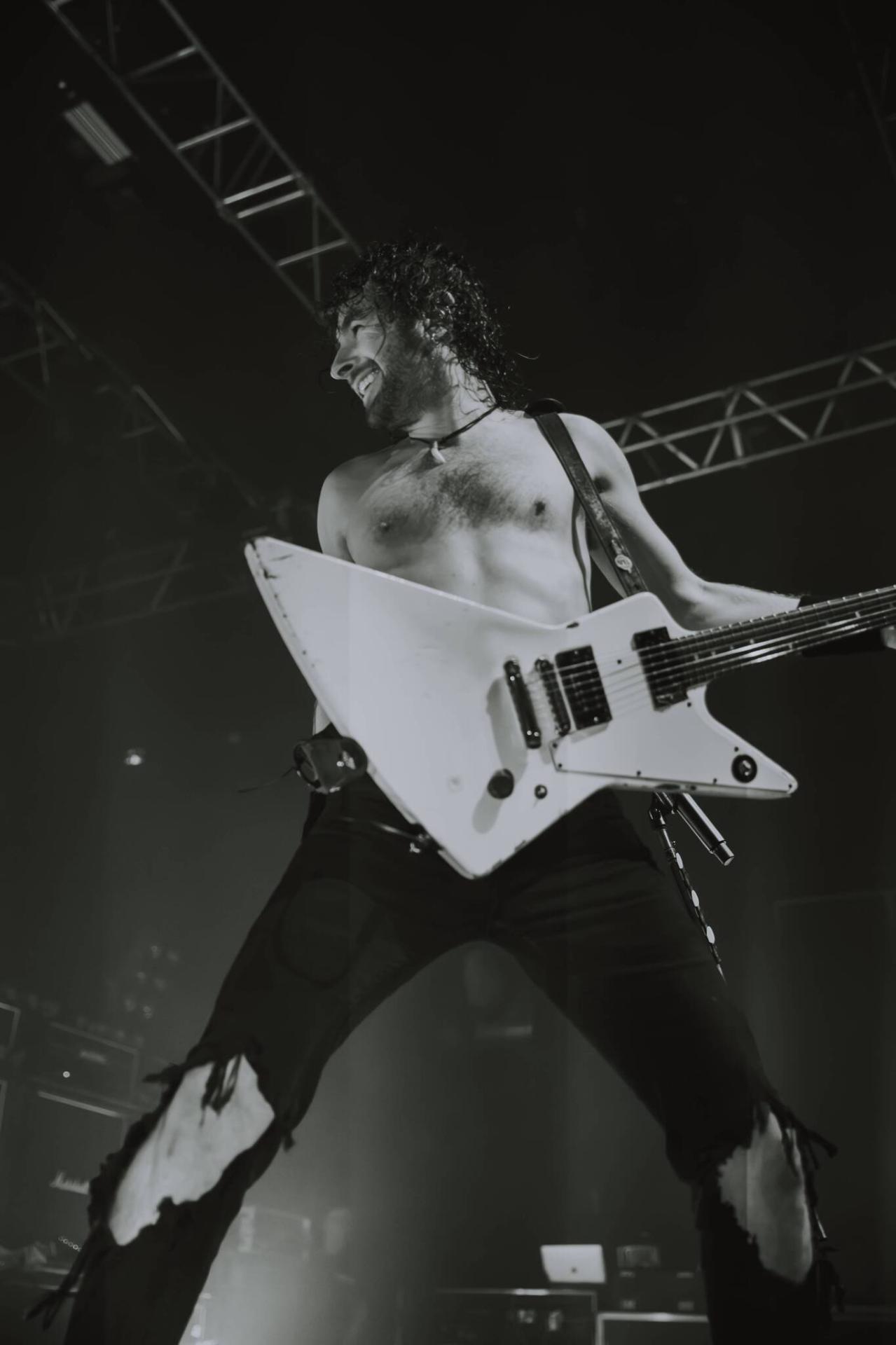La fête a continué avec une reprise revisitée de Ghostbusters parfaitement intégrée au set, puis l’une des nombreuses interactions du groupe avec le public lorsque Joel O'Keeffe a lancé un "Light this place up !", et cette fois, pas de flashs de téléphone, mais des briquets illuminant la salle. Alors que la fin du set approchait, Joel a commencé à servir des bières aux membres du groupe, avant d’en balancer directement dans la foule, dans une tout ce qu’il y a de plus rock’n’roll. Mais la soirée était loin d’être finie : après une brève sortie de scène, ils sont revenus pour un rappel furieux sur Live It Up. Les membres ont pris un instant dans cette ambiance survoltée pour remercier la sécurité, leur première partie et tout le crew qui les accompagne sur leur tournée.