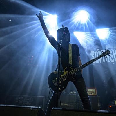 Pour chauffer La Cigale avant le set d’Airbourne, un groupe de super branleurs : THE SUPERSUCKERS peut-il faire l’affaire ? Pari gagné le 20 octobre 2019, deuxième date parisienne pour la tournée européenne THE SUPERSUCKERS/AIRBOURNE. Personne ne vous fera le reproche de ne pas connaître la discographie des super branleurs sur le bout du doigt, doigt d’honneur bien entendu. Mais pas de les apprécier, car Lemmy, oui, lui, l’a dit : si on aime pas THE SUPERSUCKERS, on aime pas le Rock’n Roll. Rien que ça ! Et un autre père, du grunge celui-là, Eddie Vedder de PEARL JAM l’a confirmé, pour avoir chanté avec eux : ces gars rockent ! Ouf, je n’étais pas venu pour du Mozart. Restait à voir et entendre « le meilleur groupe de rock’n roll au monde », comme ils aiment à se présenter. Le groupe compte désormais 3 membres : Eddie Spaghetti – Chant, Basse. Le boss ! ‘Metal’ Marty Chandler – Guitare, Chant, depuis 2009 et ‘Captain’ Chris Von Streicher – batterie depuis 2012. Le combo fonctionne parfaitement, pas de temps morts, pas de solos inutiles. Ca booste sans forcer, dans le genre Nashville Pussy. On ne s’ennuie pas, et la dynamique de la scène fait passer l’envie de rechercher de l’originalité dans les compositions. Le public se prend facilement au jeu, et a volontiers tendu son doigt d’honneur, en fin de set, sans se faire prier. Par contre le meilleur groupe au monde n’était pas là ce soir… Et heureusement, car ils auraient fait de l’ombre aux furieux d’AIRBOURNE.