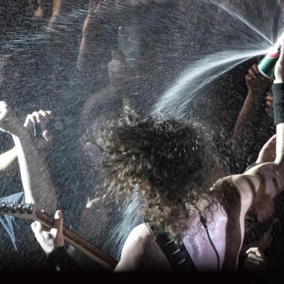 Et comme toujours nous allons passer en revue la setlist de ce soir, et comme toujours AIRBOURNE s’appuie sur l’efficacité avec ses tubes phares tels que Girl In Back, Breakin’ Outta Hell titre éponyme du précédent album, ou bien It’s All for Rock ‘n’ Roll. Seul point négatif, une deuxième chanson issue de Boneshaker sera jouée, son titre éponyme, ce qui est bien dommage car ce dernier opus est vraiment bon. Mais revenons à l’ambiance avec O’Keeffe qui viendra se balader dans la fosse avec sa guitare et se fera porter par le public lorsqu’il s’éclatera une canette de bière sur la tête, nous arrosant au passage. Quel numéro celui-là ! Il s’improvisera plus tard barman se servir lui et ses collègues de pintes qui seront ensuite balancer dans la foule, finissant leur course vide presque à chaque lancé.