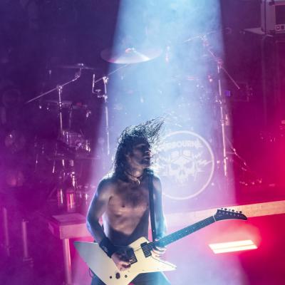 Burnout The Nitro porte bien son nom quand on voit un Joel O’Keeffe totalement survolté, à croire qu’il soit équipé d’un nitro justement. Ou alors qu’il est équipé avec des Energizer, c’est au choix ! Le deuxième guitariste Harri Harrison, dernier arrivé du groupe en 2017, surnommé à juste titre The Riff Doctor, et le bassiste Justin Street sont tout aussi énergique, intervertissant leur place sur scène, de quoi donner du fil à retordre aux photographes, mais les musiciens n’hésiteront pas à prendre quelques poses. Et le frangin Ryan O’Keeffe dernière sa batterie on en parle ? ça bourrine dur !! Et cette énergie communicative s’emparera de toute la fosse qui se transforme rapidement en défouloir, en pogos géant. Le sol rétractable de la Cigale fait littéralement trampoline !