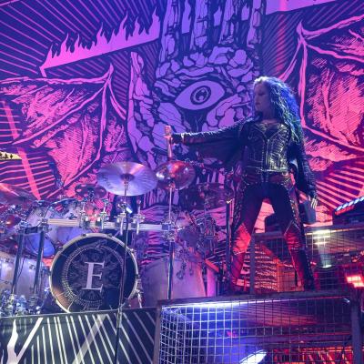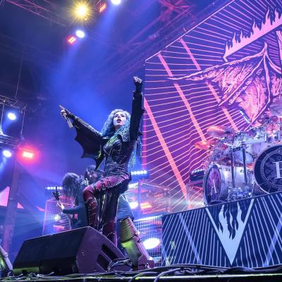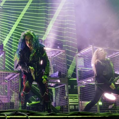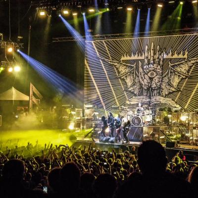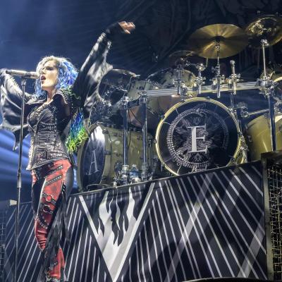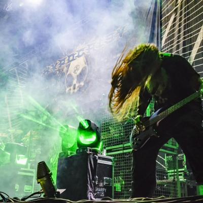 Que ce soit en tête d’affiche ou en guest, un live d’ARCH ENEMY est toujours un triomphe. Et ce n’est pas un hasard si les setlists sont à peu de choses prêts les mêmes, juste agrémentées de nouveau titre à chaque sorti d’album, le groupe sait ce qui plait à ses fans qui sont très présents ce soir. Will to Power sorti en 2017 est toujours mis en avant, le combo commençant ses concerts avec le tube The World Is Yours. Malheureusement, il y a toujours ce problème de réverbération du son et la voix de la chanteuse Alissa White-Gluz sera un peu trop couverte par l’instru, parfois même inaudible… Mais sa prestation scénique et son charisme compense très largement. Le groupe de Michael Amott donnera, comme à son habitude tout ce qu’il a dès le début du set. Après quoi, la frontwoman s’adressera à nous, ayant une information apparemment importante à nous délivrer : this is a fucking war. C’est parti pour la désormais emblématique War Eternal et comme souvent ce morceau déclenchera la première vague de pogos de la soirée. Le refrain sera repris en cœur par le parterre de fans, moi y compris !