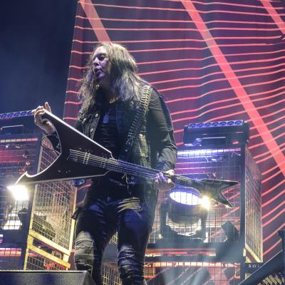 Contrairement à bon nombre d’entreprise française à l’heure actuelle, l’usine à tube d’ARCH ENEMY n’est pas en grève ! De My Apocalypse à Under Black Flag we March où Alissa arborera comme à chaque fois le drapeau du combo, en passant par la toujours aussi efficace Ravenous qui orchestra un gros wall of death, le groupe sait convaincre son public et ce, aussi bien avec d’anciens titres qu’avec des plus récents avec The Eagle Flies Alone devenue culte, suivi en fondu enchaîné par First Day In Hell. Le guitariste Jeff Loomis prouvera une fois encore qu’il n’a pas volé sa place au sein d’ARCH ENEMY exécutant ses solos avec une parfaite maîtrise et assurant avec brio ses parties rythmiques lorsque que c’est Michael qui passe soliste et qui lui aussi signera une excellente performance. De son côté, le bassiste Sharlee d’Angelo ne restera pas non plus en retrait tout au long du show, jouant avec le regard du public, et n’oublions pas Daniel Erlandsson toujours très efficace dernière son imposante et non moins magnifique batterie.