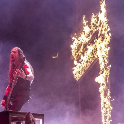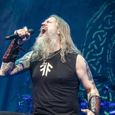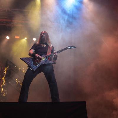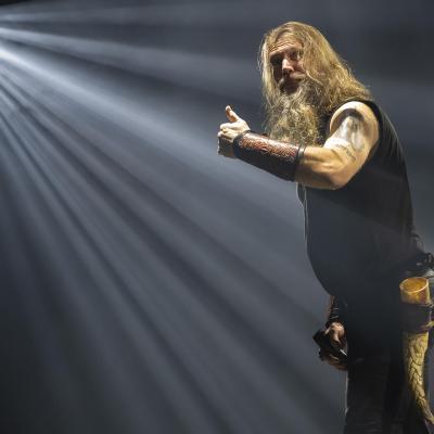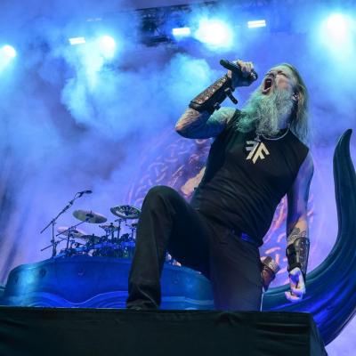 Mené par un Johan Hegg en pleine forme, tel un chef d’orchestre, le groupe nous offre ce soir une prestation scénique exceptionnelle et profite des commodités qu’offre le zénith pour sortir son matos pyrotechnique, chose infaisable lors de leur précédent passage parisien au Casino de Paris en 2016. Voilà de quoi nous réchauffer entre cette froide nuit d’automne avec des jets de flammes qui colleront à l’ambiance du troisième titre Death in Fire, suivi par Deceiver of the Gods qui sera le seul représentant de l’album du même nom à être joué ce soir, le combo préférant se concentrer aussi bien sur son nouveau méfait que le précédent, Jomsviking avec Fafner’s Gold et Crack the Sky issu de l’un, First Kill et The Way of Vikings de l’autre. Sur cette dernière nous ne verrons pas la mise en scène d’un combat de viking alors que c’était encore d’actualité lors de leur show du Knotfest en juin dernier à Clisson.