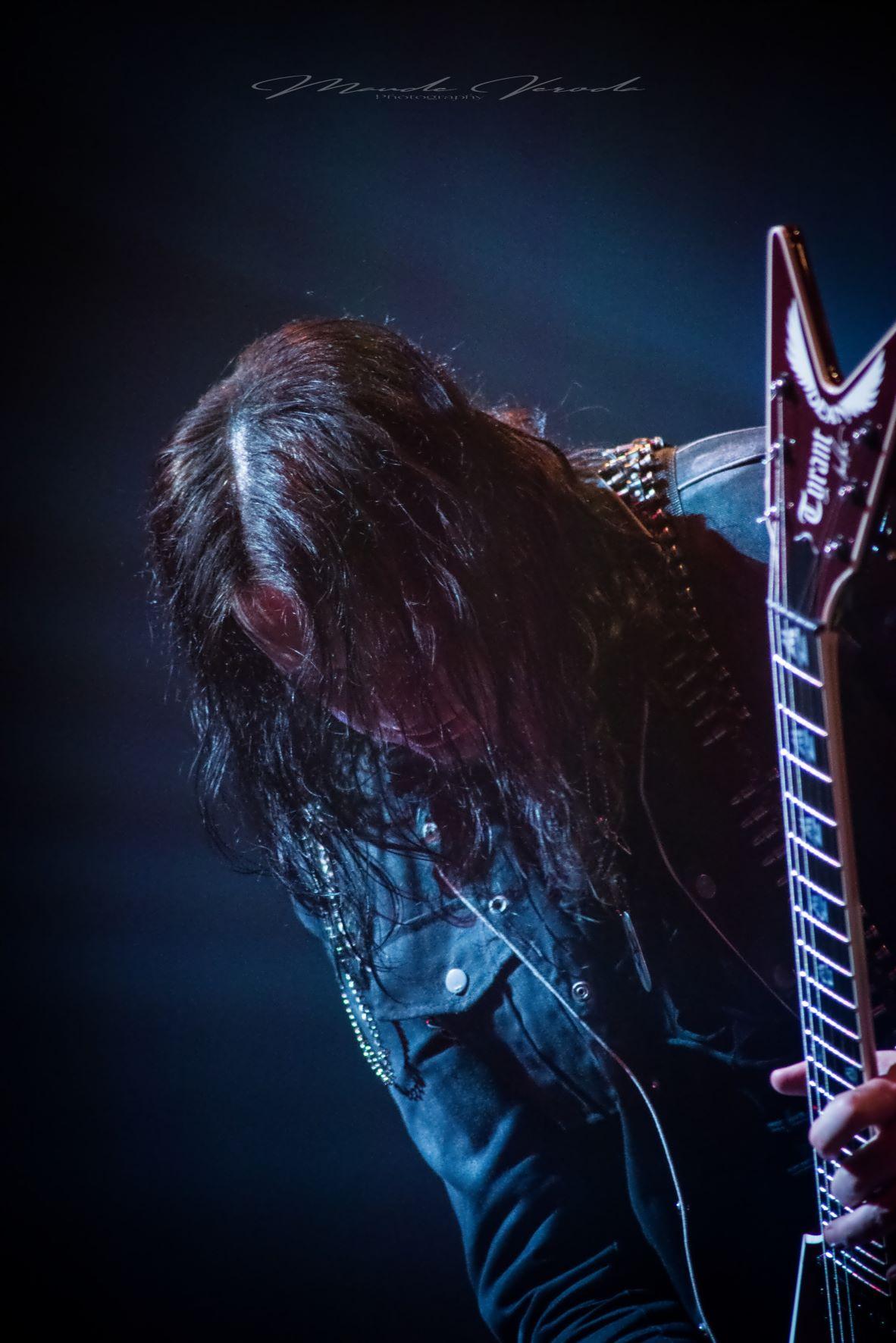 Les Polonais ne se contentent pas d’être derrières leur micro et, la scène étant grande, occupent tout l’espace. Orion changera régulièrement de place avec Seth et on peut voir une grande complicité entre Nergal et ses camarades. Le set se rapproche de la fin et BEHEMOTH terminera sur l’habituel titre final Chant for Eschaton 2000 sur laquelle Seth fera hurler sa guitare. Les Polonais ont rempli leur part du contrat et laisse place à leurs amis d’ARCH ENEMY.