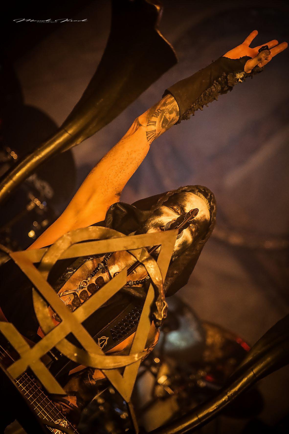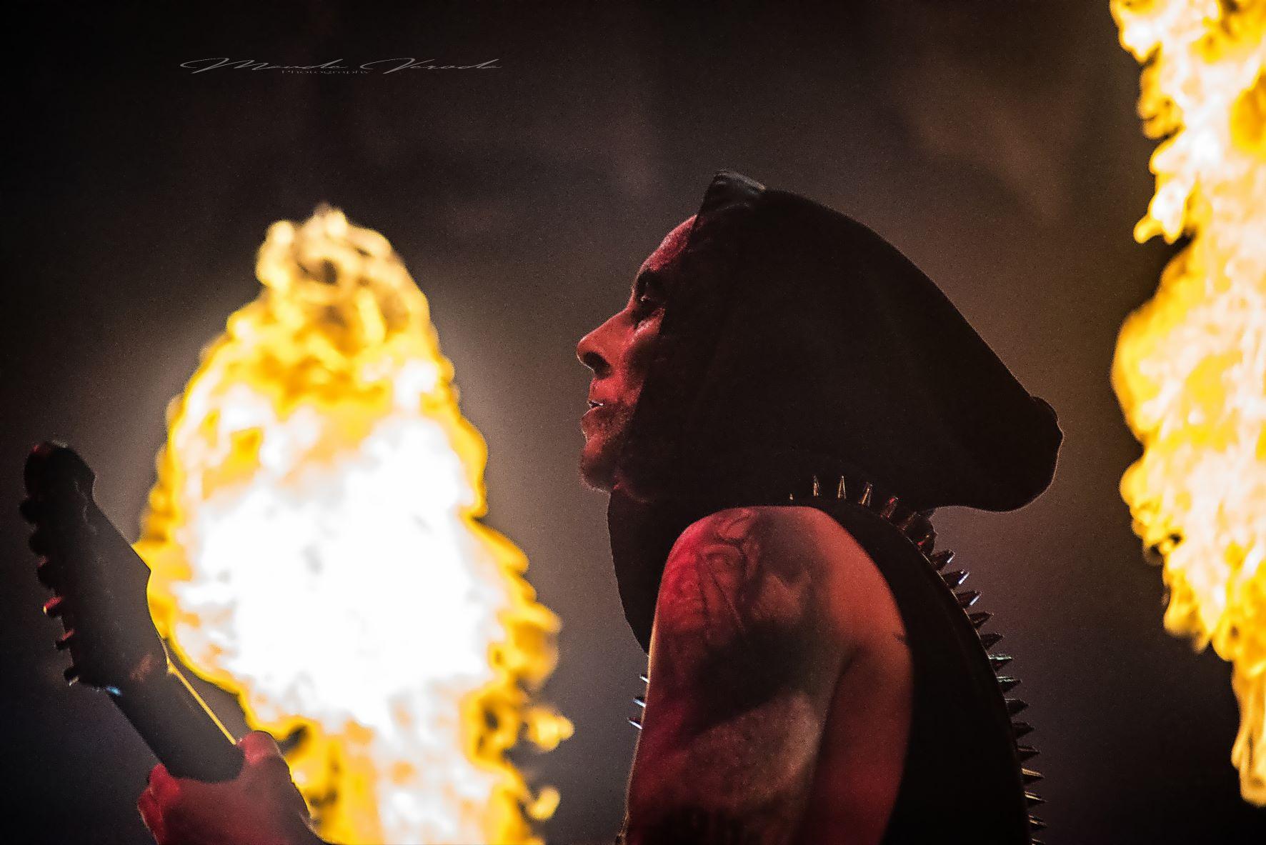BEHEMOTH propose toujours des petites mises en scène pour illustrer les titres, notamment sur Bartzabel où Nergal porte un chapeau de pape comme dans le clip de ce titre qui donne l’occasion à Inferno démontre toute sa technicité derrière sa batterie tandis qu’Orion et Seth chantent "Come unto me Bartzabel" tel une invocation lors d’un rituel. Un show du groupe donne toujours un côté spectaculaire à la prestation, d’une part par la pyrotechnie, d’autre part par le fait que le groupe ne fait pas que jouer sa musique et on verra Nergal dans une tenue liturgique avec un encensoir tel un prêtre lors d’une messe.