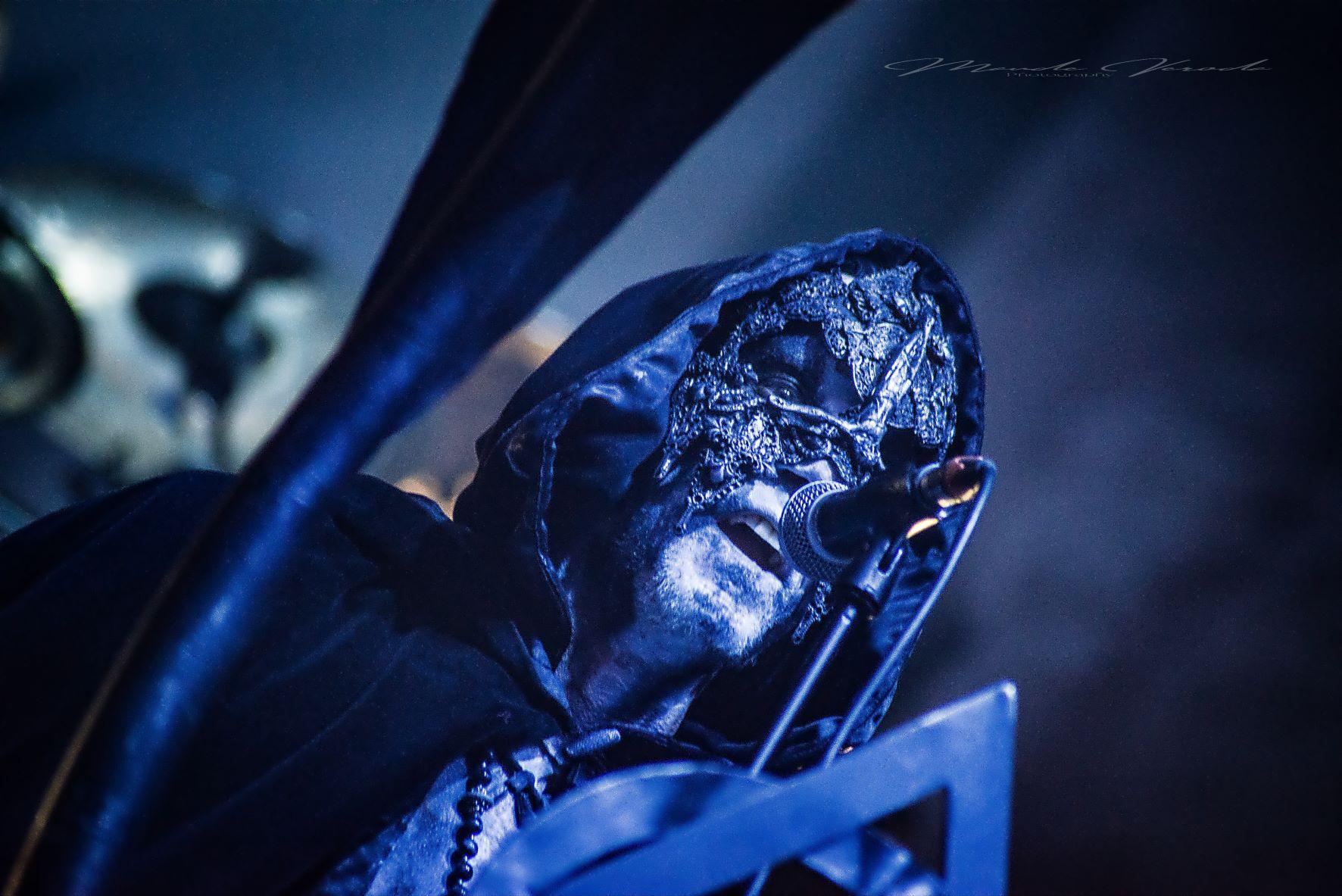 Il est 20h, BEHEMOTH s’apprête à jouer son set alors qu’un rideau blanc cache la scène, sur lequel est projeté des images de Nergal le tout accompagné de l’intro Post-God Nirvana, de quoi faire monter la tension. Le rideau tombe et laisse apparaitre le quatuor qui commence par Ora Pro Nobis Lucifer ponctué par un premier jet de CO2. Après cette mise en jambe, place au nouvel album Opvs Contra Natvram avec The Deathless Sun sur laquelle Nergal sera vêtu d’une cape et d’un masque, l’occasion d’avoir de belles photos. S’en suit Ov Fire and the Void, toujours efficace en live, puis Nergal prendra la parole en exprimant sa joie de revenir à Paris après trois ans de pandémie.