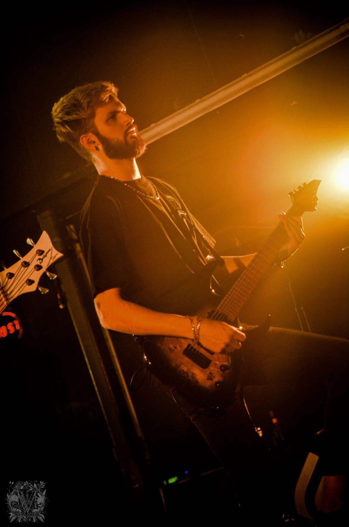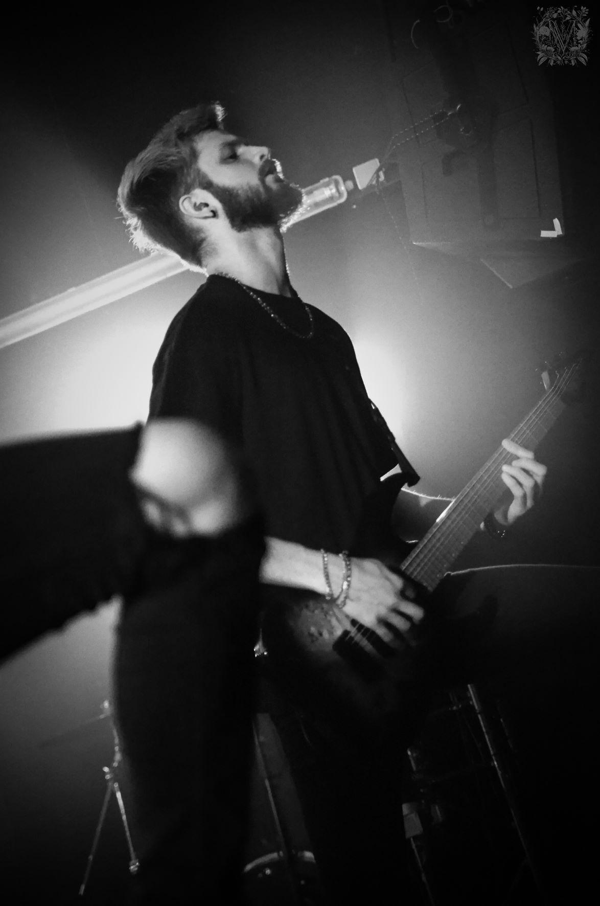 Ouverture des hostilités avec OUT OF MY EYES. Ce groupe a déjà quelques années derrière lui donc des habitués du live. Première claque auditive de la soirée et on remarque que la frontière entre metalcore et deathcore est plutôt mince. Corentin au chant nous pousse des growls maitrisés et on peut dire qu’il a un sacré coffre. Ses camarades diffusent leurs riffs qui sont idéal pour bien s’échauffer. Un figurant habillé en soldat cagoulé viendra faire une petite mise en scène en malmenant le frontman qui s’en débarrassera rapidement. L’album Goldon de 2021 sera représenté et mention spéciale à Danger Is Near qui donnera lui à une démonstration de tapping magistrale et Blue Cloud qui fera son petit effet. Dans le public, les pogos commencent tranquillement mais sûrement et il y aura beaucoup de soutien de la part de potes et proches du groupe venus les soutenir, chose qui alimentera cette niaque que le groupe a sur scène. Alex de SOLITARIS viendra également donner de la voix le temps d’un titre. OUT OF MY EYES font partie de l’avenir de la scène française et ce live leur ont permis de montrer de quoi ils étaient capables.