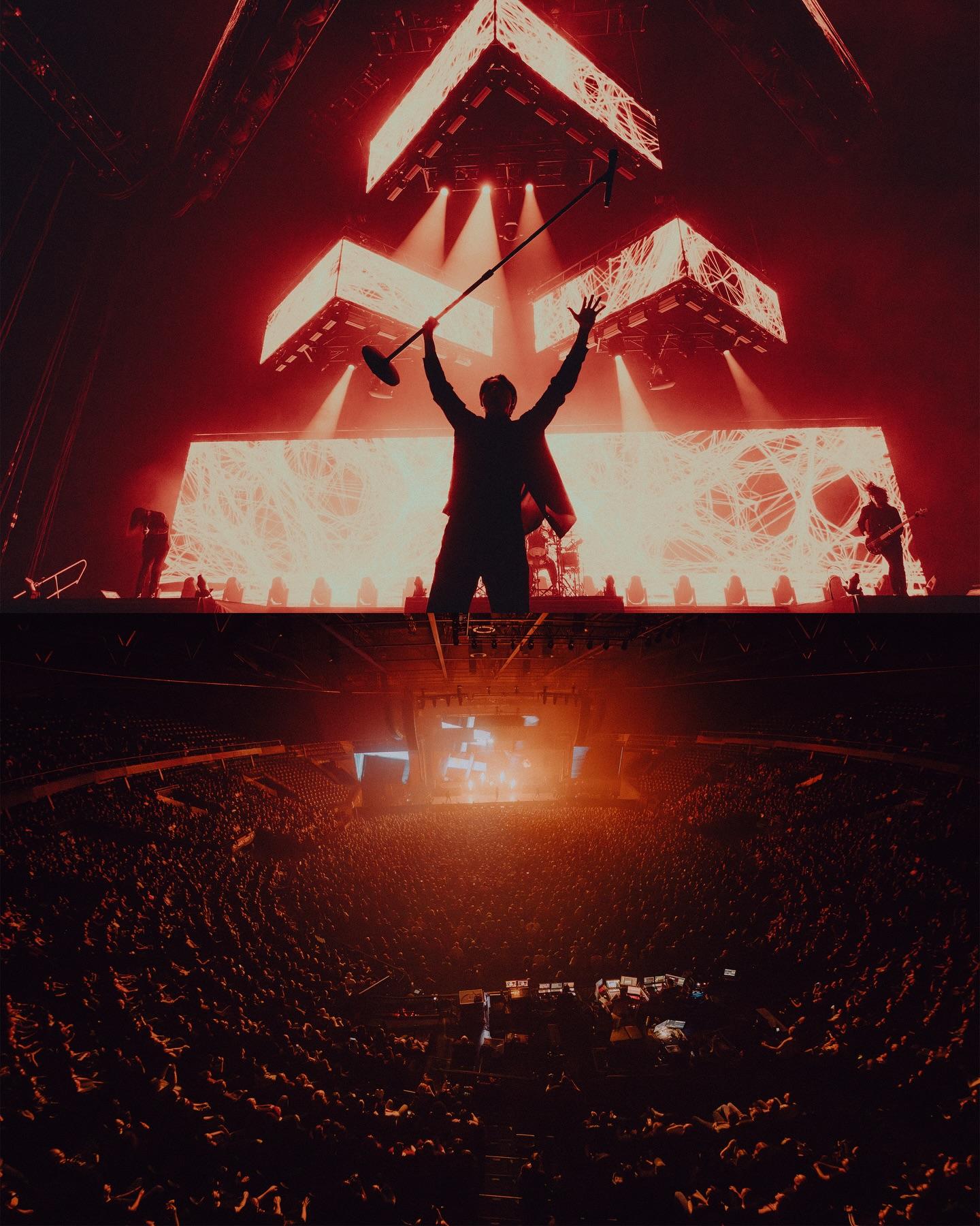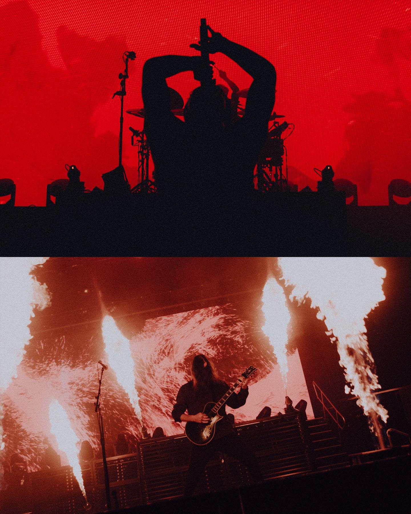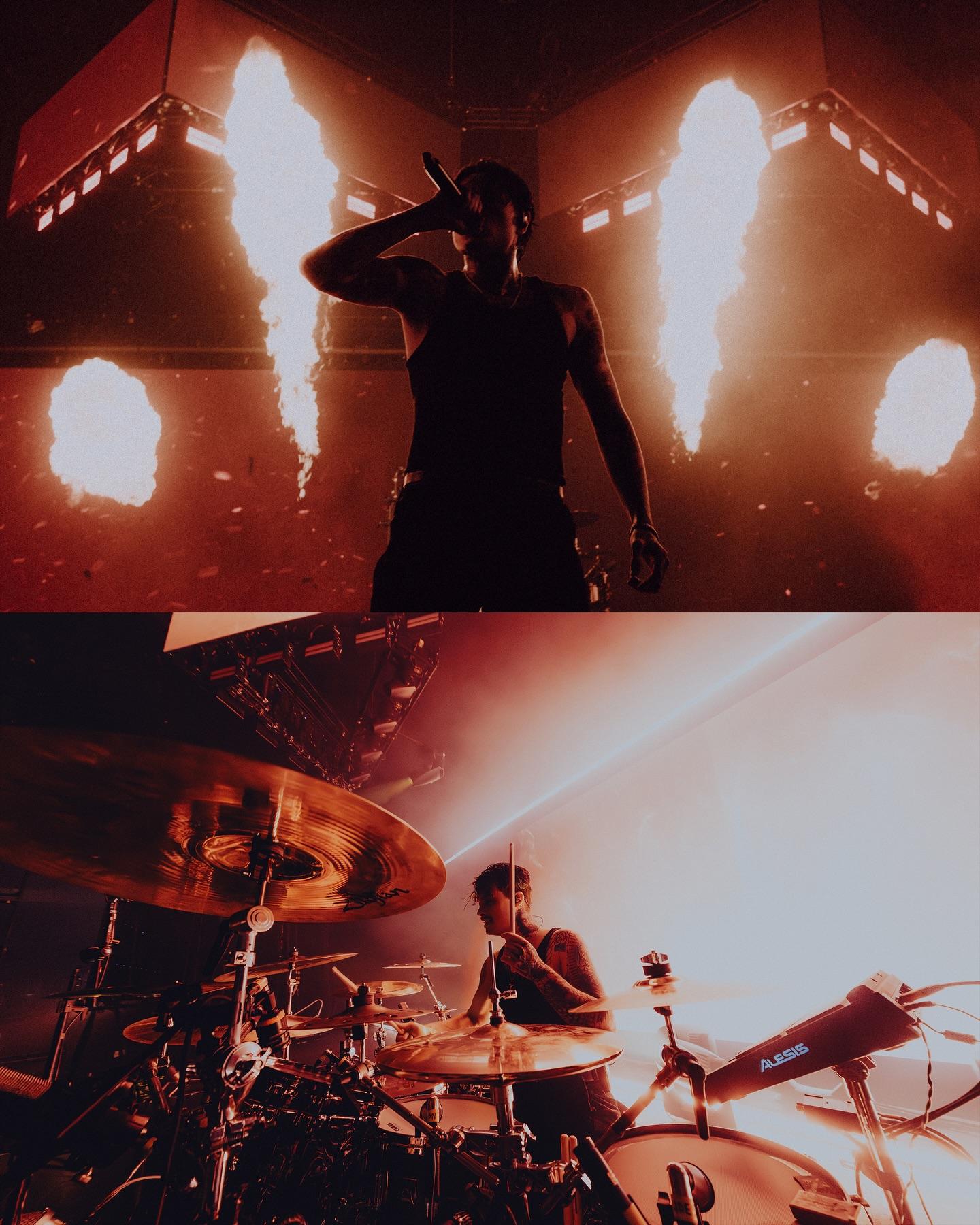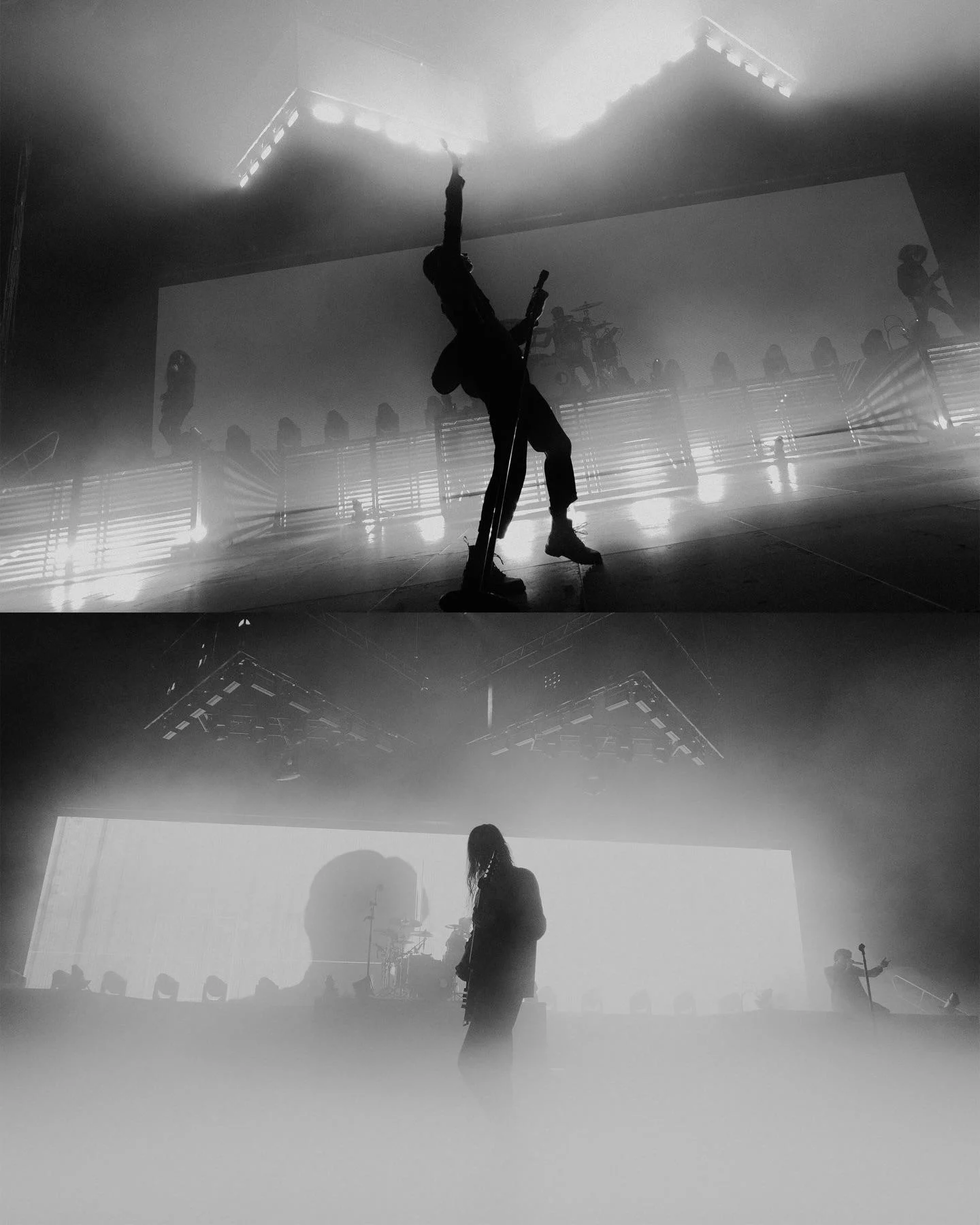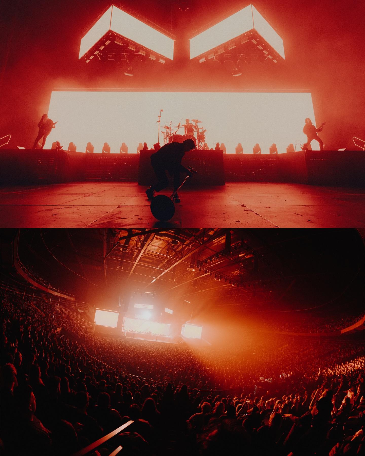 Le public, d’abord intrigué, se laisse rapidement embarquer. L’atmosphère se fait plus légère, presque festive, tout en restant incroyablement fédératrice. BILMURI réussit le pari de capter l’attention d’une salle déjà bien remplie et de préparer idéalement le terrain pour la tête d’affiche. Lorsque BAD OMENS entre enfin en scène, le Zénith bascule dans une autre dimension. La scénographie est tout simplement incroyable : jeux de lumières millimétrés, fumigènes, jets de feu et plusieurs écrans géants enveloppent le public dans une expérience visuelle totale.