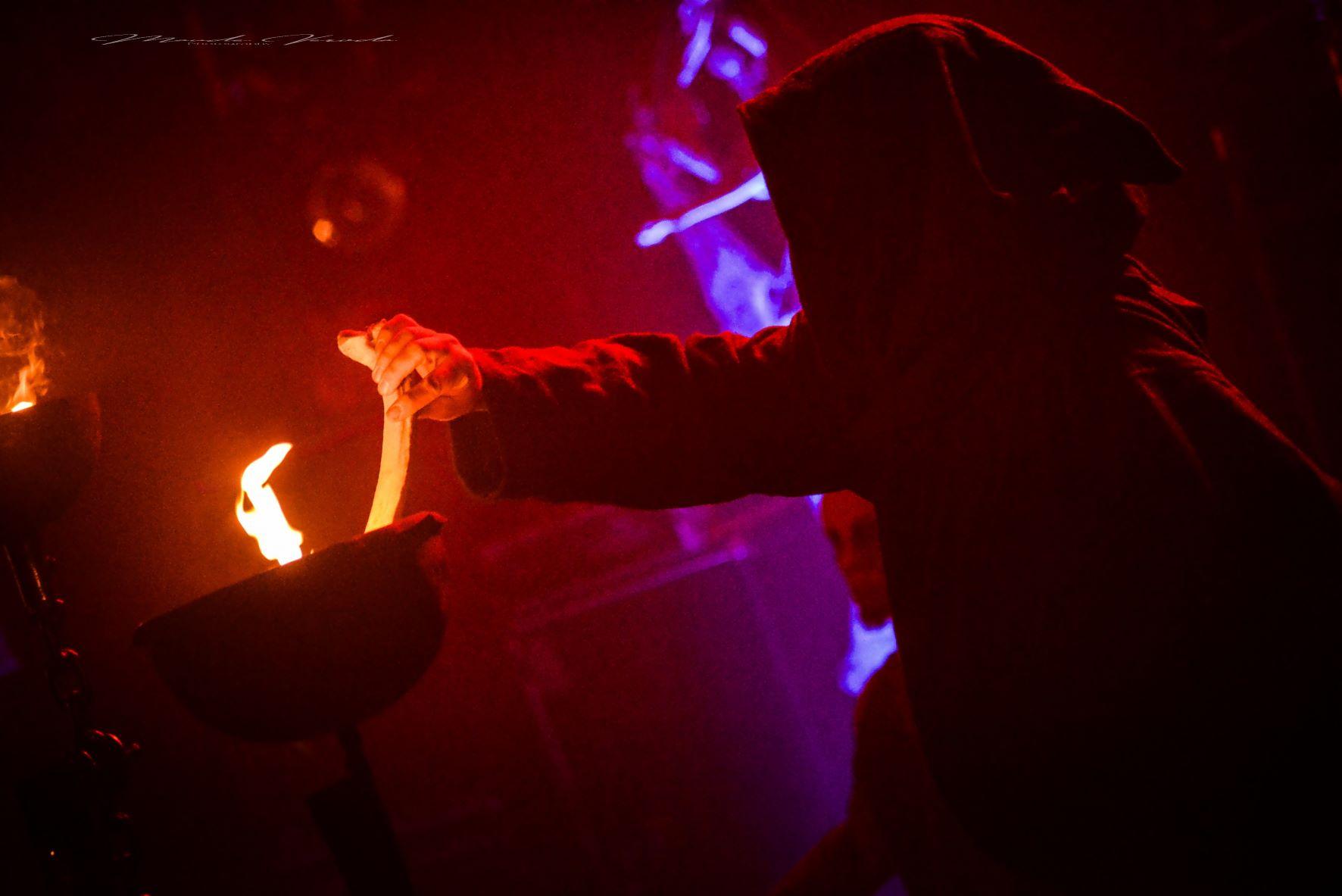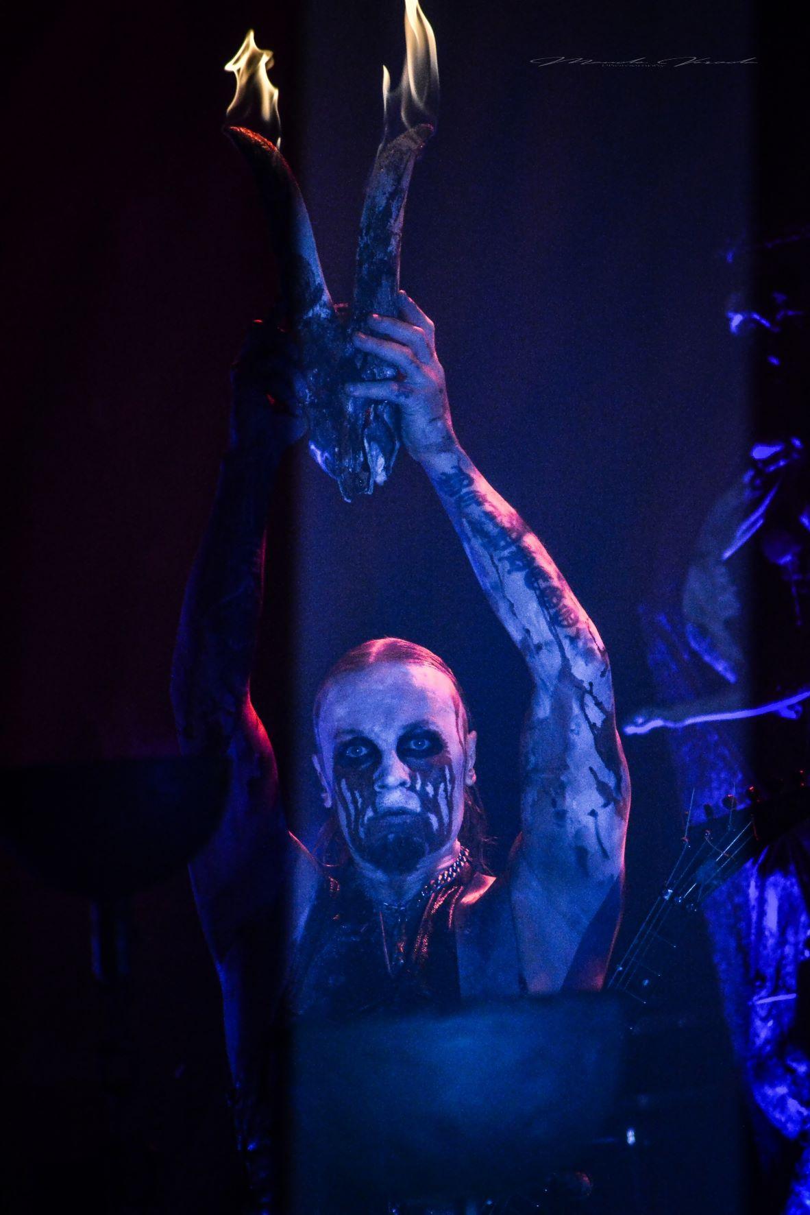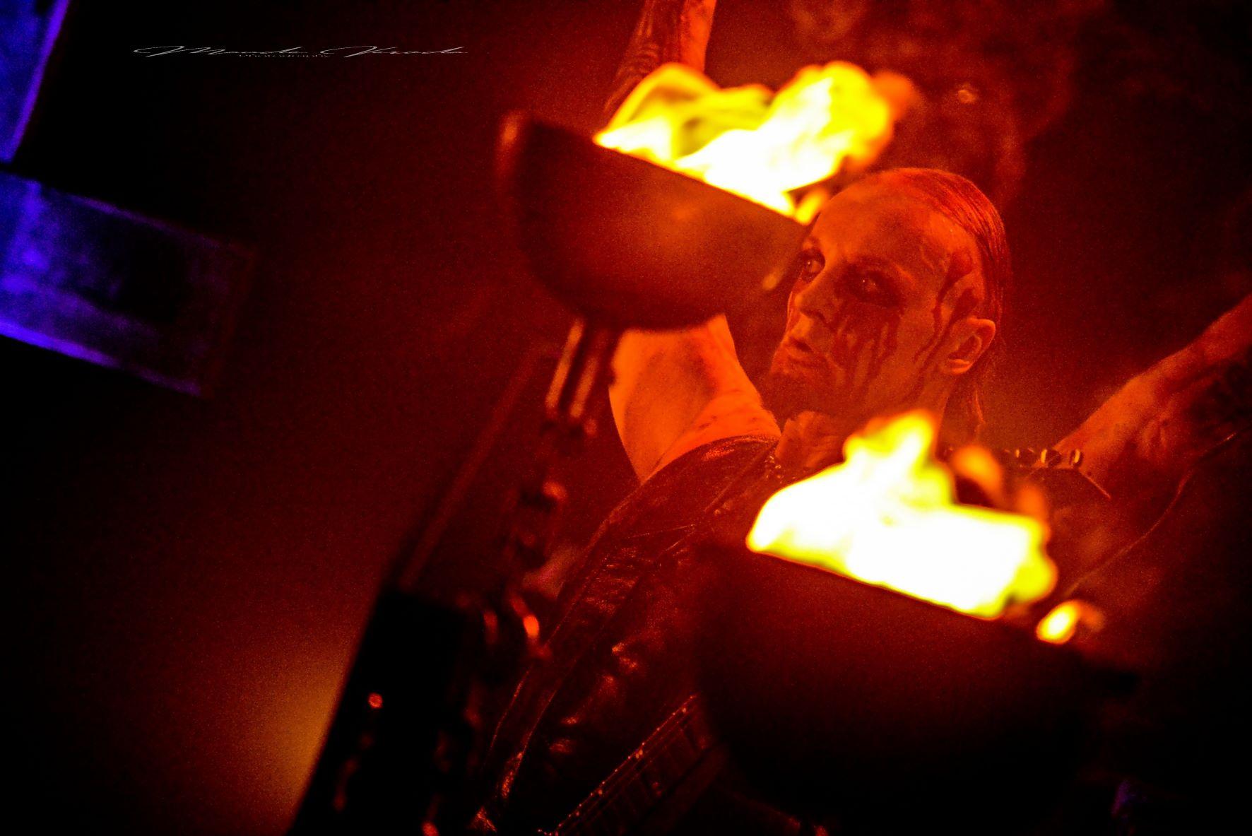 Bientôt des coupes qui ornent la scène s’allumeront pour rajouter à l’ambiance malsaine du set, alors que Serpenth donnera un peu de sa voix gutturale pour accompagner Helmuth dans son chant maléfique, celui-ci qui brandira des cornes enflammées. L’heure de set passe tellement vite qu’on en arrive déjà au morceau final et rien de tel que Totentaz – Danse Macabre pour terminer un show plus qu’endiablé.