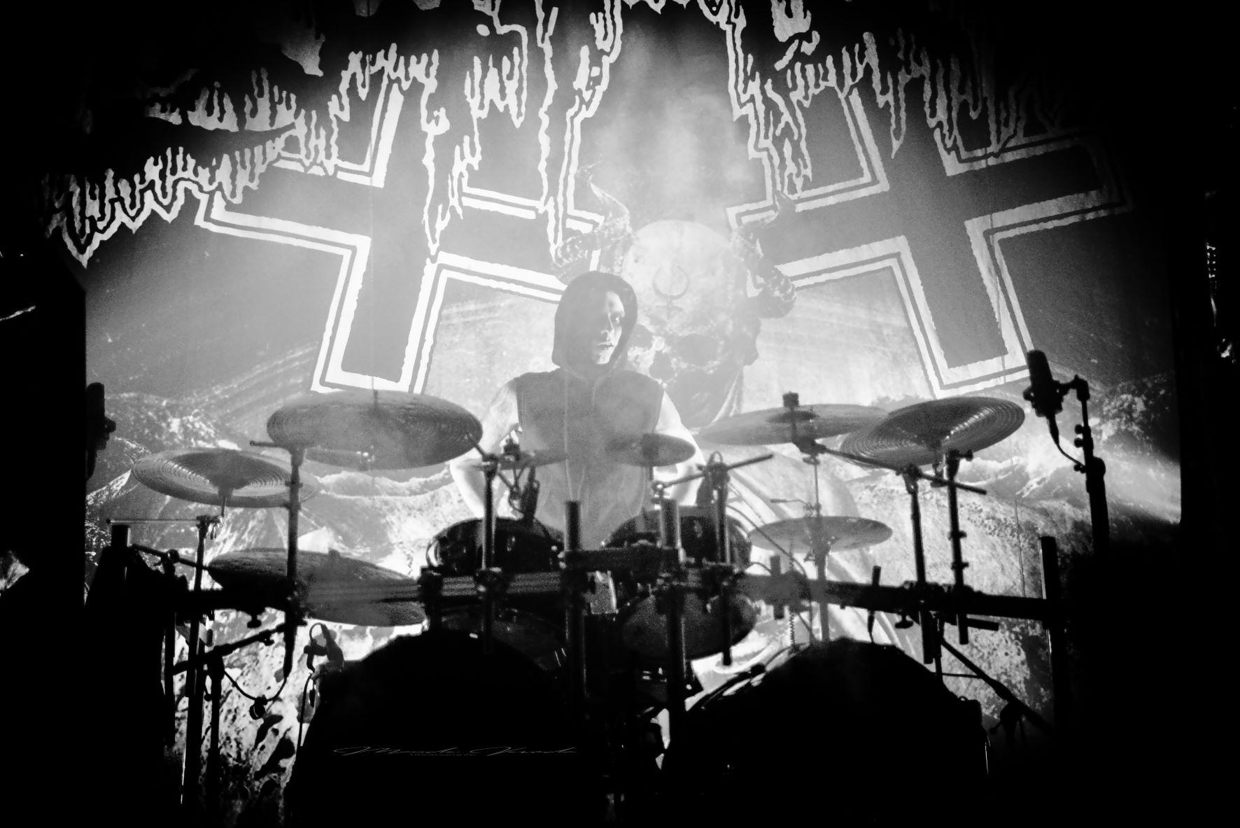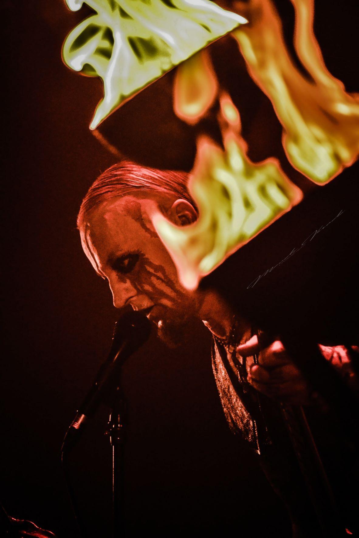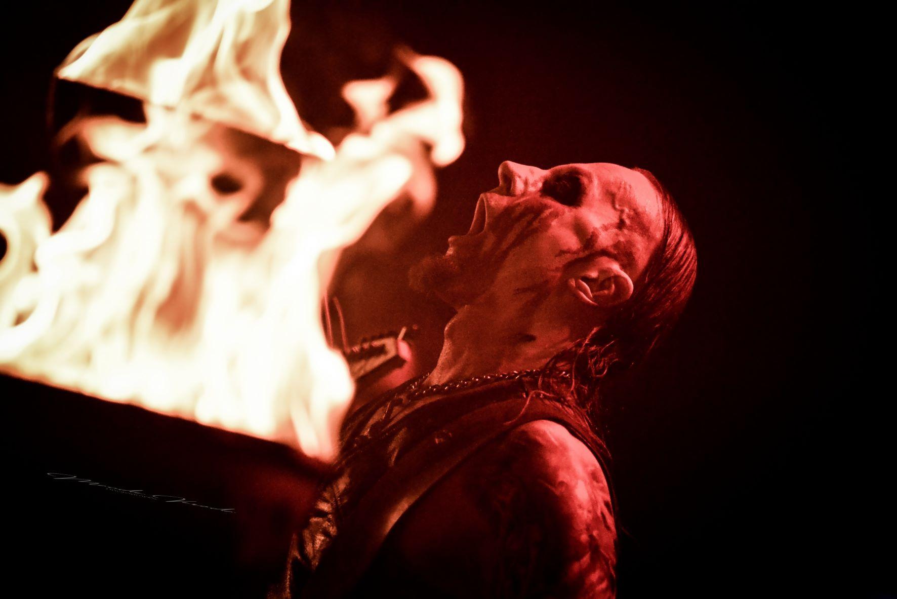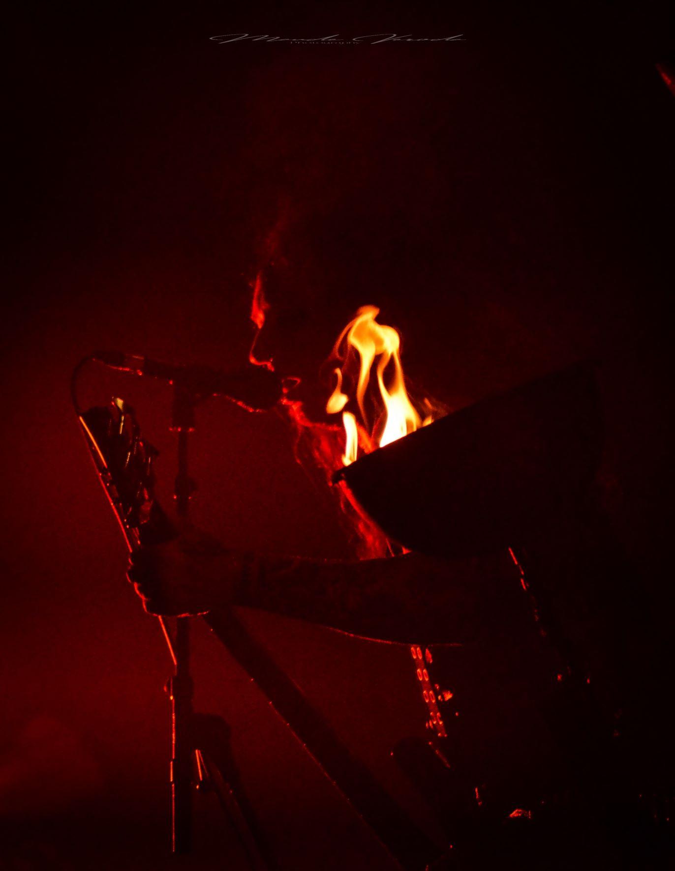 Bientôt des coupes qui ornent la scène s’allumeront pour rajouter à l’ambiance malsaine du set, alors que Serpenth donnera un peu de sa voix gutturale pour accompagner Helmuth dans son chant maléfique, celui-ci qui brandira des cornes enflammées. L’heure de set passe tellement vite qu’on en arrive déjà au morceau final et rien de tel que Totentaz – Danse Macabre pour terminer un show plus qu’endiablé.