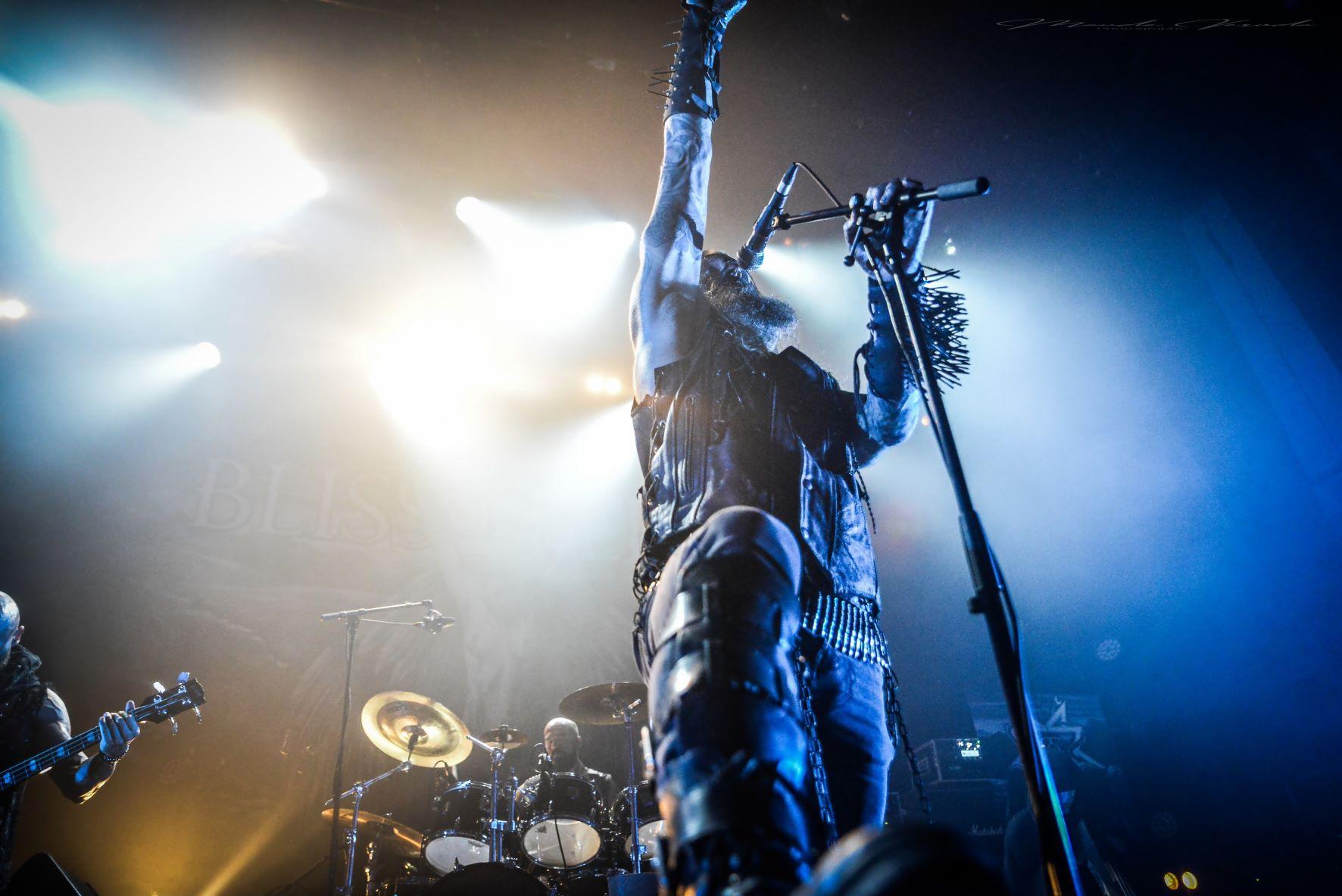 Avec cette formation très locale car originaire de Calais, on peut dire qu’on commence cette journée de festival sans tour de chauffe quand on voit leur scénographie et avec un set ponctués de mises en scènes. Les musiciens se placent sur scène et on peut constater qu’un violoncelliste encapuchonné les accompagnent. Rien que sur l’allure du chanteur Necurat, on peut y voir une influence GORGOROTH, celui-ci étant paré de bracelet à clous, et des vrais. Musicalement, on est plutôt sur un Blackened Death à la BELPHEGOR et les compos sont de qualités. Et cette scénographie n’est pas là pour meubler la prestation, les Calaisiens envoient du très lourd, d’autant plus qu’ils sont également là pour défendre leur dernier album Tyrant, comme si c’était un clin d’œil au festival.