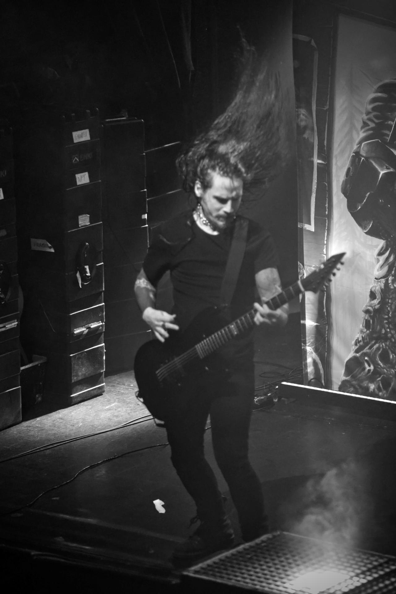 Le public n’a pas le temps de se remettre totalement de la tempête ABORTED qu’il doit déjà repartir au combat avec REVOCATION qui vient remettre une couche. Ash Pearson à la batterie ne déroge pas à sa réputation quand on peut admirer la parfaite maitrise de son instrument. Le trio est tout aussi précis dans les riffs que le growl du chanteur guitariste David Davidson et tout autant que ses solos et ses riffs techniques mêlés à la batterie chirurgicale d’Ash. Dans le pit, c’est l’effervescence, entre slams et pogos, ce qui ravis le trio qui continue de poncer son dernier album en date Netherheaven (2022), notamment avec les titres Diabolical Majesty, Nihilistic Violence ou encore Godforsaken. Mais c’est sur Of Unworldly Origin de l’album The Outer Ones que le combo termine son set 100% tech death.