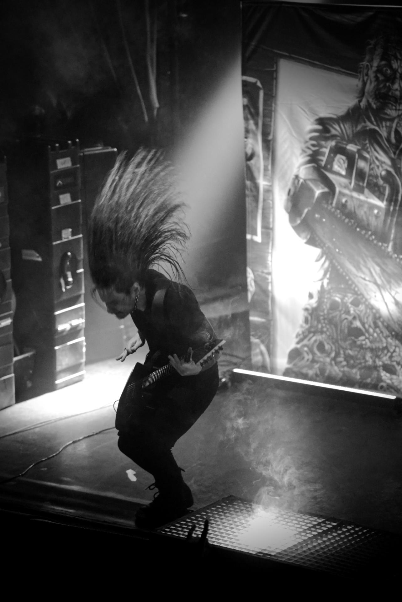 On est parti avec 50 minutes de pur brutal death avec ABORTED que j’ai déjà eu l’occasion de voir dans cette même salle en 2016. Le groupe débarquera sur scène sur une intro façon film d’horreur à la Saw. Pas mal de changement depuis quelques années mais s’il y a bien une chose qui n’a pas terni avec le temps, c’est bien le pig squeal du chanteur Sven De Caluwé si reconnaissable. Avant de défendre son nouvel opus Vault Of Horrors et de nous plonger dans les caveaux de l’horreur, ABORTED commence avec deux fondamentaux de sa discographie avec Retrogore et Cadaverous Banquet, de quoi provoquer les premiers circles pits de la soirée.