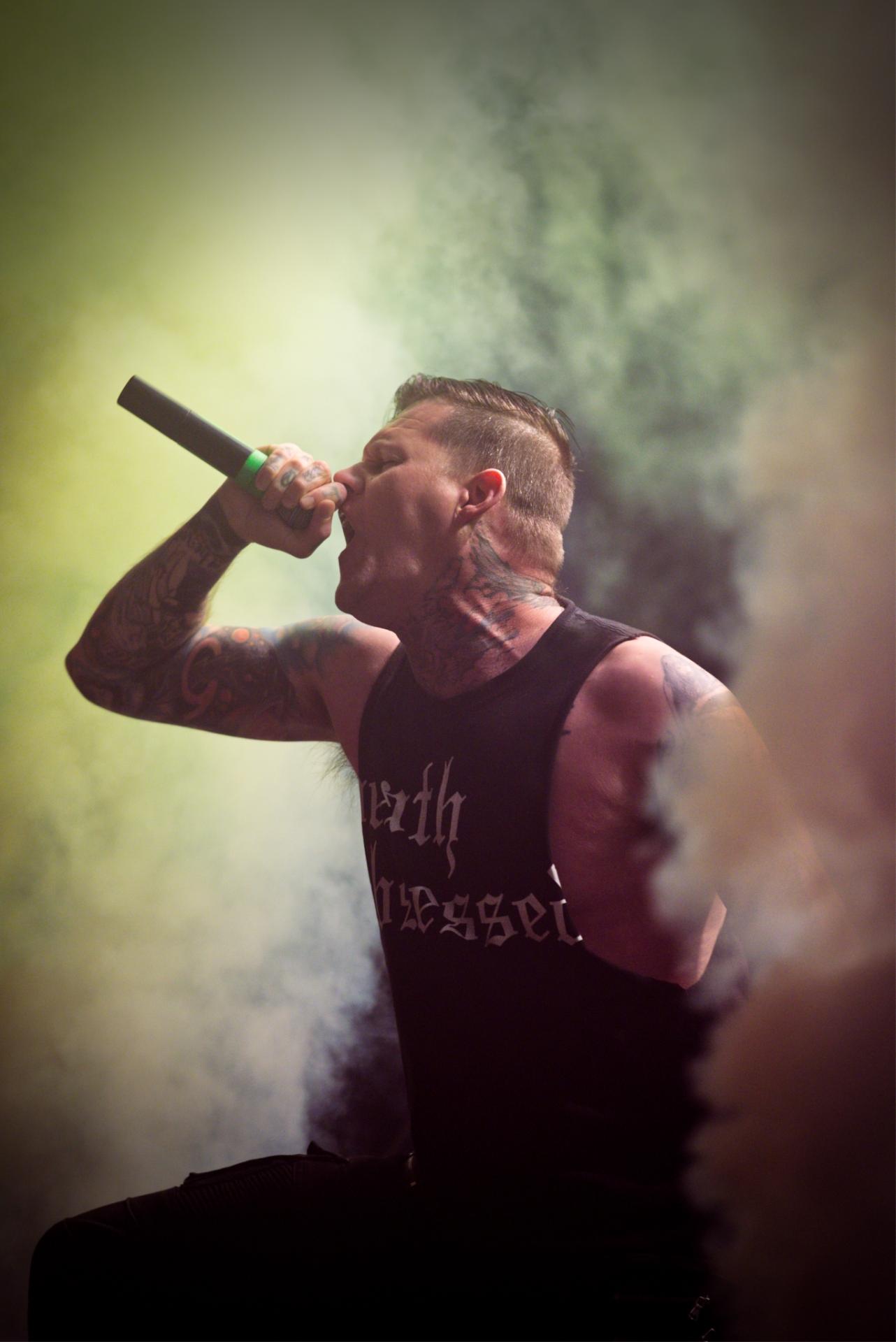 Tout au long du set, Scott n’aura de cesse de redemander des circles pits, comme il l’a toujours fait et il y a parfois de quoi avoir le tournis. C’est une véritable tornade qui s’abat dans le pit de la Machine, un tourbillon alimenté par le rouleau compresseur des riffs de guitare incisifs de Cory Arford et Neal Tiemann, la basse grondante de Fred Calderon et les blasts surpuissants de la batterie de Shawn Cameron. Et c’est sur deux titres cultissimes que le combo Californien termine son set, Hatred & Slaugther et Slit Wrist Saviour avec encore bon nombre de circle pits.