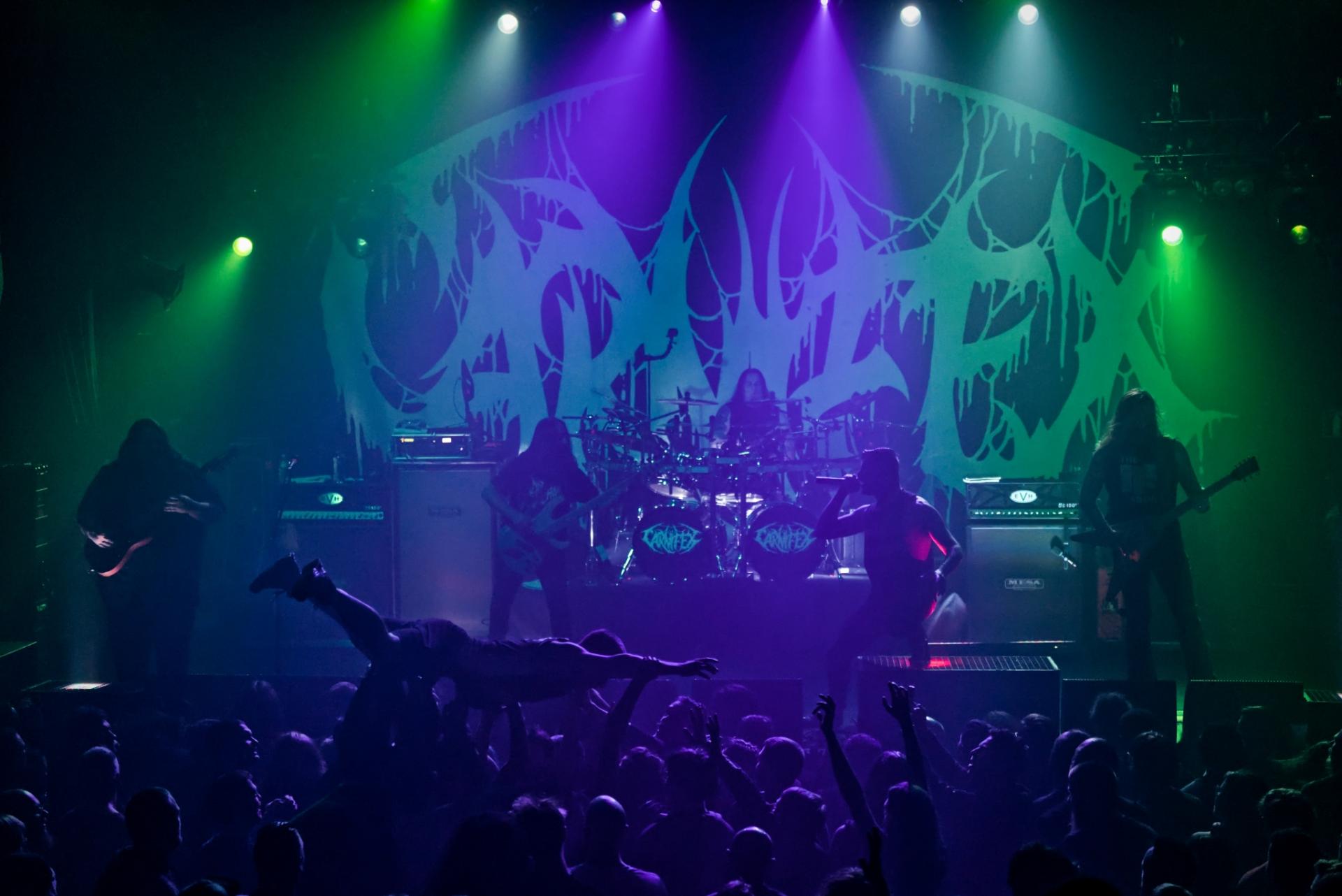 C’est enfin au tour de CARNIFEX de monter sur scène pour clore la soirée. Le groupe arrive avec un Scott Lewis en grande forme qui demande un premier circle pit sur Dark Days. CARNIFEX nous envoi toute la puissance de son deathcore dans les oreilles avec bien entendu des morceaux du dernier album Necromanteum, de son titre éponyme à Infinite Night Terror en passant par Torn In Two et Heaven and Hell All at Once. Du reste, on ressort les classiques avec Hell Chose Me que l’assistance reprendra en chœurs, Lie to My Face avec l’habituel "What The F*ck !" en milieu de chanson, ou encore Dark Heart Ceremony et Drown Me In Blood.