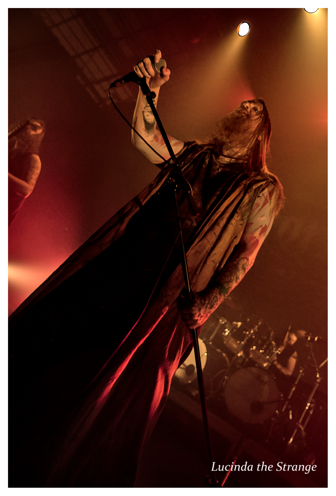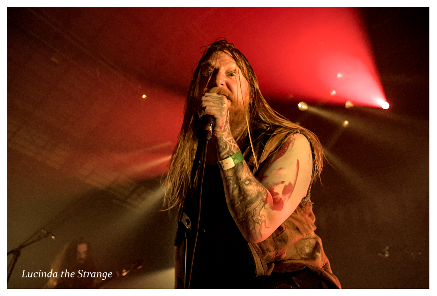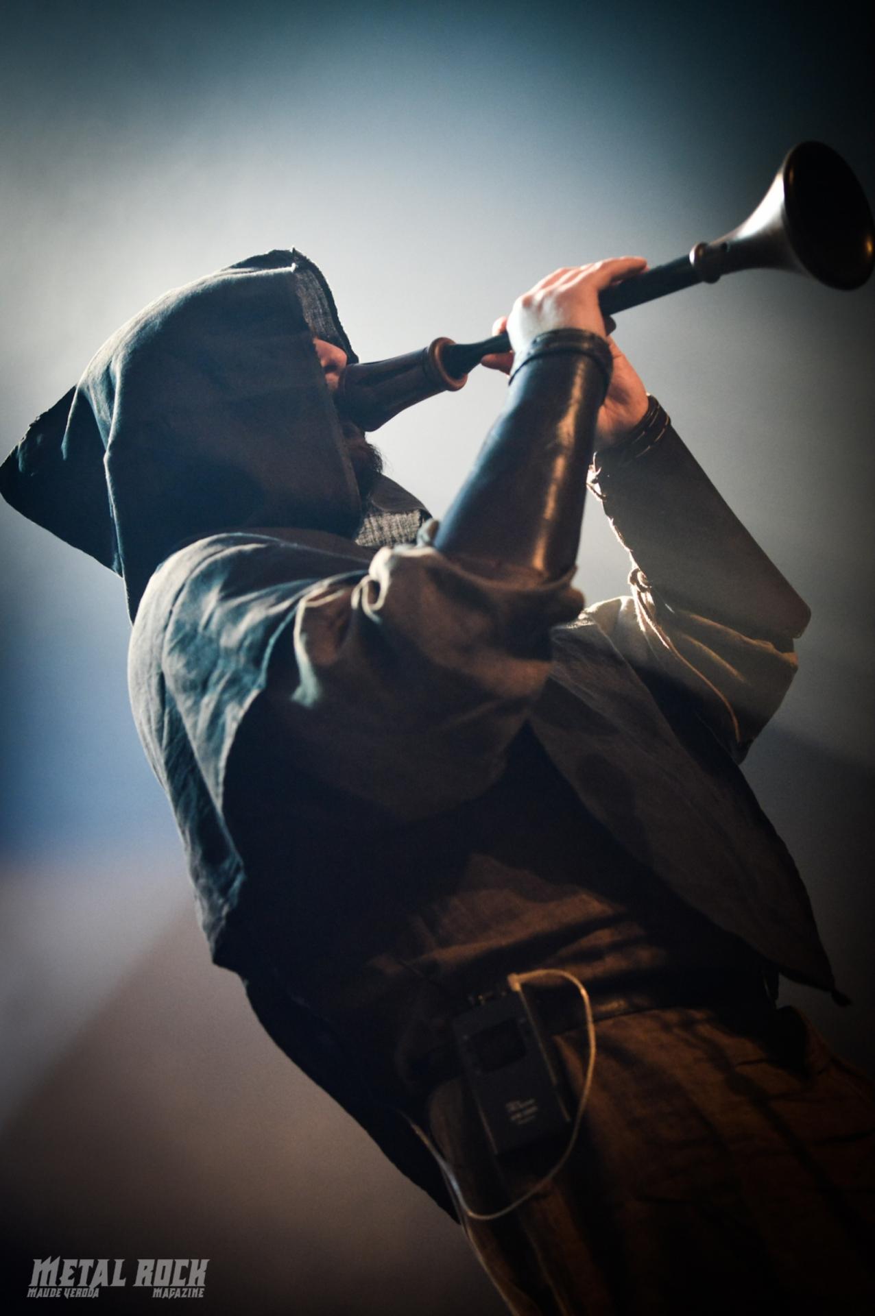 En ouverture de la Halle, on retrouve un groupe Danois du nom de VANSIND. Comme souvent au Cernunnos, l’imagerie de la mythologie Nordique est toujours bien représentée. Sur scène, formation assez quasiment classique, guitares, basse, batterie, mais nous aurons droit à un chanteur et une chanteuse, ainsi qu’un claviériste qui jouera également de la flûte irlandaise et de la cornemuse. La growl caverneux du chanteur Joachim Asmussen dit J. Asgaard est contrebalancé par la voix presque lyrique de la chanteuse Line Burglin. Avec des paroles en Danois, des riffs typiques du genre et la grosse touche folk apportée par les quelques instruments traditionnels utilisés, VANSIND nous a paru très convainquant avec une prestation remarquable.