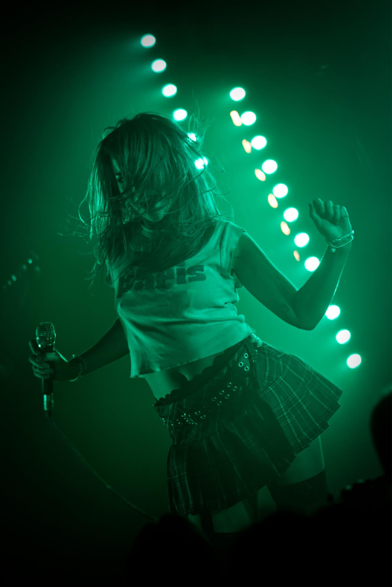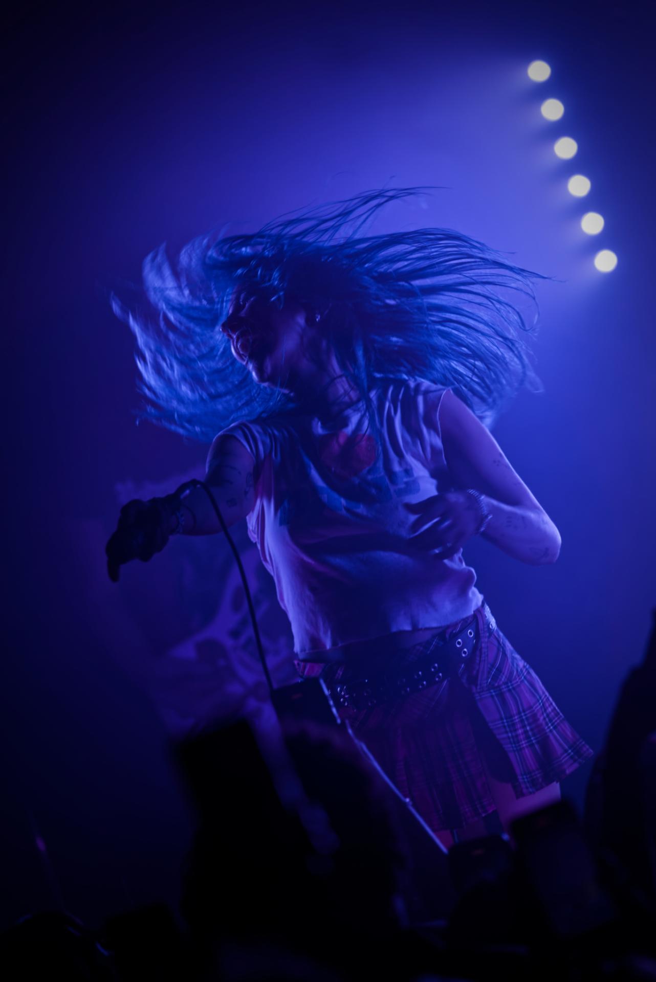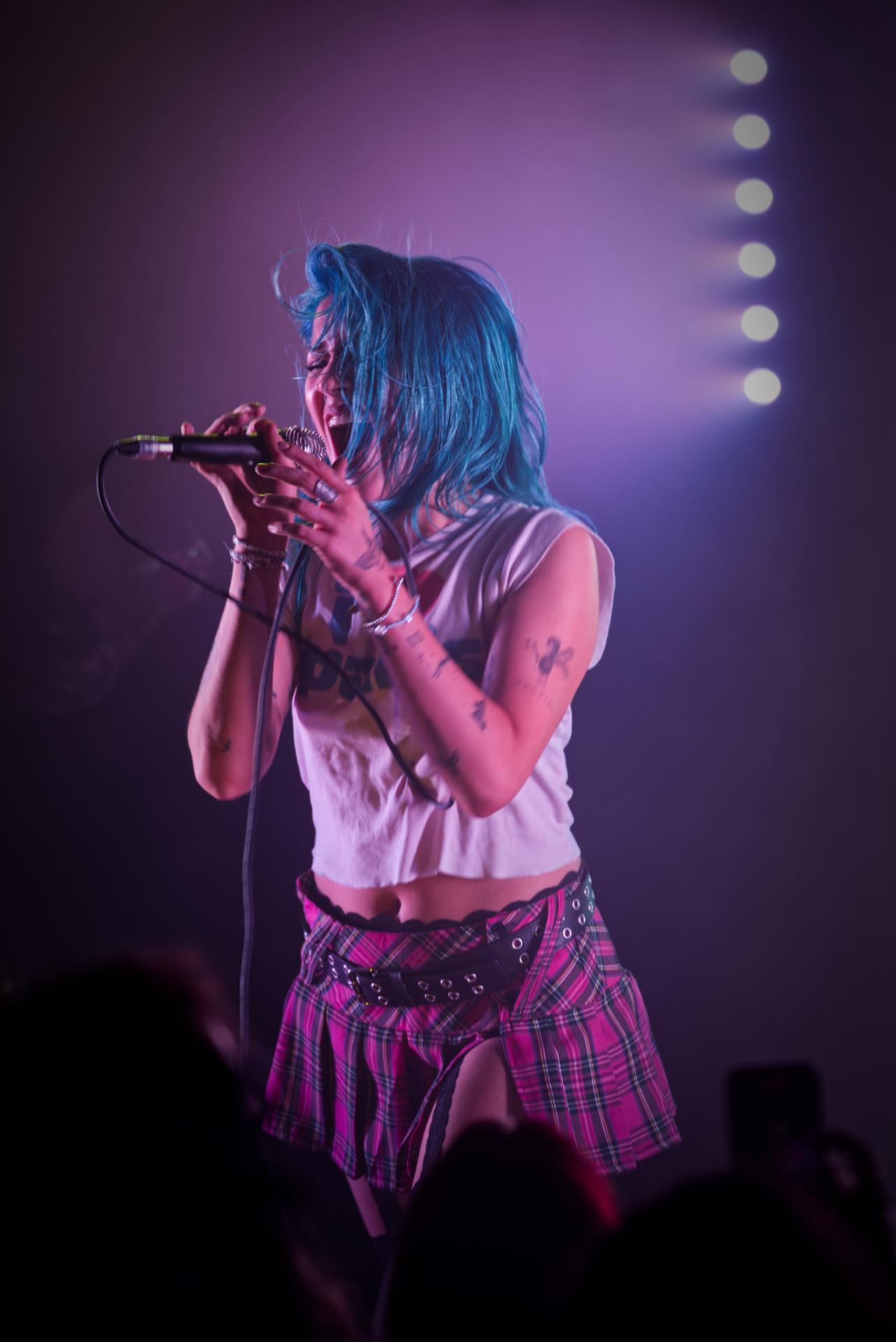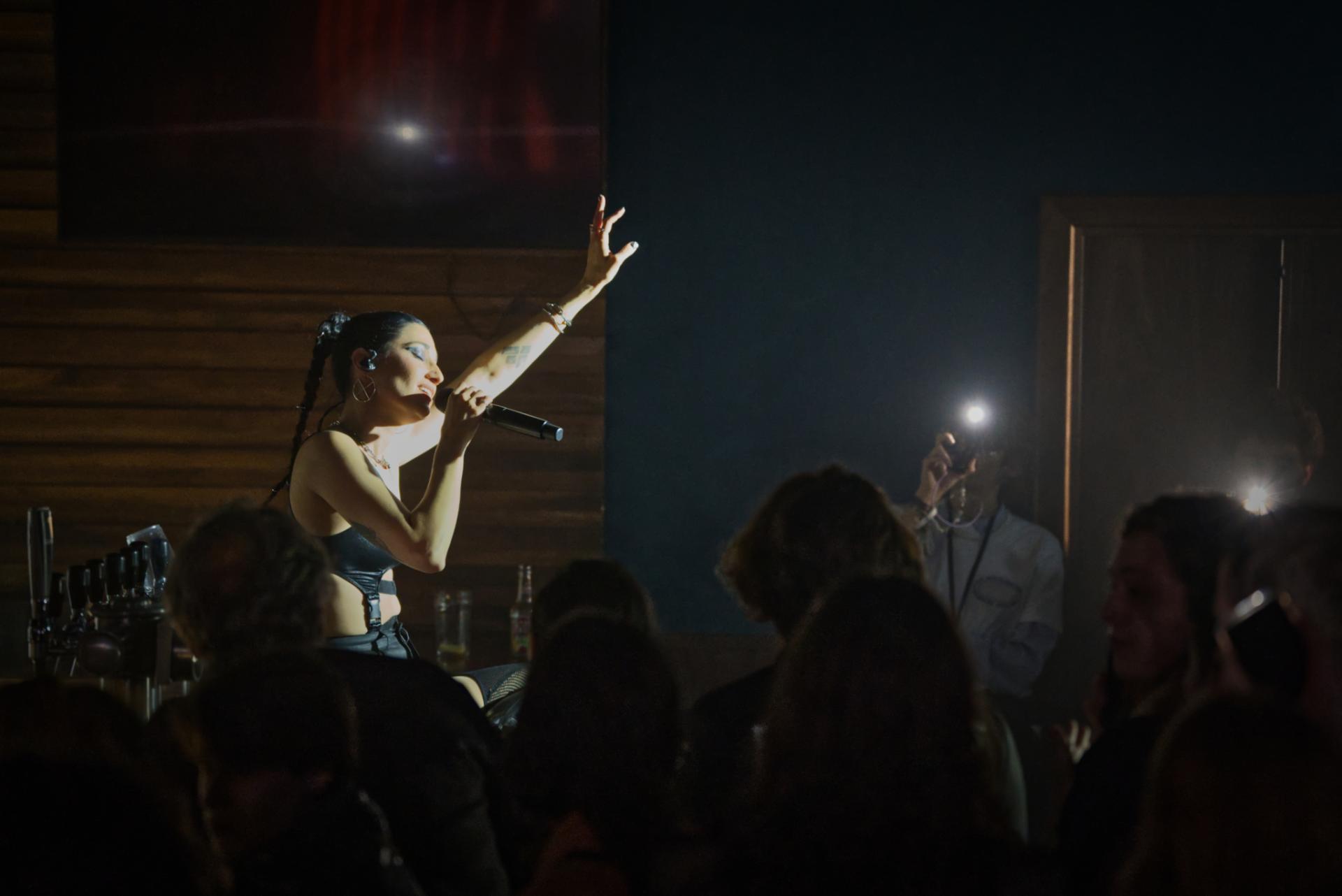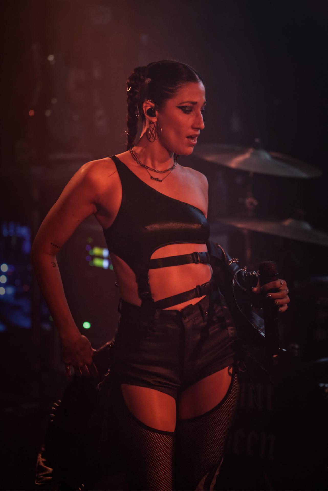 Emi Jeen a ouvert la soirée avec une présence scénique remarquable, allant même jusqu'à s'asseoir sur le bar pour créer une proximité unique avec le public. Sa performance dynamique de dark pop, notamment avec des moments acoustiques en plein milieu de la salle, a captivé et préparé parfaitement le terrain pour la suite.