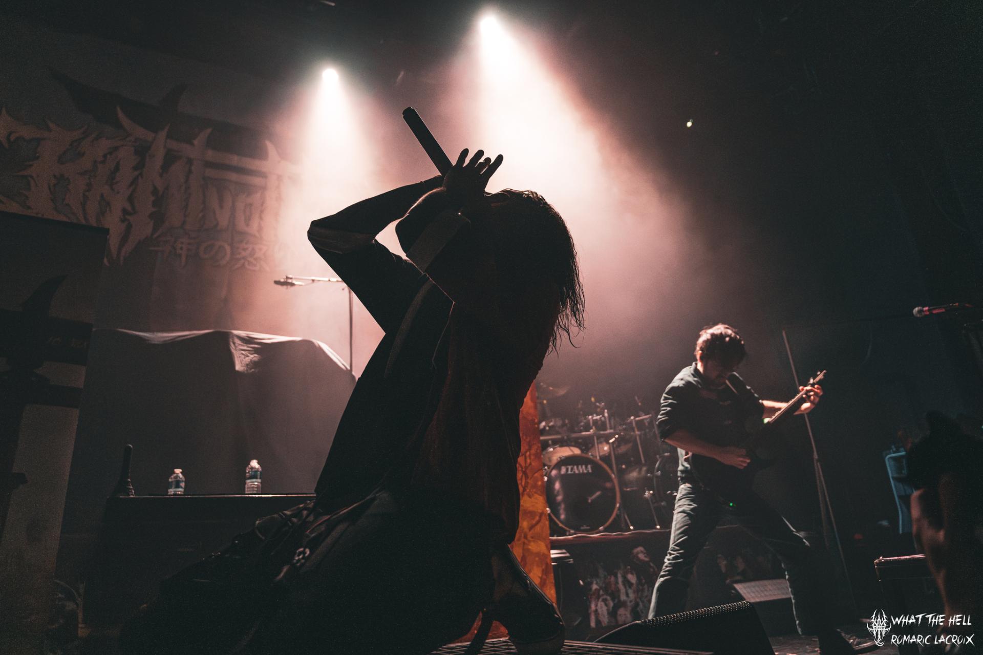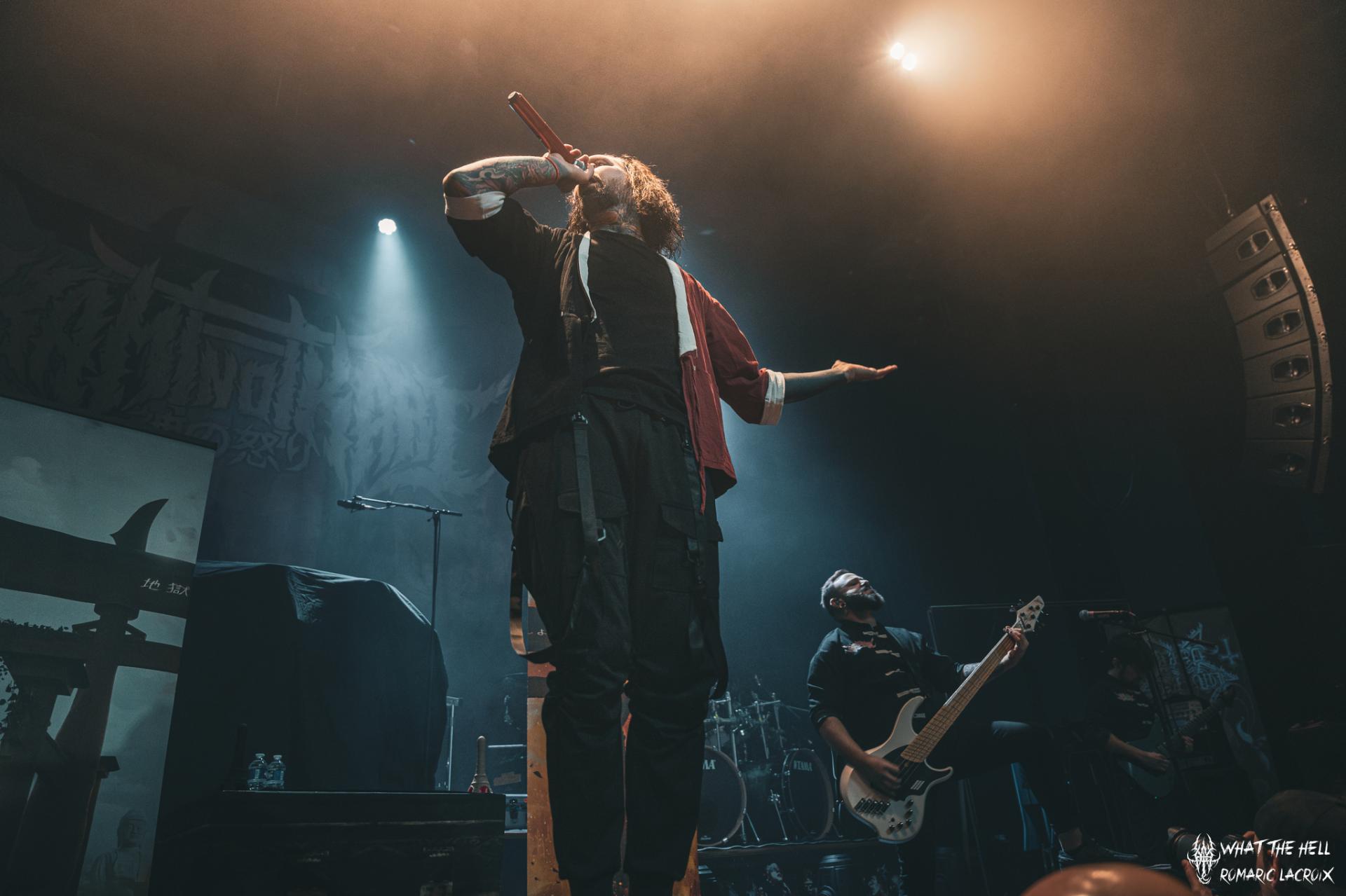 C'est un début de soirée explosif avec les français de KAMI NO IKARI et leur deathcore brutal. Le groupe est solide et chauffe la salle de manière super intense.
