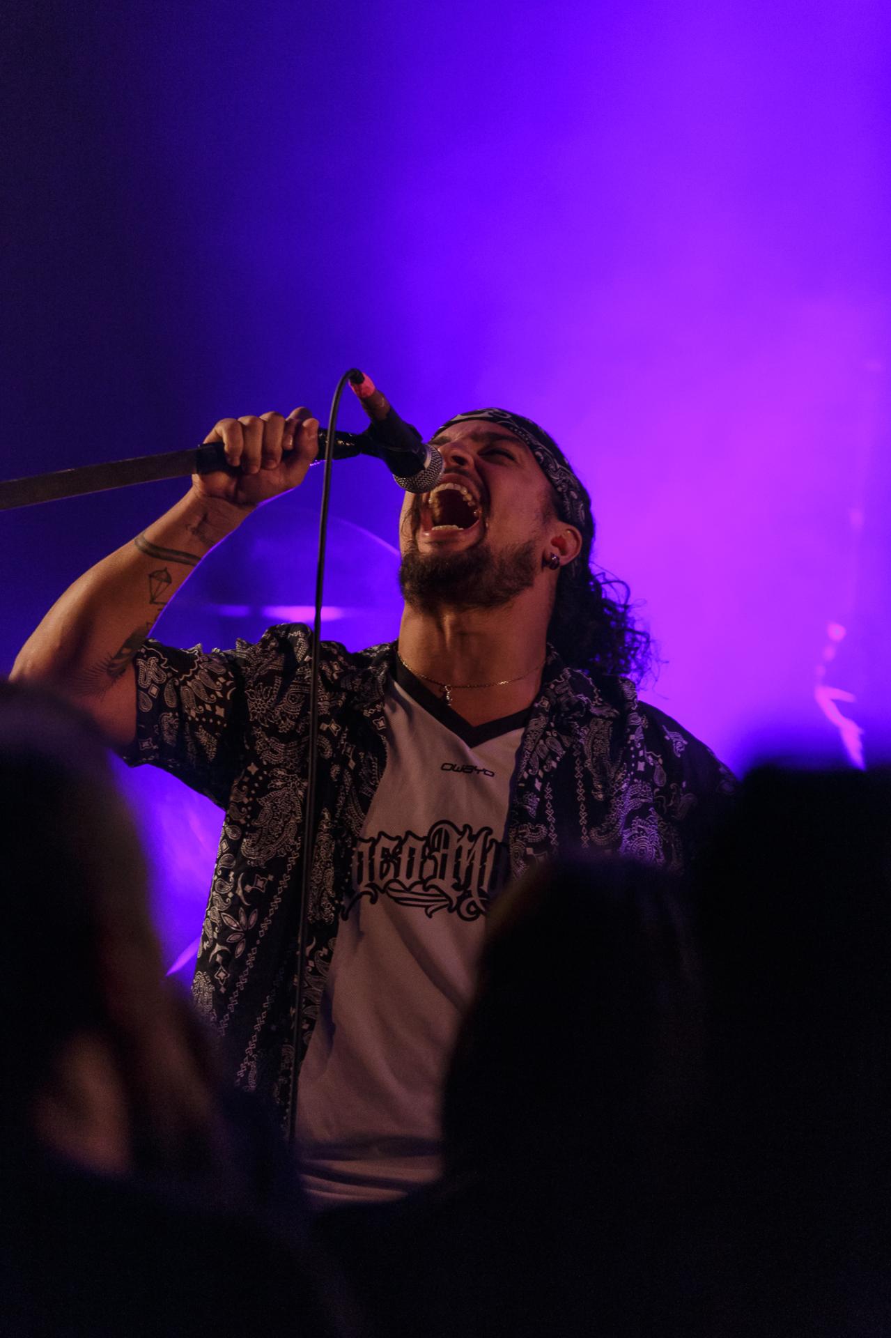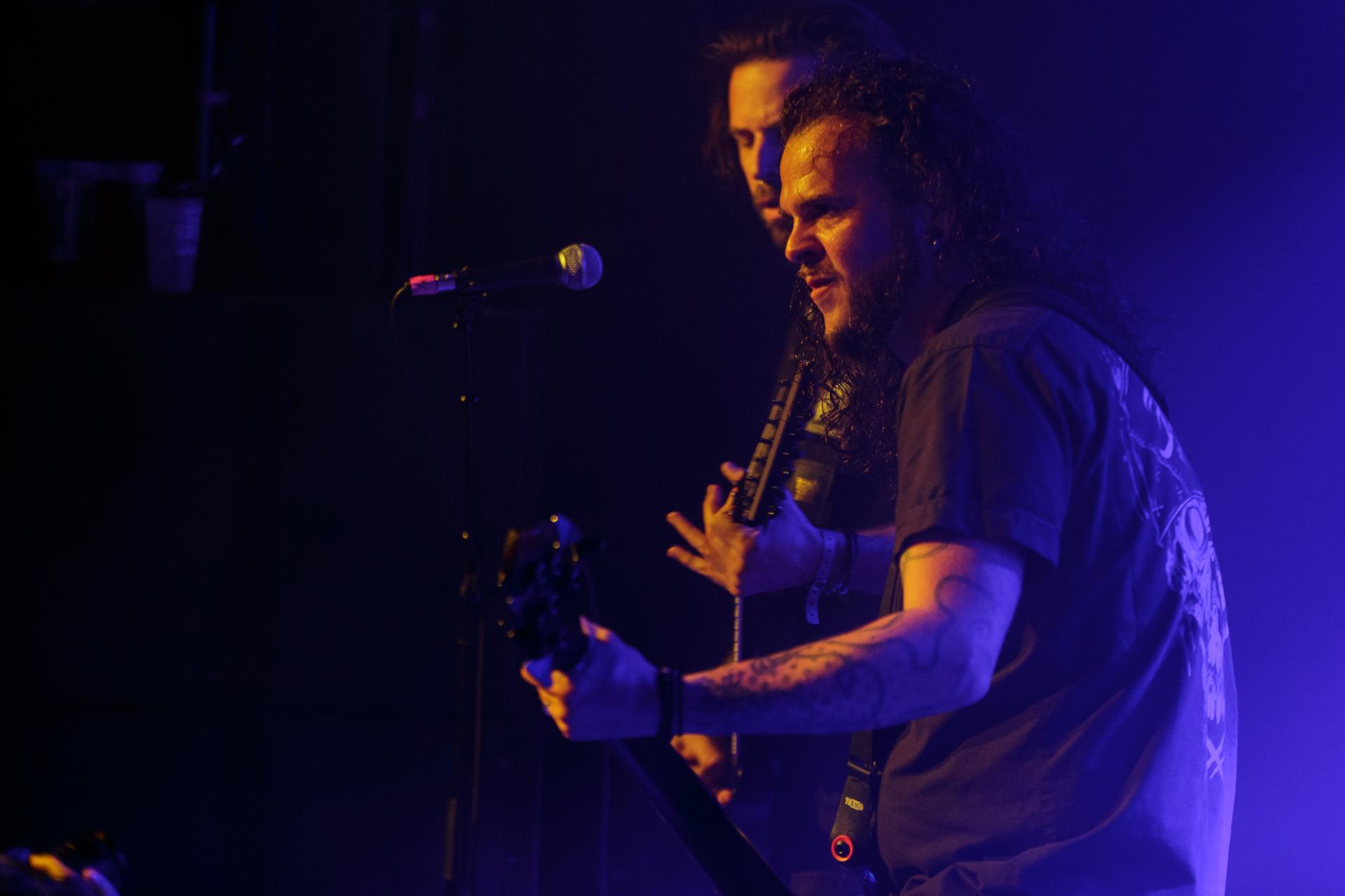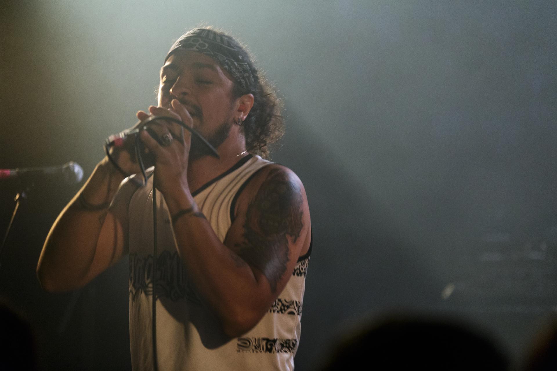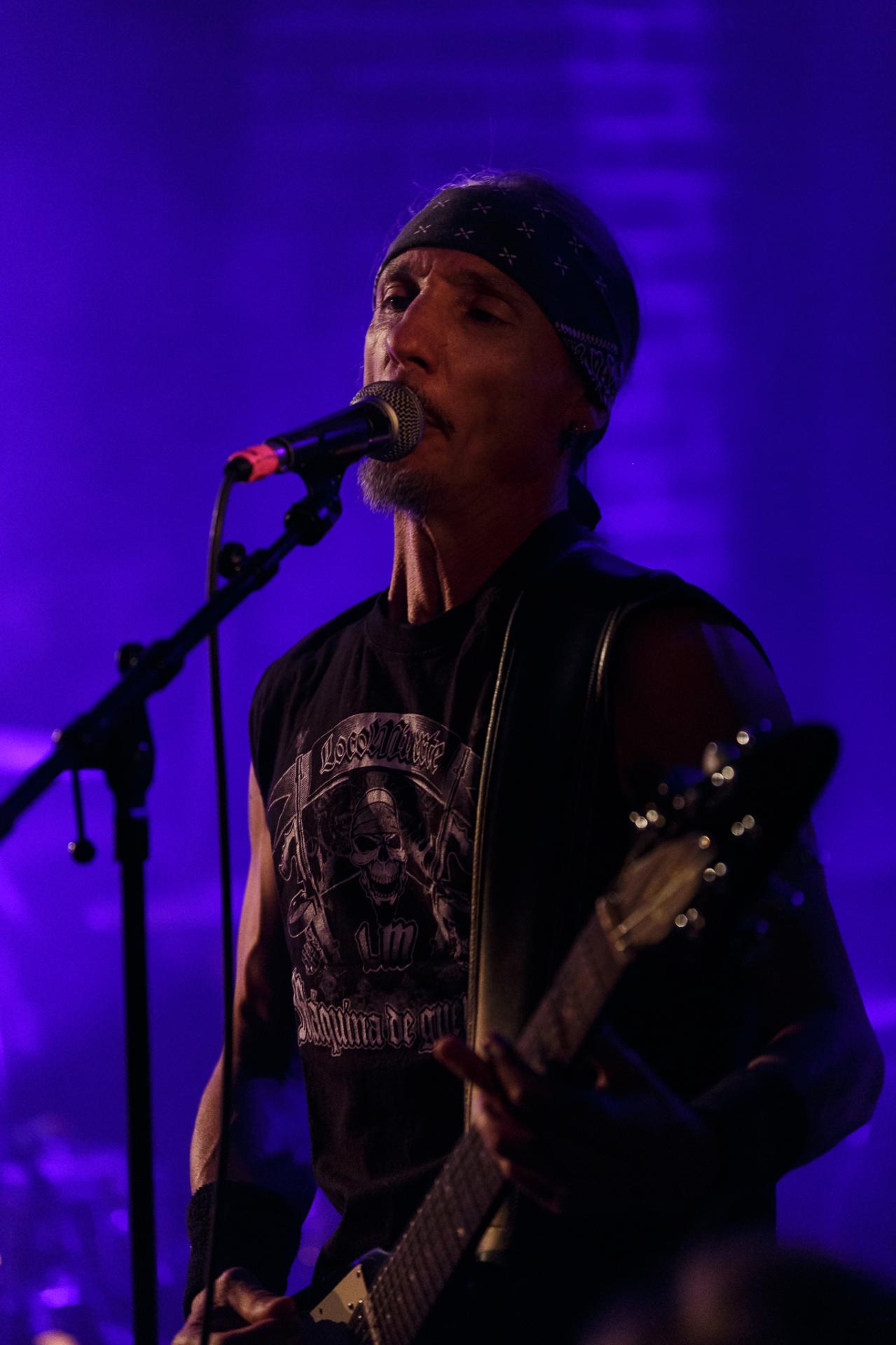 On commence avec une véritable tornade tellement ce groupe déborde d’énergie sur scène, les plus mexicains des groupes français, LOCOMUERTE dont le style est décrit par eux-mêmes et le Crossover Thrash Punk Chicanos. En termes de prestation scénique, ça rappelle beaucoup les Espagnols de CRISIX, le côté punk hardcore en plus. Mais l’influence qui ressort le plus c’est forcément SUICIDAL TENDENCIES. Ceci-dit, le chant en espagnol apporte quelque chose de différent ce qui n’est pas négligeable et niveau ambiance, ça donne envie de se défouler, sans pour autant danser la cucaracha mais pas loin. Une partie la fanbase du groupe est présente ce soir, et on peut voir que LOCOMUERTE rassemble et fédère sa communauté, notamment sur le titre Barrio qui sera repris par l’assistance à pleins poumons. Malgré une répétitivité qui peut peut-être lasser, LOCOMUERTE est une véritable centrale électrique de quoi survolter le public, c’est donc une bonne entame.