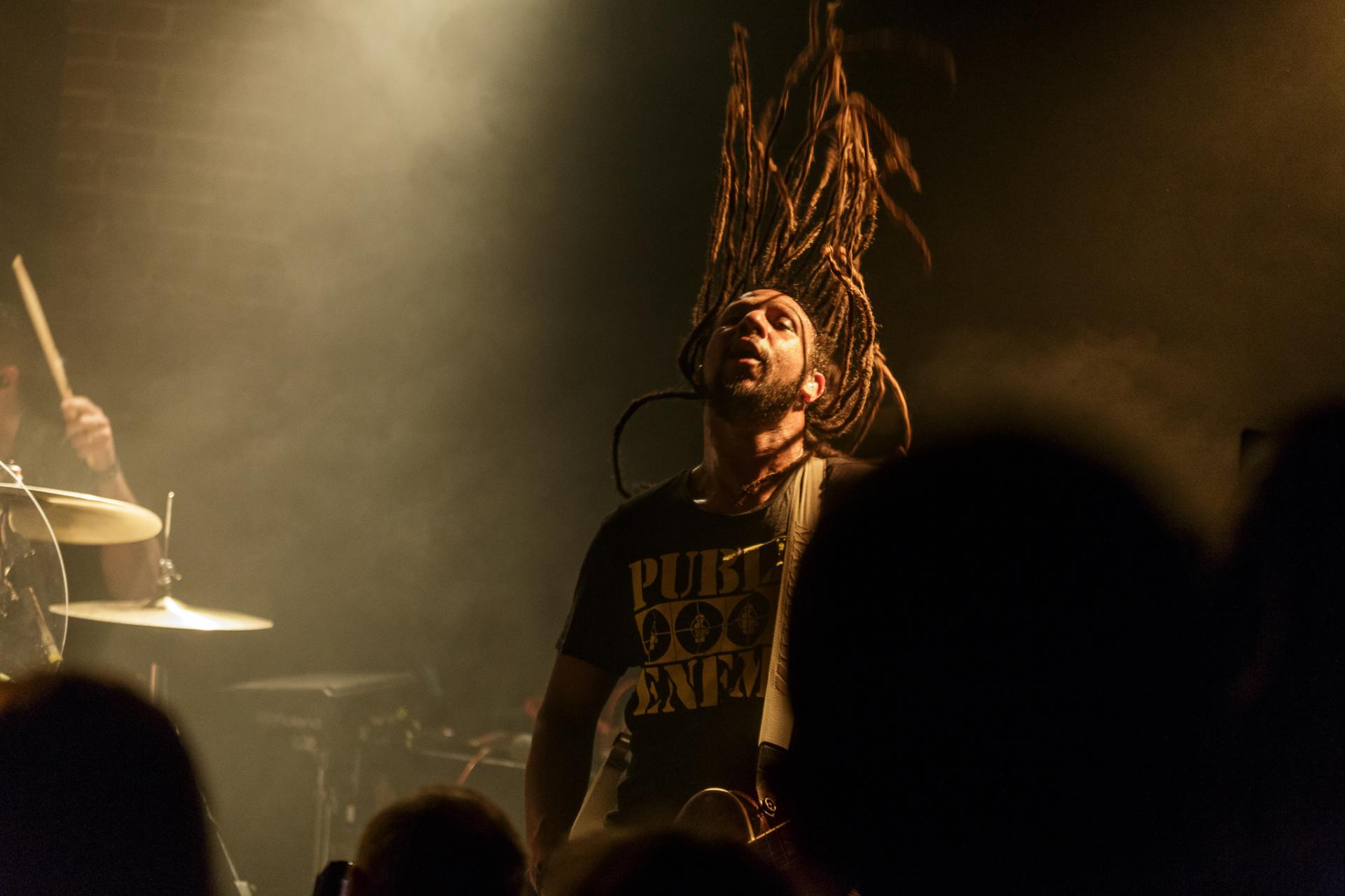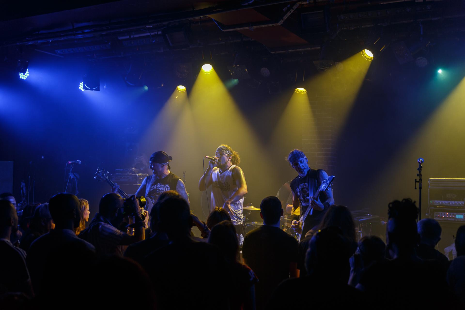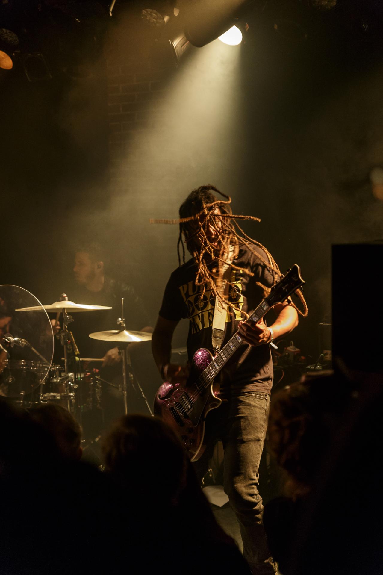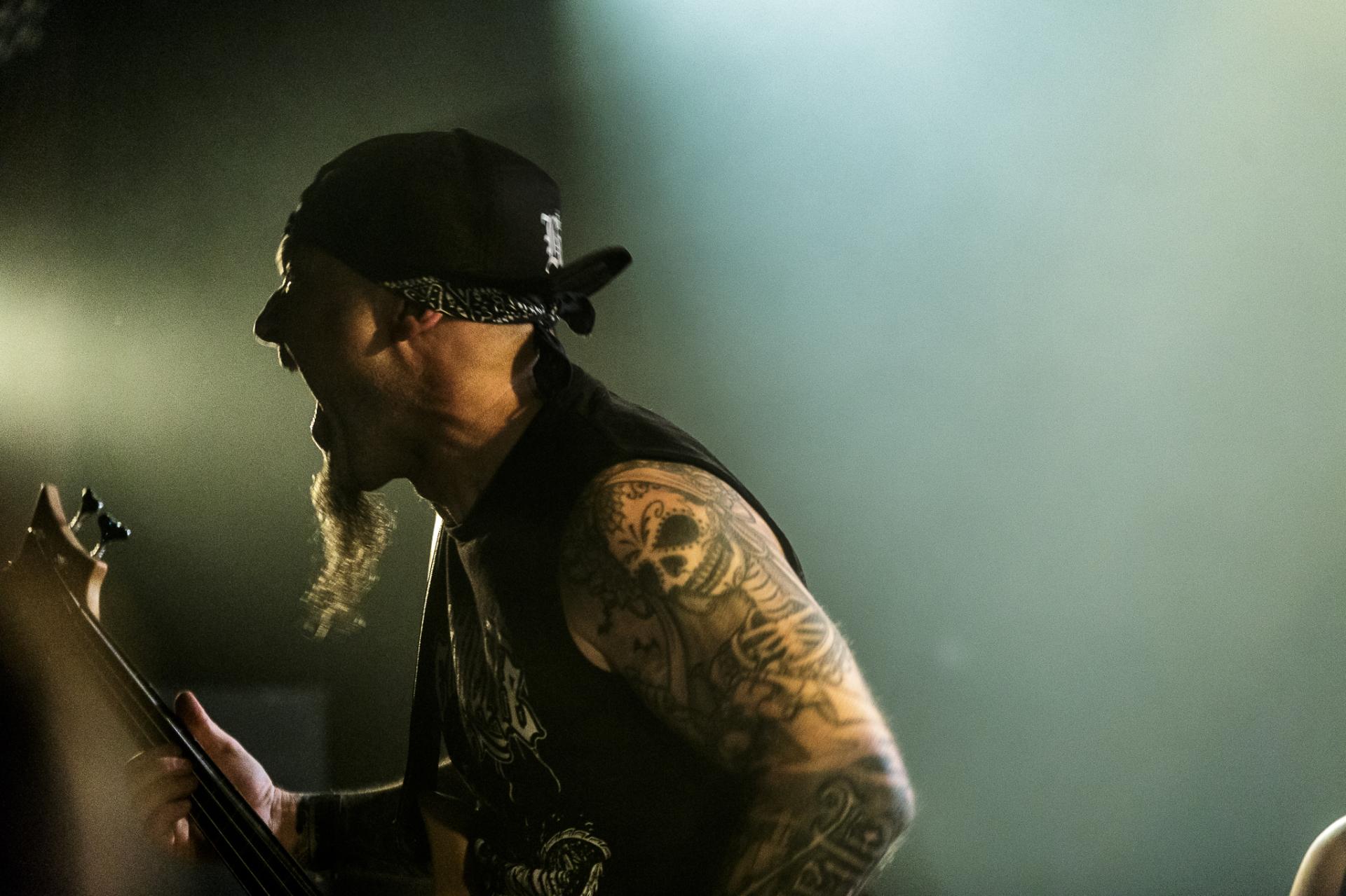 On commence avec une véritable tornade tellement ce groupe déborde d’énergie sur scène, les plus mexicains des groupes français, LOCOMUERTE dont le style est décrit par eux-mêmes et le Crossover Thrash Punk Chicanos. En termes de prestation scénique, ça rappelle beaucoup les Espagnols de CRISIX, le côté punk hardcore en plus. Mais l’influence qui ressort le plus c’est forcément SUICIDAL TENDENCIES. Ceci-dit, le chant en espagnol apporte quelque chose de différent ce qui n’est pas négligeable et niveau ambiance, ça donne envie de se défouler, sans pour autant danser la cucaracha mais pas loin. Une partie la fanbase du groupe est présente ce soir, et on peut voir que LOCOMUERTE rassemble et fédère sa communauté, notamment sur le titre Barrio qui sera repris par l’assistance à pleins poumons. Malgré une répétitivité qui peut peut-être lasser, LOCOMUERTE est une véritable centrale électrique de quoi survolter le public, c’est donc une bonne entame.