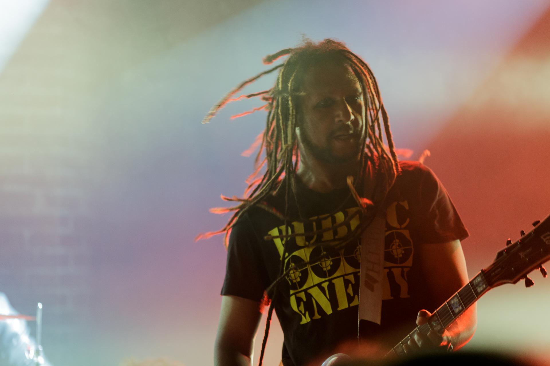 Et c’est parti pour le show des DROPDEAD CHAOS et c’est Boris derrière ses futs qui lance le premier titre Underneath The Sound, éponyme du premier album suivi par la voix très groovy de Renato qui donnera la réplique à Déhà qui rappera de son côté. On s’aperçoit vite qu’il y a une complémentarité entre les deux et qui rappelle celle entre Chester Bennington (paix à son âme) et Mike Shinoda dans LINKIN PARK d’autant plus que les styles des deux groupes sont similaires mais DROPDEAD CHAOS tire un peu plus sur SLIPKNOT orchestralement parlant. Et on reconnait bien le style de jeu de Nils Courbaron à la guitare avec les lignes de basses bien présentes de Jacou (BLACK BOMB A). C’est une setlist de 12 titres qui nous attend, dont l’entièreté de l’album, c’est bel et bien une release party !