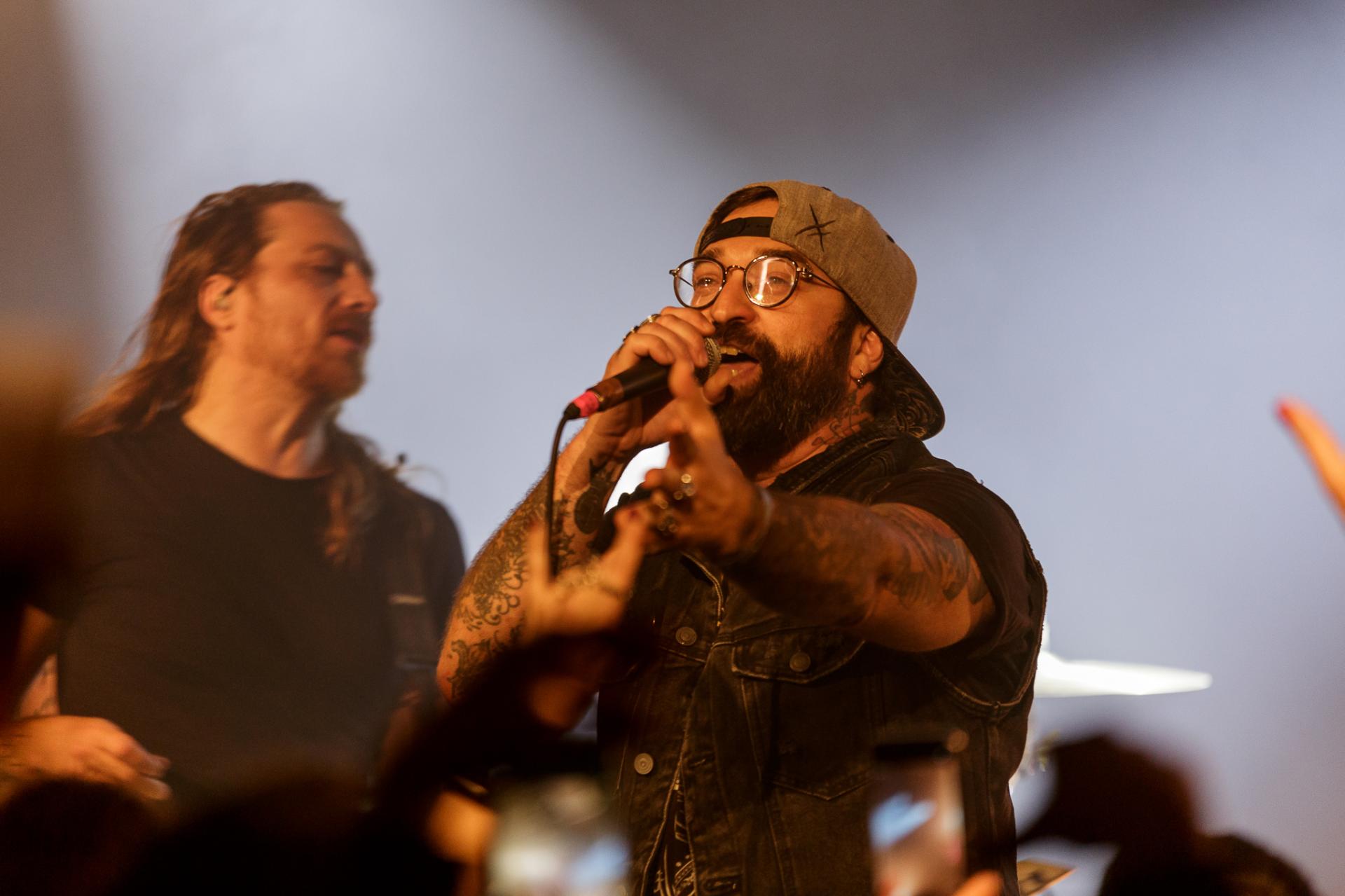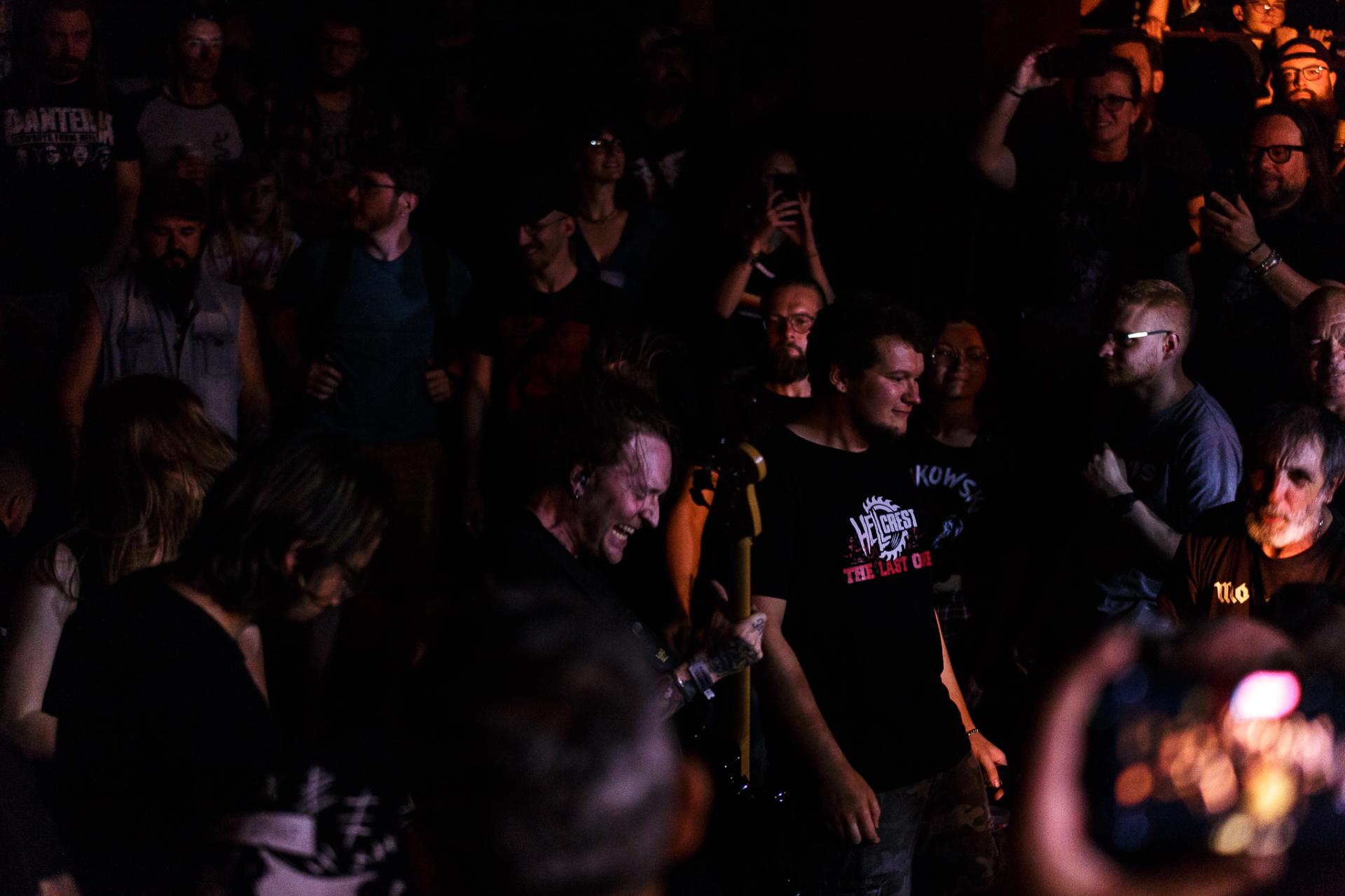 Evidemment, ce show se joue sous le signe de l’hommage à Julien notamment sur Hearing Voices sur laquelle leur tech prêtera sa voix à Julien, ainsi que sur Brothers For Ever qui prend tout son sens ce soir. Et parmi les titres phares du groupe tels que Mysanthropia et Hazardous Creatures, BUKOWSKI défendra son album éponyme sorti en 2022, même si c’est qu’avec deux titres à savoir Crossroads et Vox Populi, c’est toujours ça de pris. Le concert battra son plein lorsque Julien et Max descendront dans le pit pour une communion avec le public. Après ce petit tour, le set approche de la fin et se terminera sur My Name is Kozanowski.