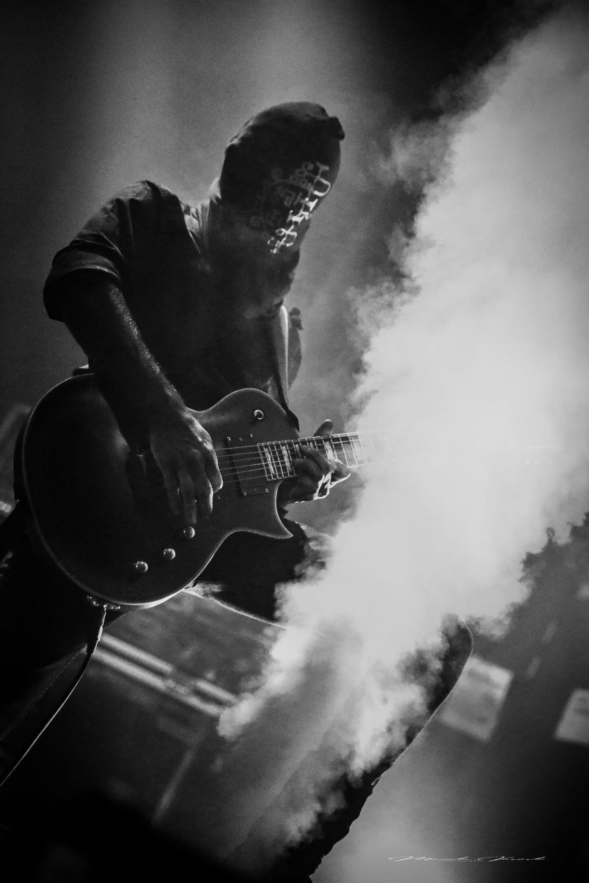 Toujours masqué, entretenant le mystère sur leur identité, à part pour le chanteur qui casse le mythe en jouant à visage découvert dans son autre projet OAK, qu’on se le dise, ce dernier balance à tout rompre un "Tyrant Festival !!" avant d’arriver sur scène sur l’intro de Conspiranoia, précédé par les autres membres. Toujours dans une gestuelle d’extraterrestre, il montre toujours aussi expressif avec ses bras et il jouera beaucoup avec son pied de micro, tandis que du CO2 sera projeté au bon moment. Le morceau Salve est excellent en live, c’est une véritable machine à blast côté batterie. L’intro de Deluge fait écho à celle de Conspiranoia avec un style de riff qui semble être la signature du groupe. Les musiciens donnent beaucoup d’énergie, de quoi provoquer quelques pogos.