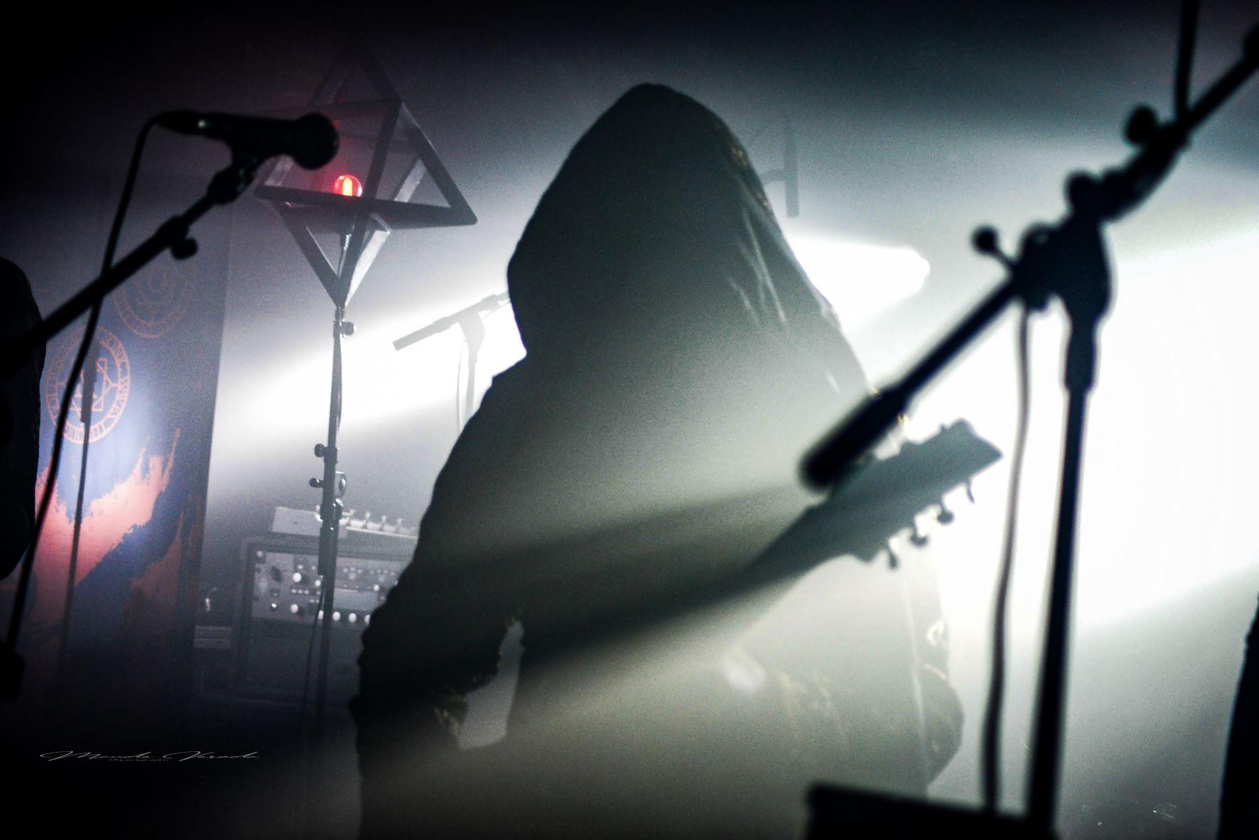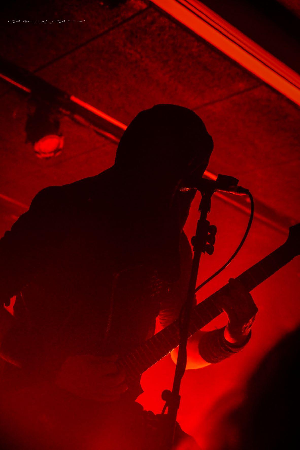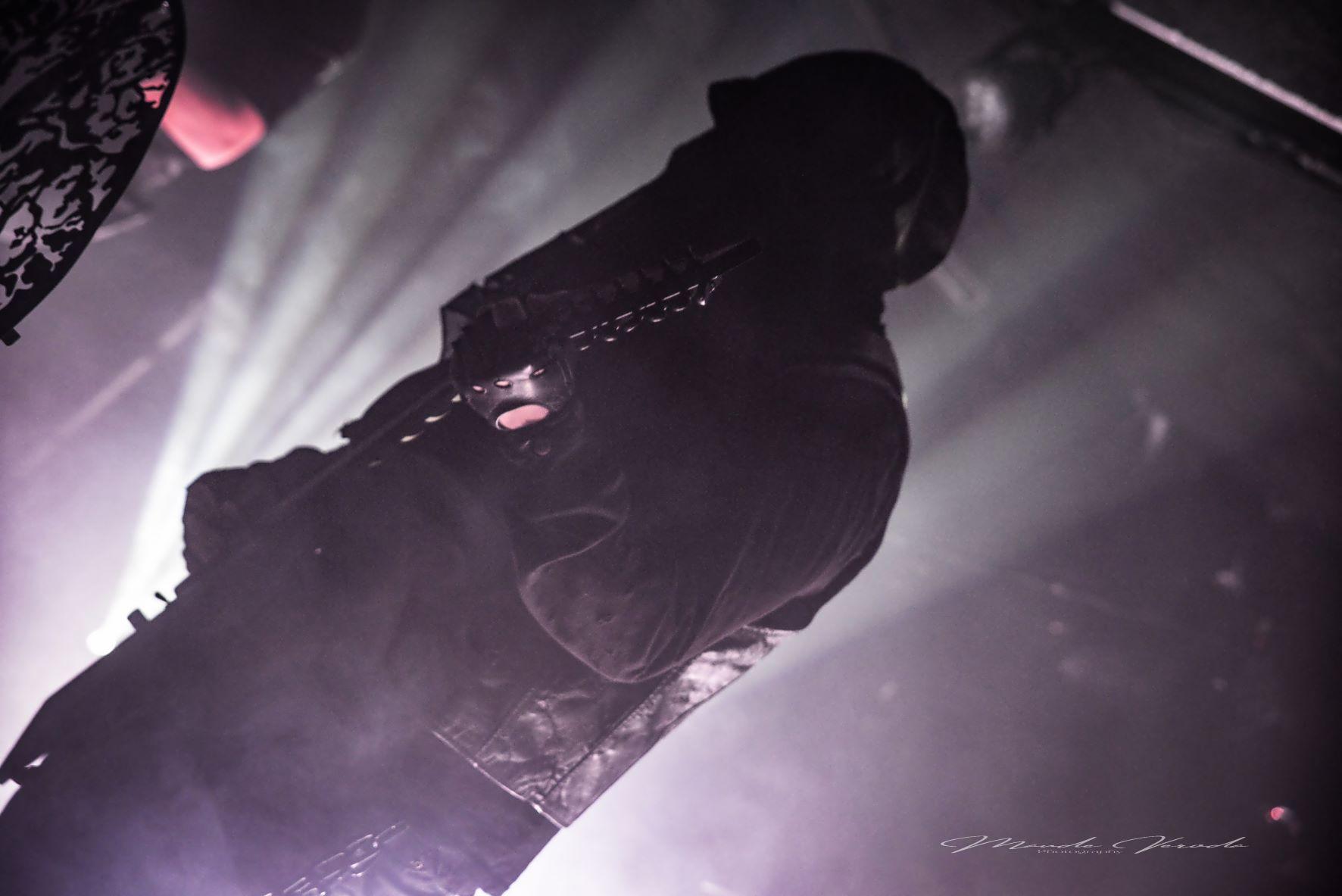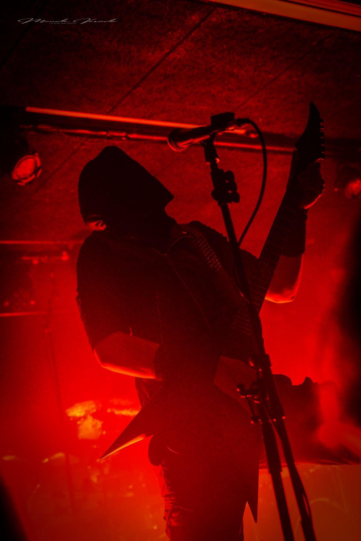 À première vue, on pourrait s’attendre à une pâle copie de MGŁA, surtout quand on voit l’imagerie du groupe : membres cagoulés, tenues vestimentaire et un groupe qui porte le même nom que le premier album des Polonais. Mais il n’en est rien, bien qu’il soit indéniable qu’ils ont été influencés par MGŁA. GROZA possède sa propre patte en termes de riffs et il y a quelques passages en voix clair que l’on ne retrouve pas chez eux. Le groupe s’est formé en 2016, il n’est donc pas difficile de poncer leur début de discographie, et c’est le second album The Redemptive End que les Allemands sont venus défendre, en commençant leur set avec Sunken in Styx, tout d’abord Part I : Submersion qui fera office d’intro pour l’arrivée du combo, puis le Part II : Descent, de quoi plonger dans l’ambiance nihiliste et misanthropique du groupe. Le pied de micro du chanteur sera orné du symbole du groupe et quelques fumigènes viendront ponctuer le show.