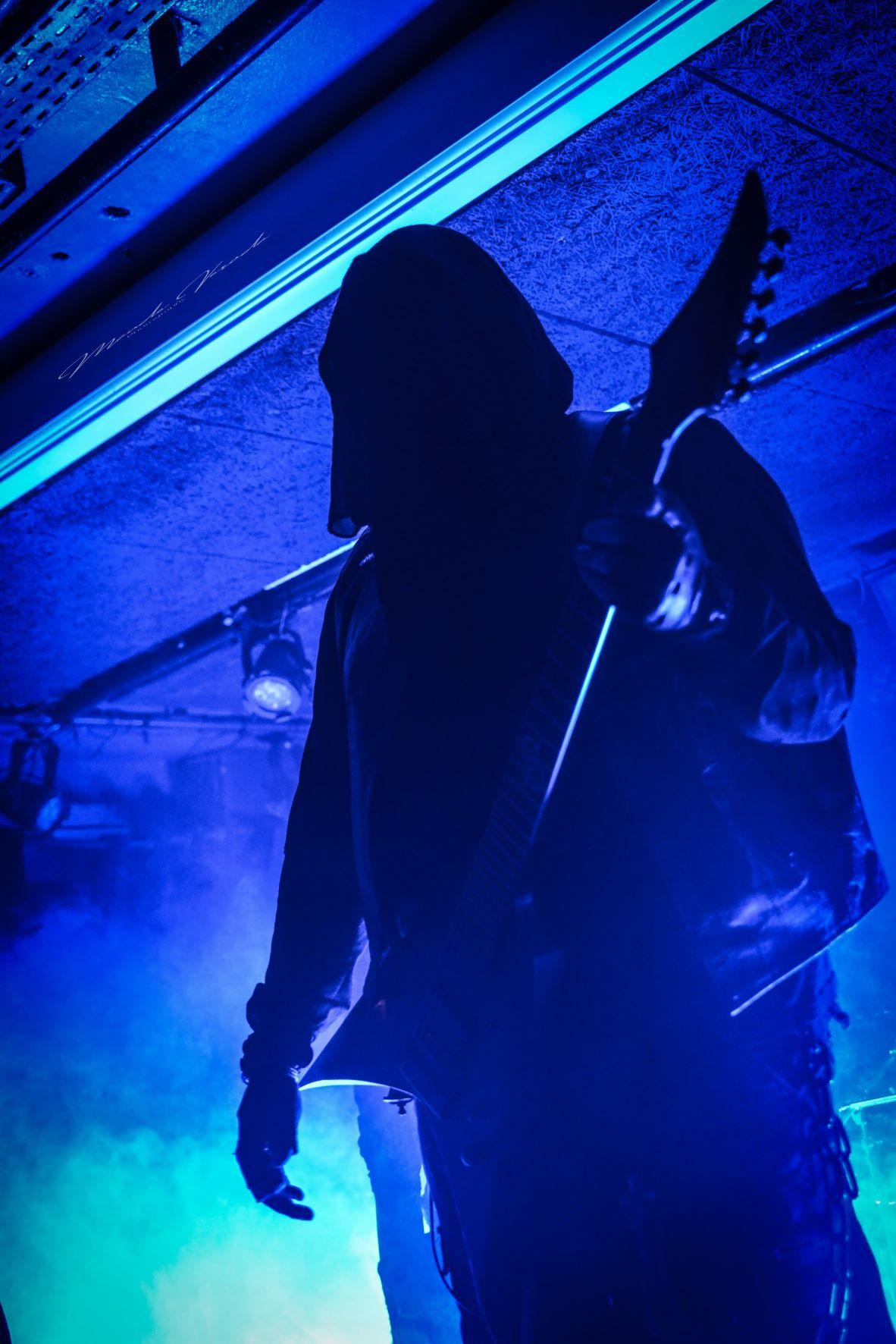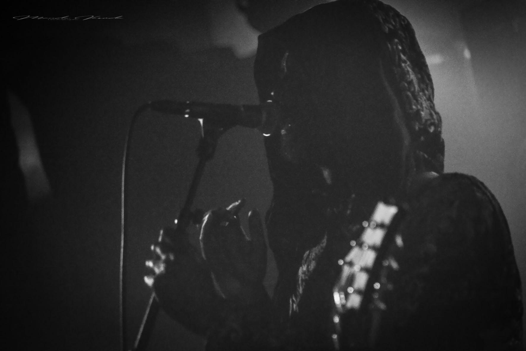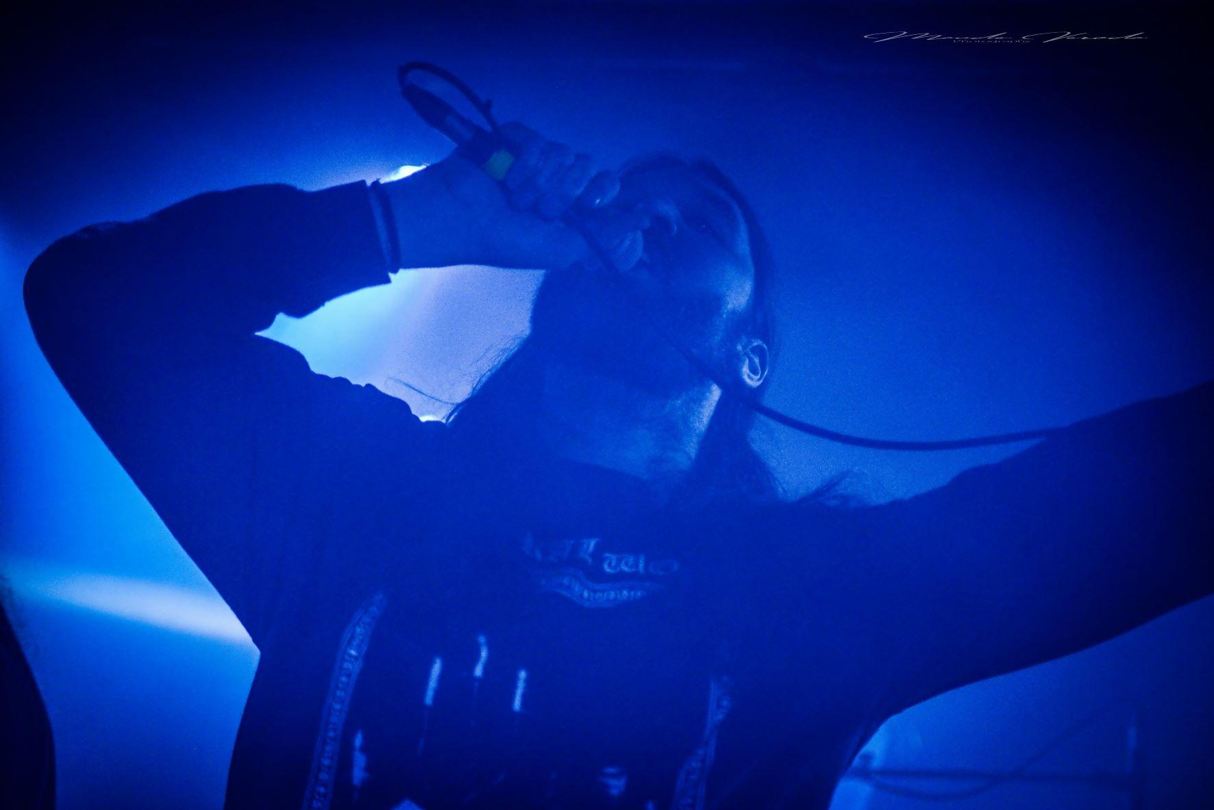 À première vue, on pourrait s’attendre à une pâle copie de MGŁA, surtout quand on voit l’imagerie du groupe : membres cagoulés, tenues vestimentaire et un groupe qui porte le même nom que le premier album des Polonais. Mais il n’en est rien, bien qu’il soit indéniable qu’ils ont été influencés par MGŁA. GROZA possède sa propre patte en termes de riffs et il y a quelques passages en voix clair que l’on ne retrouve pas chez eux. Le groupe s’est formé en 2016, il n’est donc pas difficile de poncer leur début de discographie, et c’est le second album The Redemptive End que les Allemands sont venus défendre, en commençant leur set avec Sunken in Styx, tout d’abord Part I : Submersion qui fera office d’intro pour l’arrivée du combo, puis le Part II : Descent, de quoi plonger dans l’ambiance nihiliste et misanthropique du groupe. Le pied de micro du chanteur sera orné du symbole du groupe et quelques fumigènes viendront ponctuer le show.