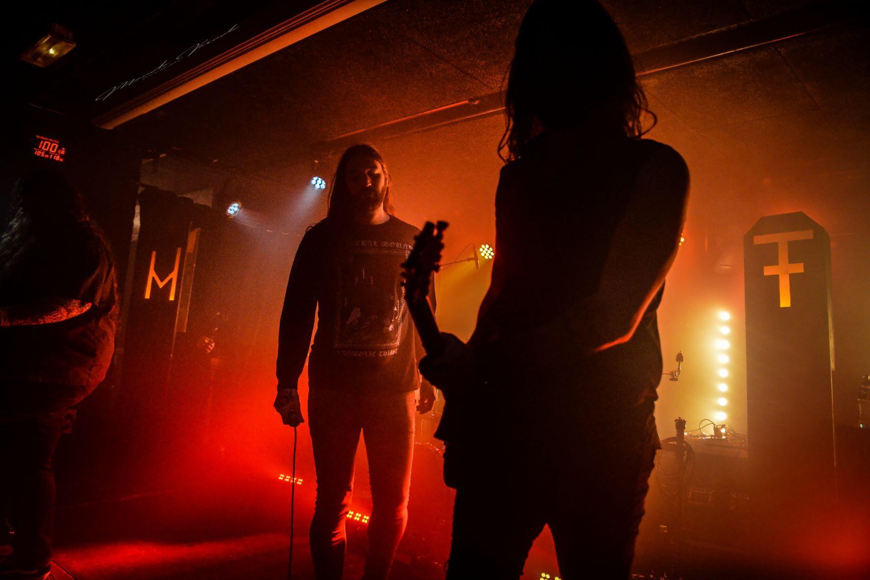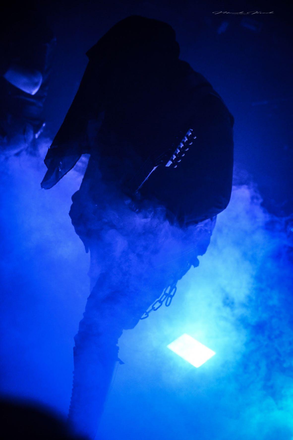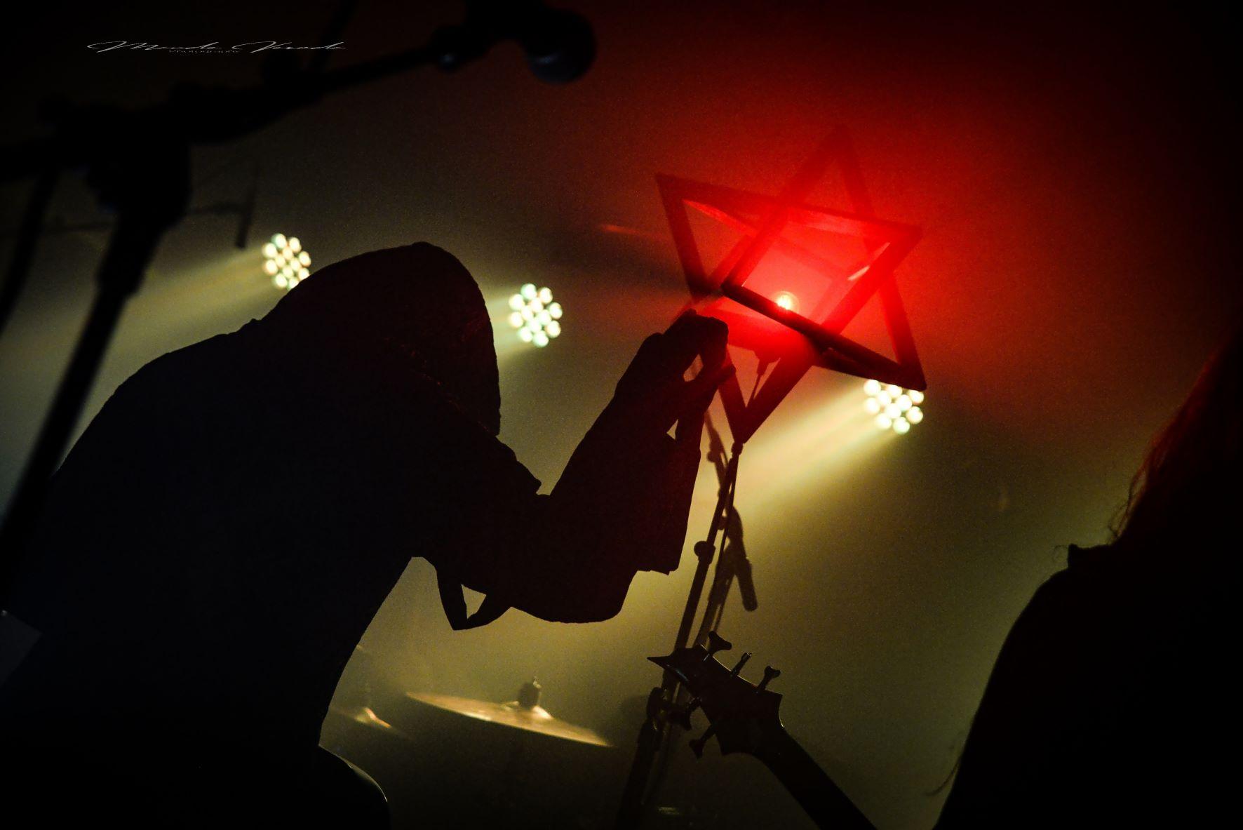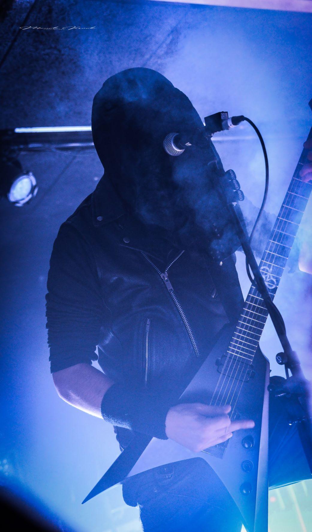 À première vue, on pourrait s’attendre à une pâle copie de MGŁA, surtout quand on voit l’imagerie du groupe : membres cagoulés, tenues vestimentaire et un groupe qui porte le même nom que le premier album des Polonais. Mais il n’en est rien, bien qu’il soit indéniable qu’ils ont été influencés par MGŁA. GROZA possède sa propre patte en termes de riffs et il y a quelques passages en voix clair que l’on ne retrouve pas chez eux. Le groupe s’est formé en 2016, il n’est donc pas difficile de poncer leur début de discographie, et c’est le second album The Redemptive End que les Allemands sont venus défendre, en commençant leur set avec Sunken in Styx, tout d’abord Part I : Submersion qui fera office d’intro pour l’arrivée du combo, puis le Part II : Descent, de quoi plonger dans l’ambiance nihiliste et misanthropique du groupe. Le pied de micro du chanteur sera orné du symbole du groupe et quelques fumigènes viendront ponctuer le show.