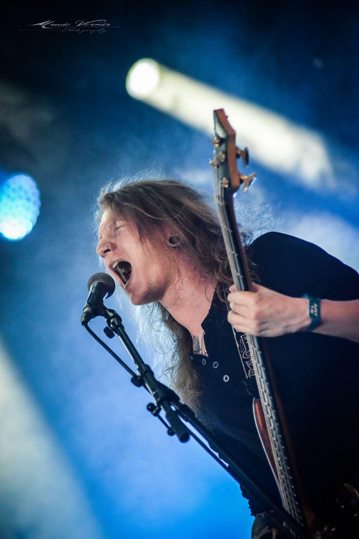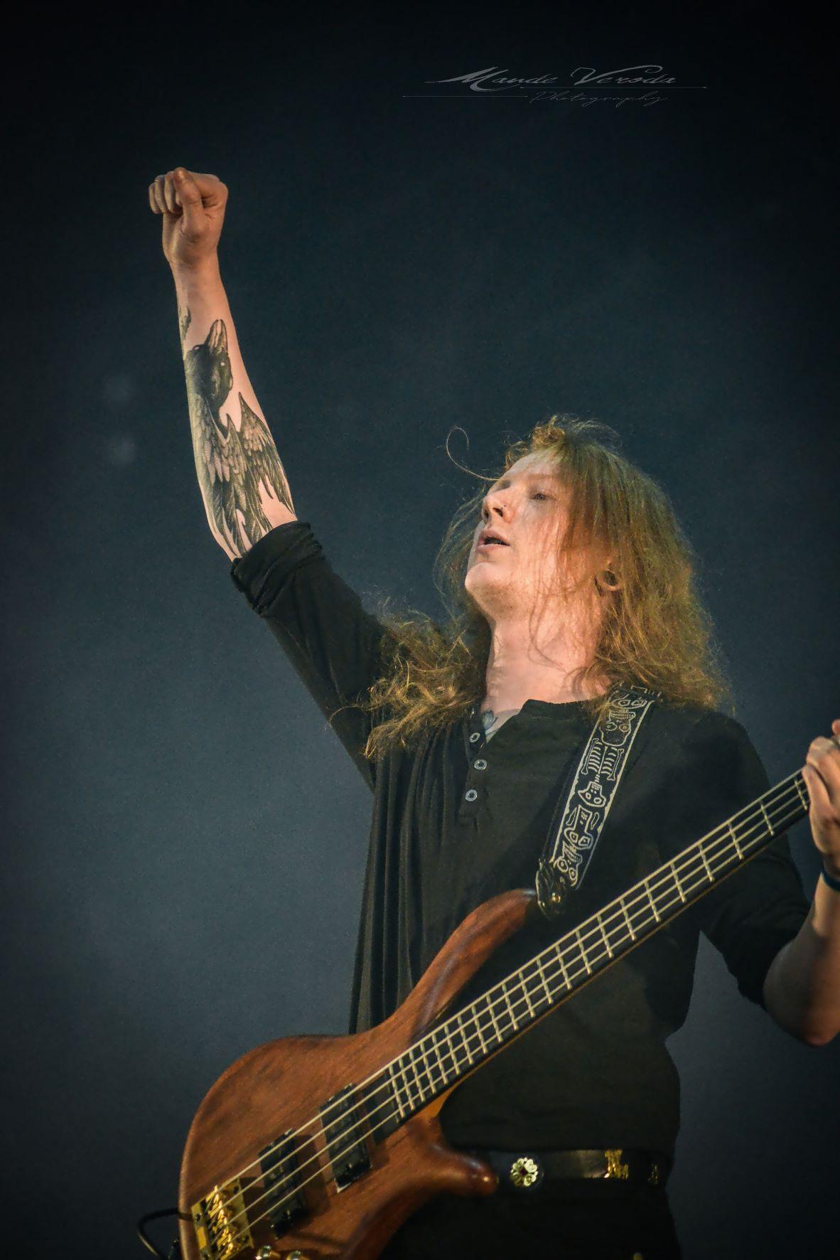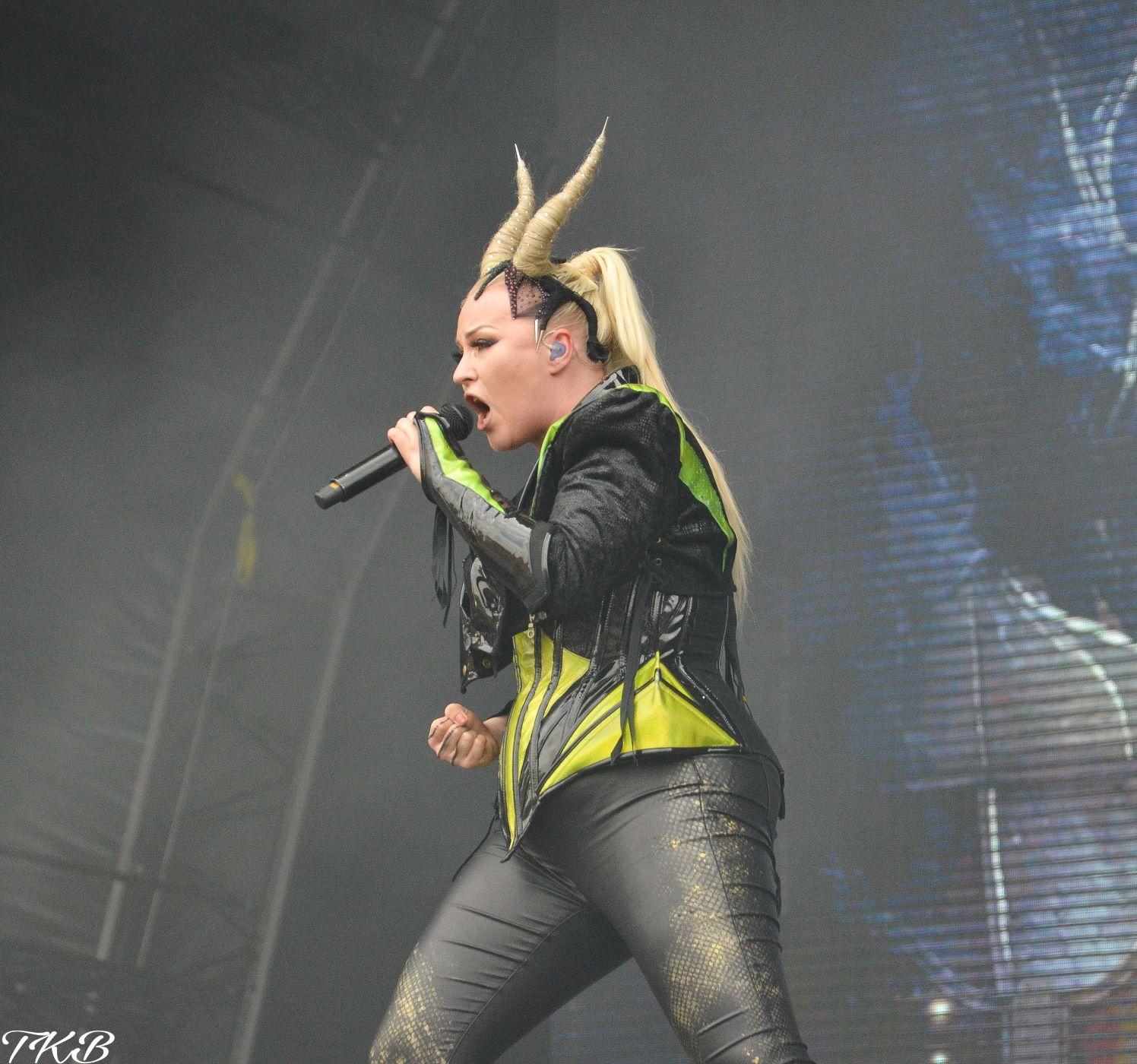 On revient maintenant sous la Temple pour de nouveau du Black Atmosphérique, teinté cette fois de folk avec les Suisses de CÂN BARDD avec une musique proche de celle des Écossais de SAOR et l’un comme l’autre nous transporte dans les paysages naturels de leurs pays respectifs et pour le coup, on a vraiment l’impression de se retrouver dans une forêt alpine rien qu’en fermant les yeux, un ressenti particulièrement percutant sur la magnifique My Ancestors, grandiose en live. Il nous reste plus qu’à attendre de les voir enchanter le Cernunnos Pagan Fest en février 2023. Sur la MS 2, c’est une toute autre ambiance avec BATTLE BEAST. Je suis personnellement le groupe depuis une bonne dizaine d’année, découvert en 2012 en special guests de NIGHTWISH à Bercy. Entre-temps le groupe a changé de chanteuse et c’est toujours Noora Louhimo de sa voix rauque qui porte le micro. Depuis le départ du guitariste et ex-leader-compositeur, on aurait pu croire que tout s’arrêterait mais depuis les Finlandais n’ont pas chômé. En nous présentant son dernier album Circus Of Doom, BATTLE BEAST est toujours aussi énergique en live, une énergie transmise au public qui apprécie écouter du bon vieux Heavy Metal mais avec beaucoup de sonorités modernes, avec de véritables tubes que sont Eye Of The Storm, Wings of Light ou encore King for a Day. Noora fera sensation avec sa tenue atypique et ses cornes de diablesses qui font tout le charme de cette chanteuse hors pair.