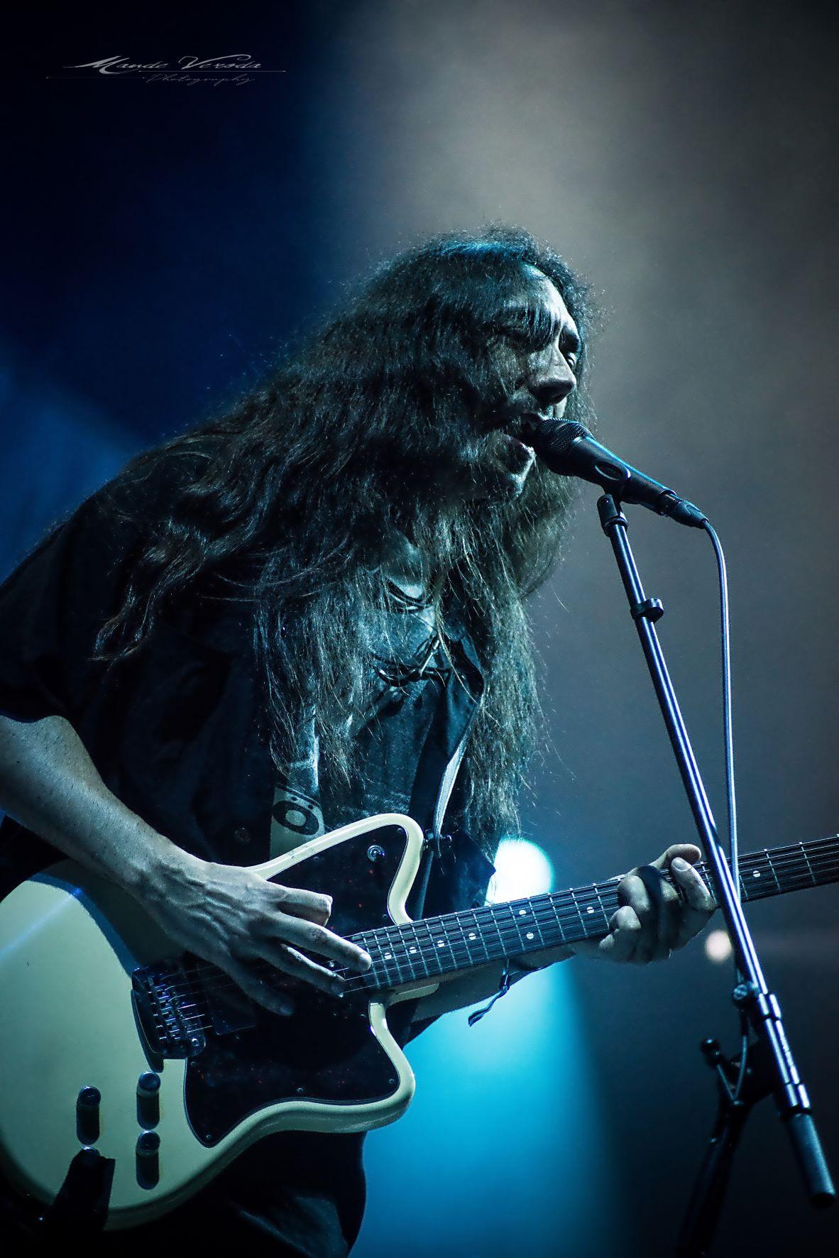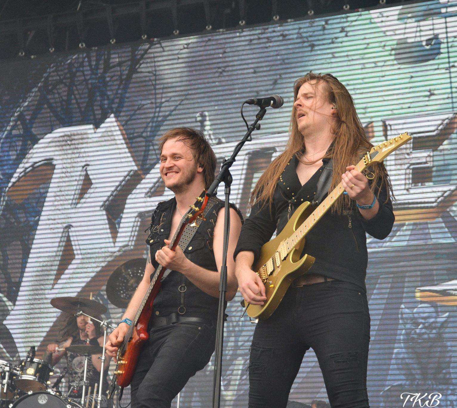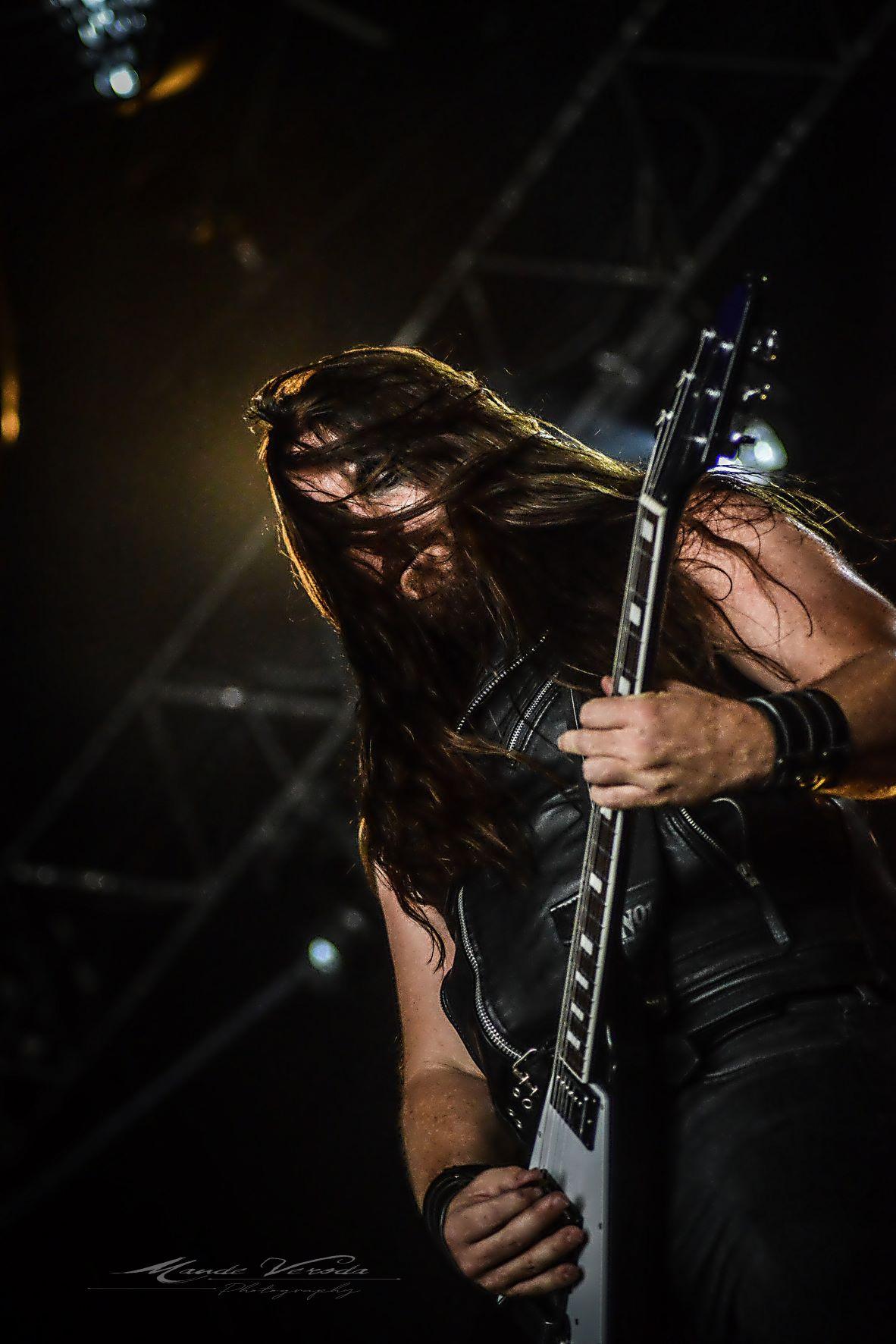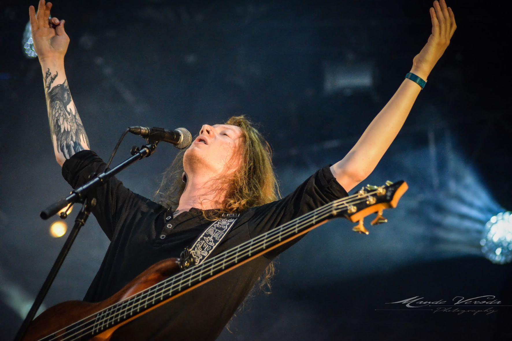 On revient maintenant sous la Temple pour de nouveau du Black Atmosphérique, teinté cette fois de folk avec les Suisses de CÂN BARDD avec une musique proche de celle des Écossais de SAOR et l’un comme l’autre nous transporte dans les paysages naturels de leurs pays respectifs et pour le coup, on a vraiment l’impression de se retrouver dans une forêt alpine rien qu’en fermant les yeux, un ressenti particulièrement percutant sur la magnifique My Ancestors, grandiose en live. Il nous reste plus qu’à attendre de les voir enchanter le Cernunnos Pagan Fest en février 2023. Sur la MS 2, c’est une toute autre ambiance avec BATTLE BEAST. Je suis personnellement le groupe depuis une bonne dizaine d’année, découvert en 2012 en special guests de NIGHTWISH à Bercy. Entre-temps le groupe a changé de chanteuse et c’est toujours Noora Louhimo de sa voix rauque qui porte le micro. Depuis le départ du guitariste et ex-leader-compositeur, on aurait pu croire que tout s’arrêterait mais depuis les Finlandais n’ont pas chômé. En nous présentant son dernier album Circus Of Doom, BATTLE BEAST est toujours aussi énergique en live, une énergie transmise au public qui apprécie écouter du bon vieux Heavy Metal mais avec beaucoup de sonorités modernes, avec de véritables tubes que sont Eye Of The Storm, Wings of Light ou encore King for a Day. Noora fera sensation avec sa tenue atypique et ses cornes de diablesses qui font tout le charme de cette chanteuse hors pair.