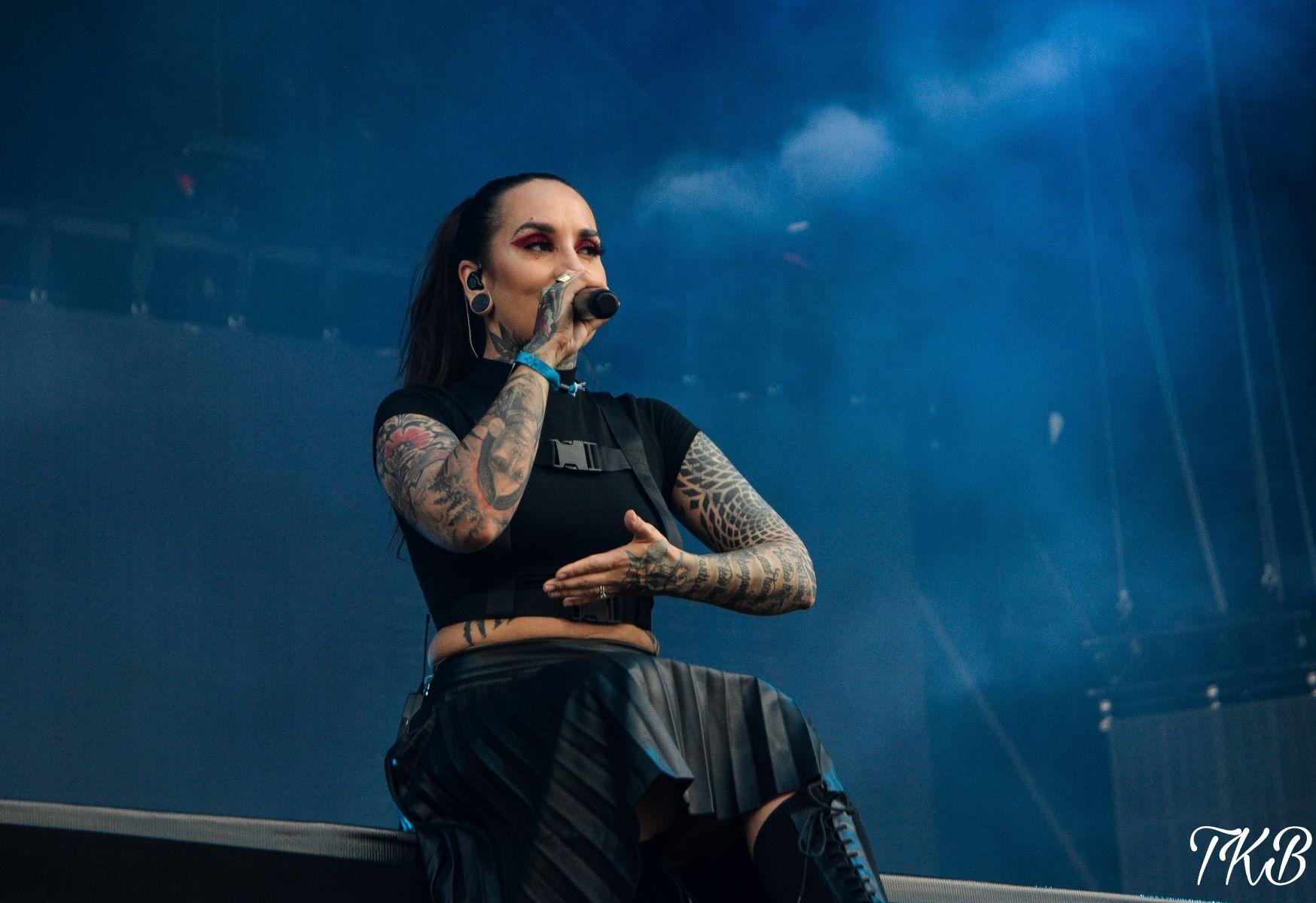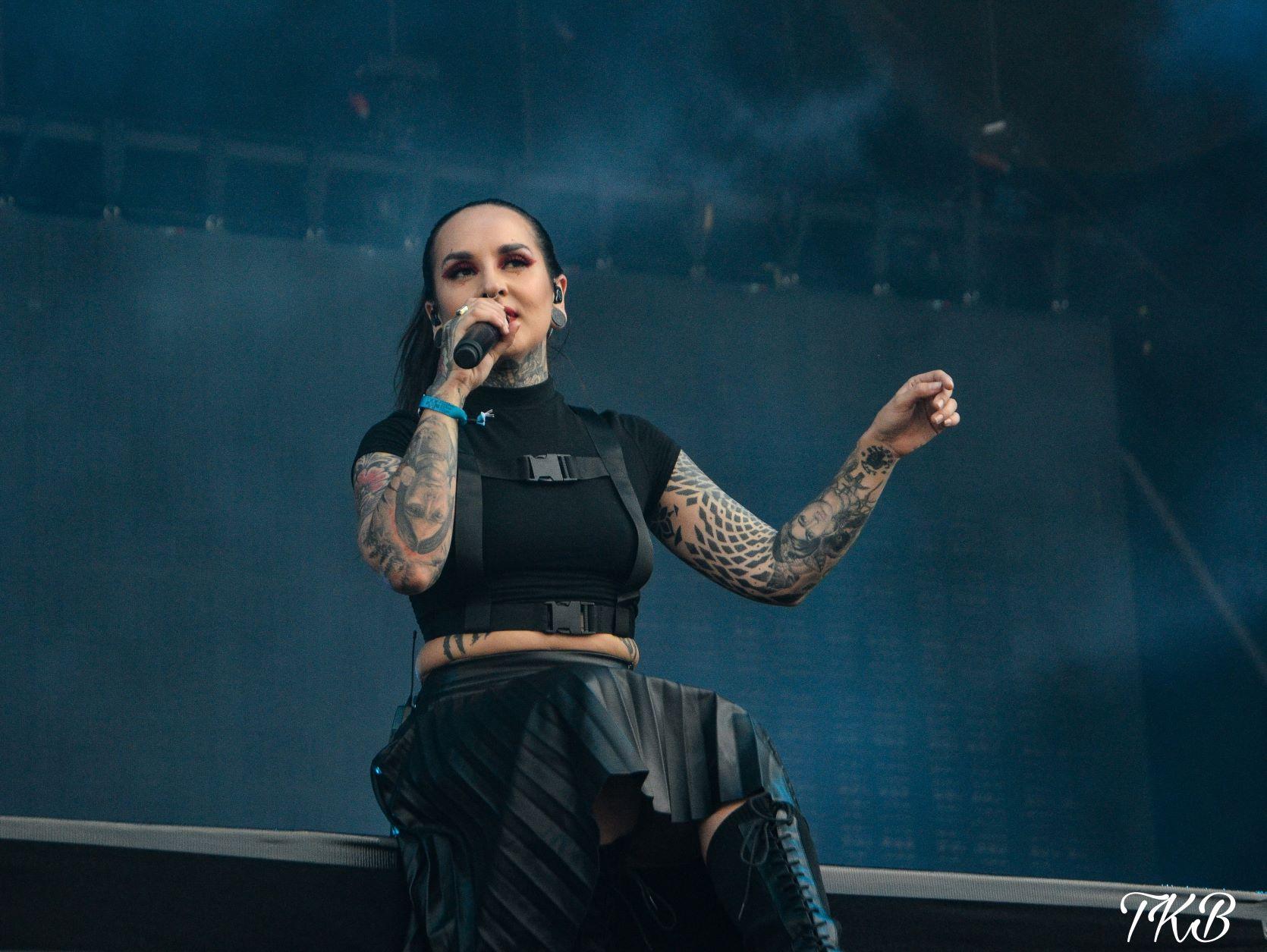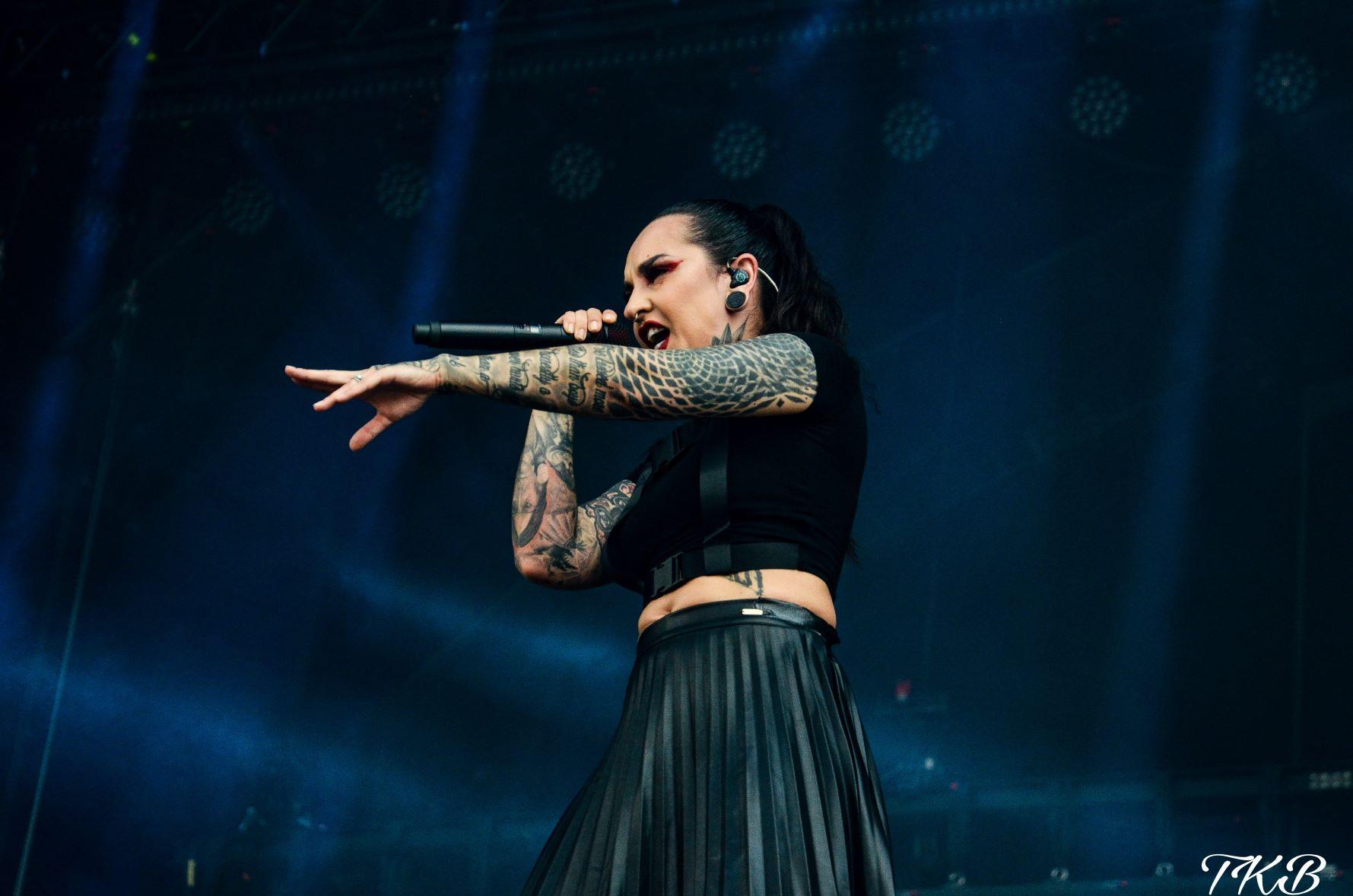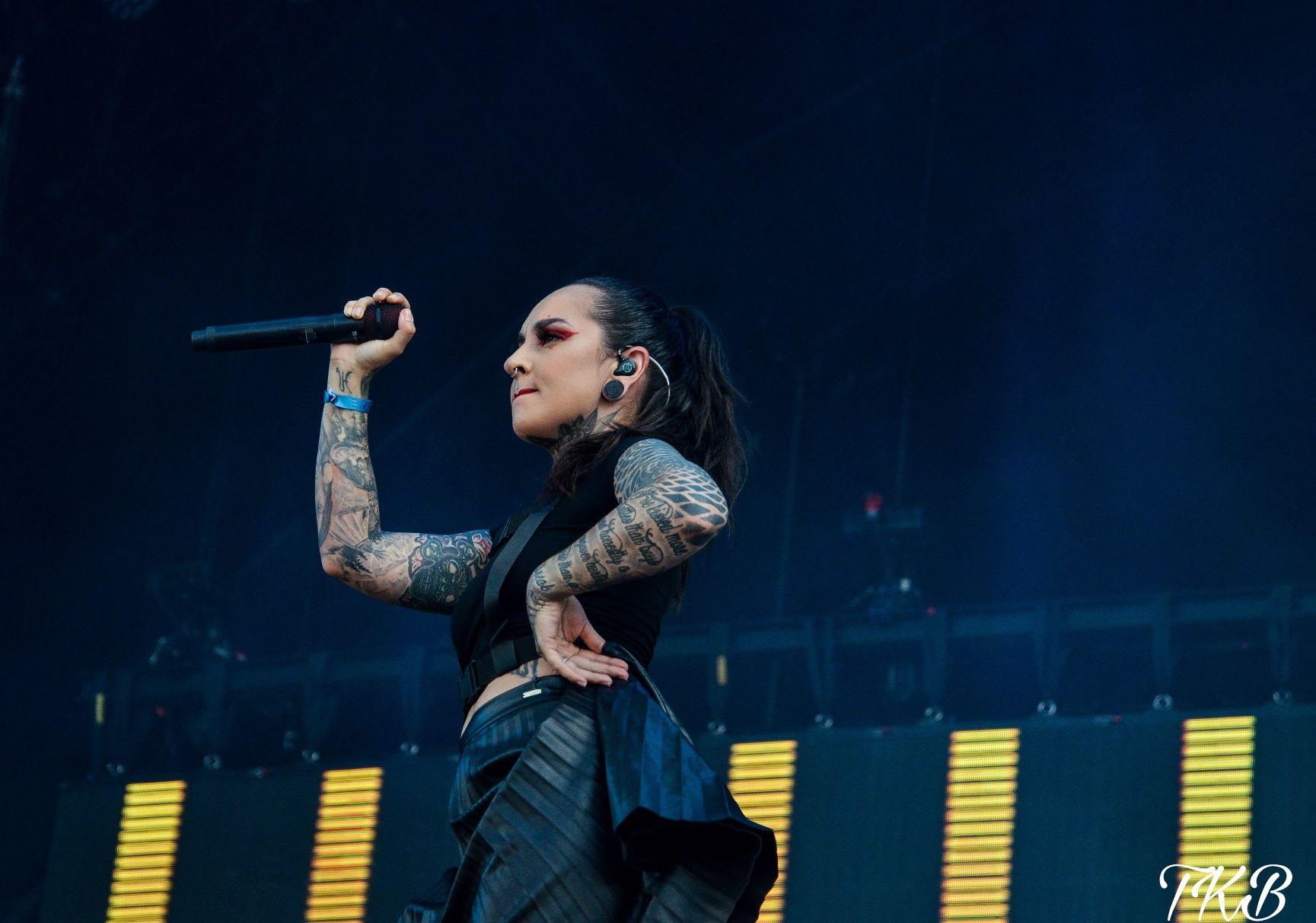 Pendant ce temps, c’est un autre groupe très attendu qui arrive sur la MS 1 pour un show très particulier puisqu'ils sont venus également dénoncer la guerre qui frappe leur pays à qui nous réitérons tout notre soutien, les Ukrainiens de JINJER. Dans le public, plusieurs drapeaux de l’Ukraine sont brandis pour marquer le soutien des festivaliers. Malgré ce qu’ils vivent, les membres de JINJER donnent le meilleur d’eux-mêmes pour nous jouer leurs morceaux qui surfent sur tellement de sonorités qu’il est difficile de leur donner une simple étiquette. Avec une Tatiana survoltée et qui libère toute sa rage, et on la comprend, dans ses growls, JINJER extériorise tout ce qu’il a sur le cœur, aidé par les festivaliers qui leur insuffle de l’énergie à coup de pogos et de circle pit. JINJER ne cesse de croitre en popularité et deviendra certainement un groupe de plus en plus renommé. L’autre événement de la journée, le show des Japonais de MAXIMUM THE HORMONE qui revient jouer, pour la première fois depuis onze ans, au Hellfest et quel show ! Quel fan de Death Note aurait raté leur passage ? Mais tout ne s’arrête pas à leur titre qui sert de deuxième Opening à l’anime car la