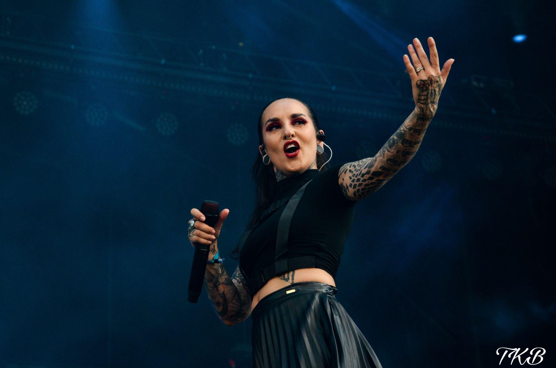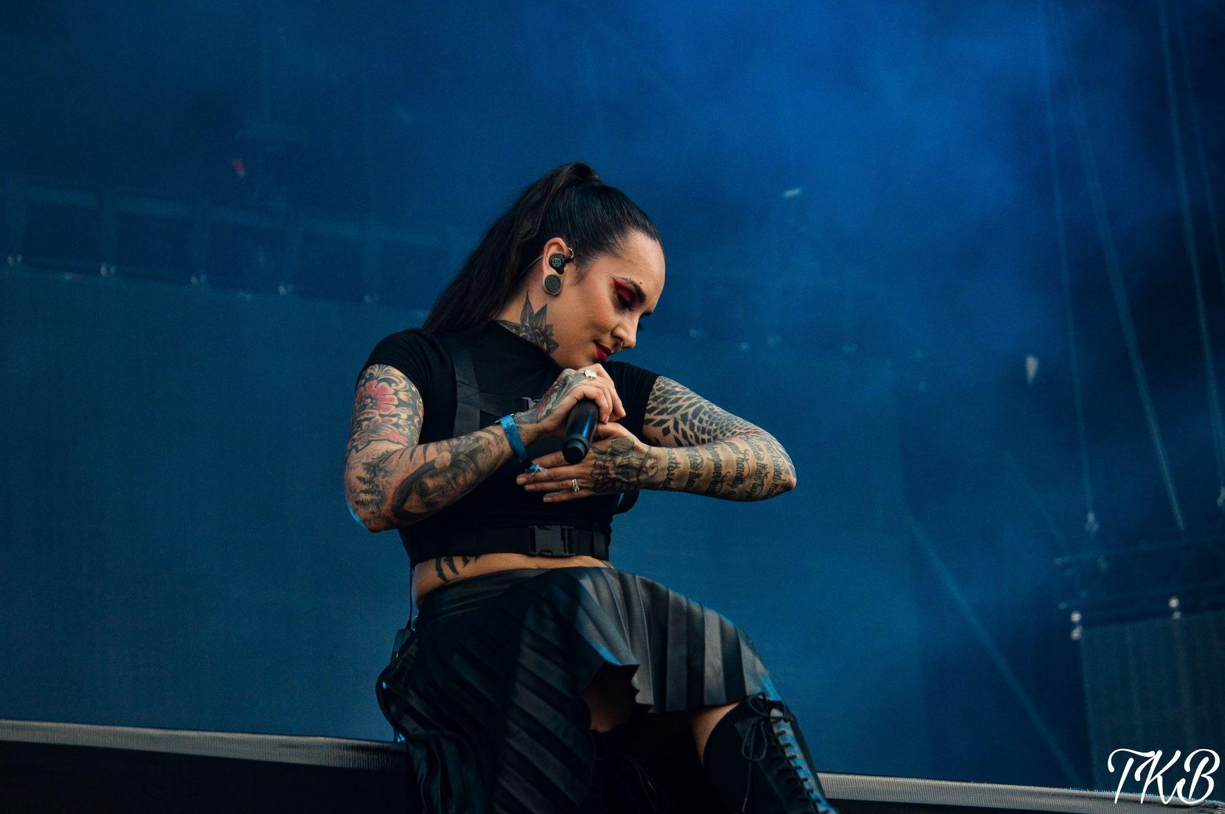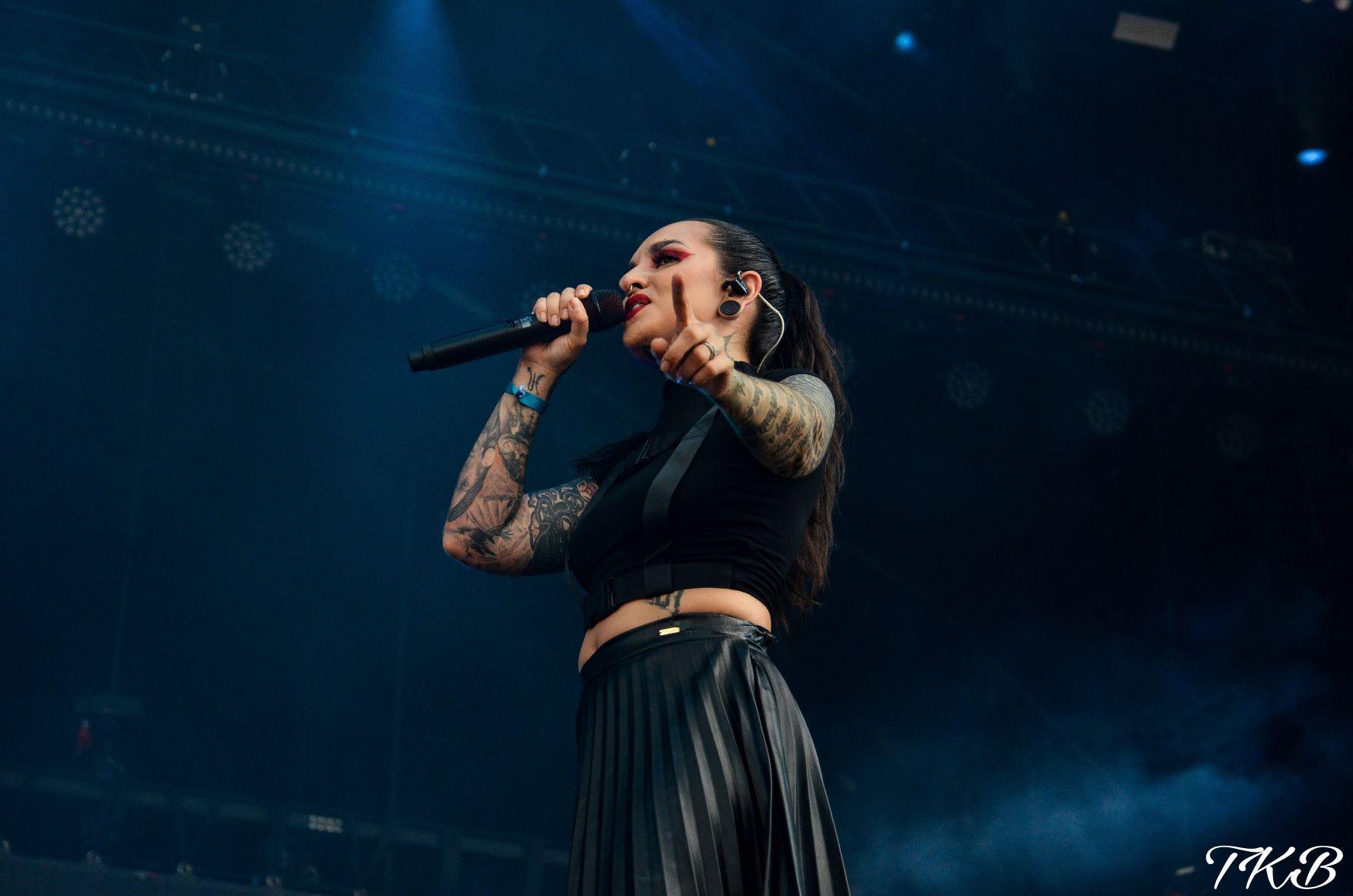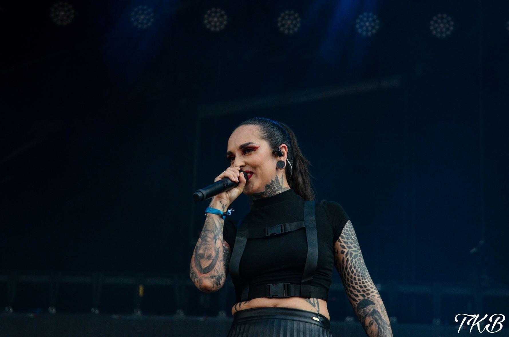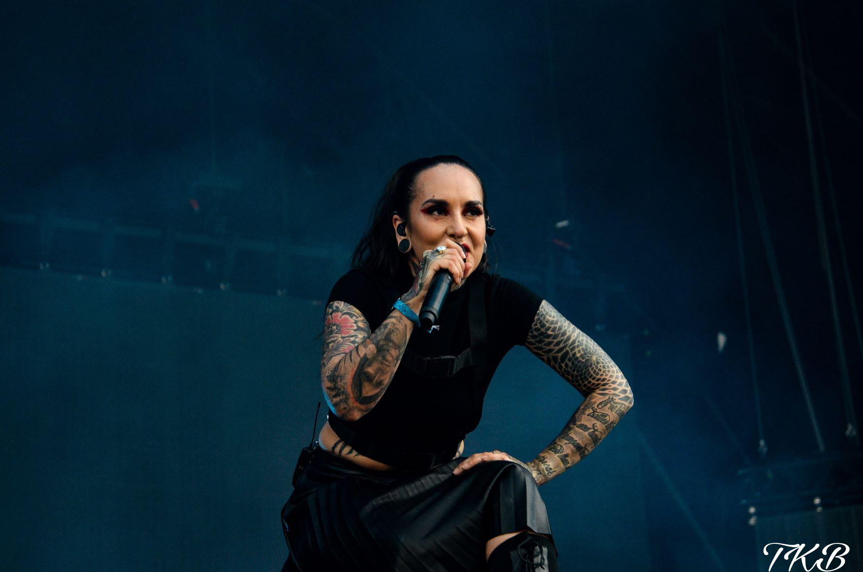 Pendant ce temps, c’est un autre groupe très attendu qui arrive sur la MS 1 pour un show très particulier puisqu'ils sont venus également dénoncer la guerre qui frappe leur pays à qui nous réitérons tout notre soutien, les Ukrainiens de JINJER. Dans le public, plusieurs drapeaux de l’Ukraine sont brandis pour marquer le soutien des festivaliers. Malgré ce qu’ils vivent, les membres de JINJER donnent le meilleur d’eux-mêmes pour nous jouer leurs morceaux qui surfent sur tellement de sonorités qu’il est difficile de leur donner une simple étiquette. Avec une Tatiana survoltée et qui libère toute sa rage, et on la comprend, dans ses growls, JINJER extériorise tout ce qu’il a sur le cœur, aidé par les festivaliers qui leur insuffle de l’énergie à coup de pogos et de circle pit. JINJER ne cesse de croitre en popularité et deviendra certainement un groupe de plus en plus renommé. L’autre événement de la journée, le show des Japonais de MAXIMUM THE HORMONE qui revient jouer, pour la première fois depuis onze ans, au Hellfest et quel show ! Quel fan de Death Note aurait raté leur passage ? Mais tout ne s’arrête pas à leur titre qui sert de deuxième Opening à l’anime car la