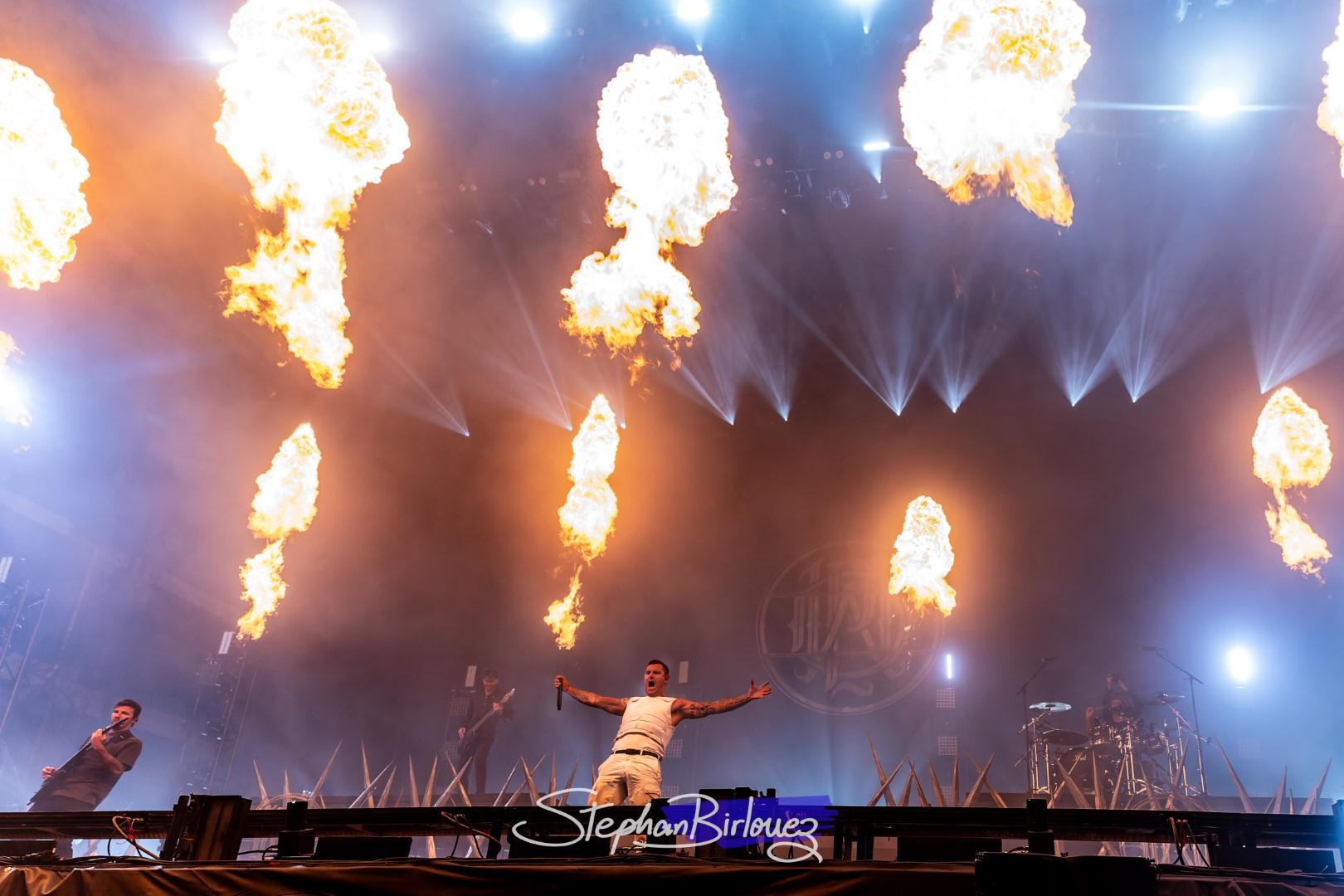 La nuit commence à tomber ce qui permet au jeu de lumière du show d’embellir de plus en plus la prestation qui est véritablement travaillé et millimétré, avec des structures qui permet au chanteur d’être sur tous les fronts. À la demande du frontman, un gros circle pit s’orchestrera pour le titre when we were young, histoire de rivaliser avec IN FLAMES. Dans ses invectives, Carter fera un clin d’œil à notre fierté nationale de la musique électro, DAFT PUNK avec les mots "Harder, Faster et Stronger". L’assistance s’exécute et on y verra l’un des plus gros circle pits jamais vu au Hellfest, avant que le groupe ne quitte la scène après le dernier titre, Animals.