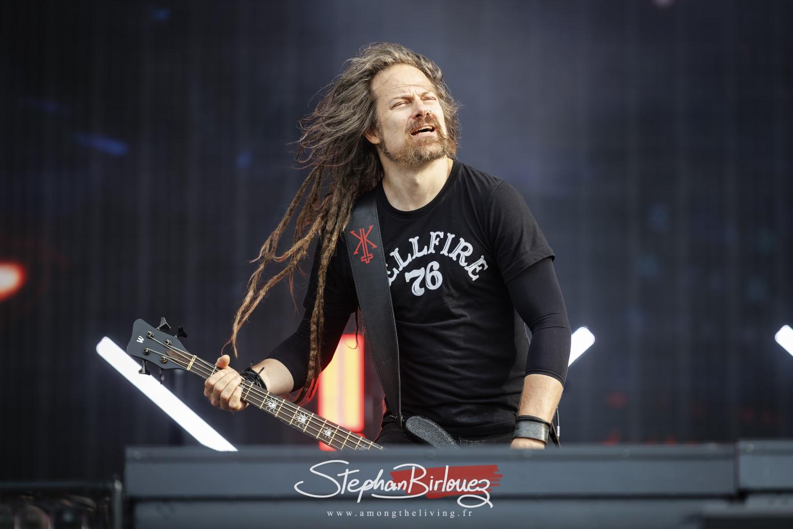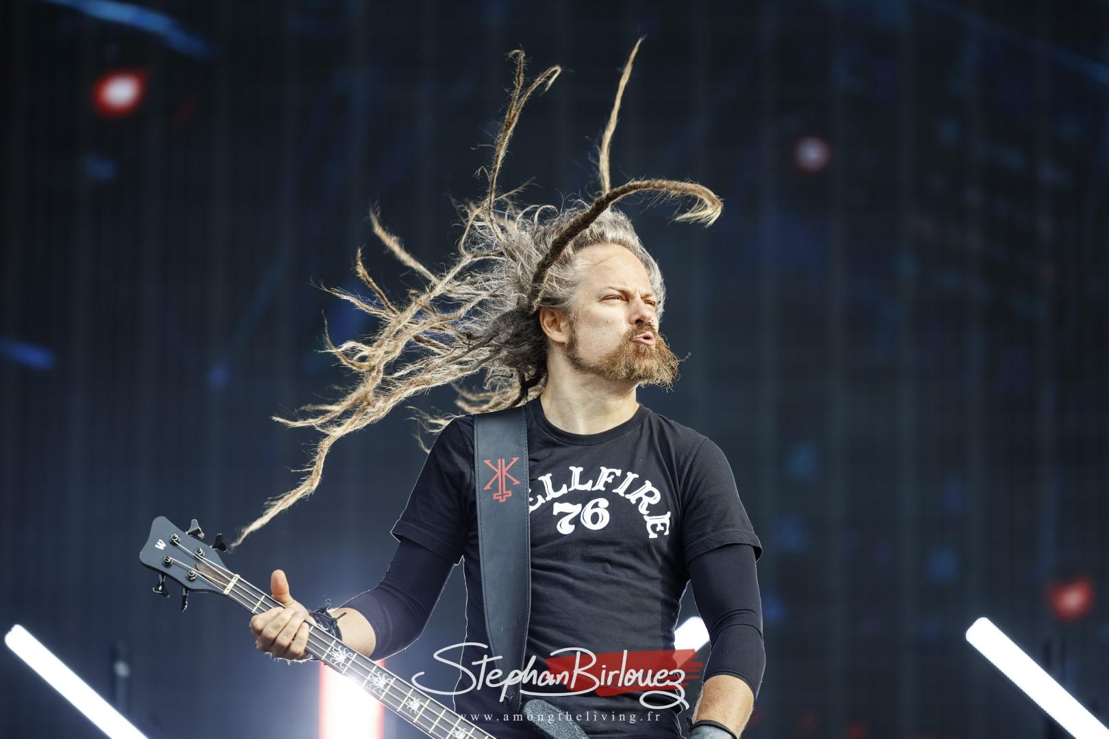 Il est 16h30, et c’est ASINHELL qui donne le coup d’envoi du festival et qui ouvre les mainstages. Et dès le départ, Clisson a été secoué par l’irruption puissante du groupe. Alors que la foule se rendait devant la scène, l’excitation de certains était palpables à l’idée de découvrir le nouveau groupe de Michael Poulsen, le frontman emblématique de VOLBEAT. Ici, il sera uniquement au poste de guitariste car c’est Marc Grewe qui prend le micro. Et grosse surprise pour ceux qui l’ont reconnu, c’est bel et bien le producteur de renom Jacob Hansen que l’on retrouve au poste de bassiste. Prodiguant un Death Metal très incisif avec une explosion de riffs et de beats, le groupe a littéralement électrisé la scène avec sacrée performance tout en défendant son premier album Impii Hora.