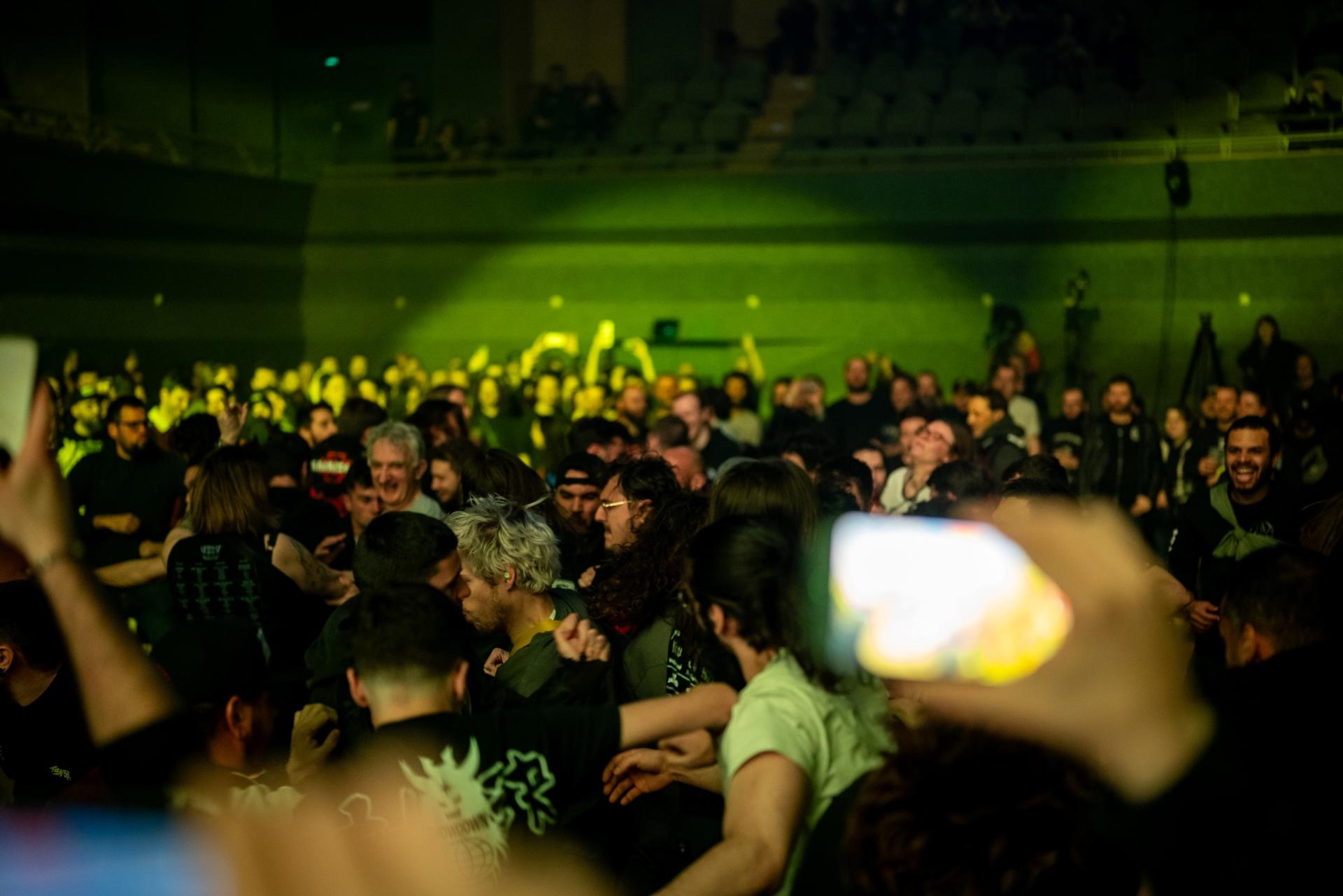 Les morceaux du groupe ont cette particularité d’être assez court, environ 3 minutes pour la plupart, ce qui leur permet d’en enchaîner beaucoup, et on pourrait même croire que tout a été pensé et taillé pour le live. Et c’est au bout de quelques premiers titres qu’Aaron demandera à ce que seules les filles fassent des moshpits et on peut dire qu’elles ne font pas semblants, ça ne rigole pas !